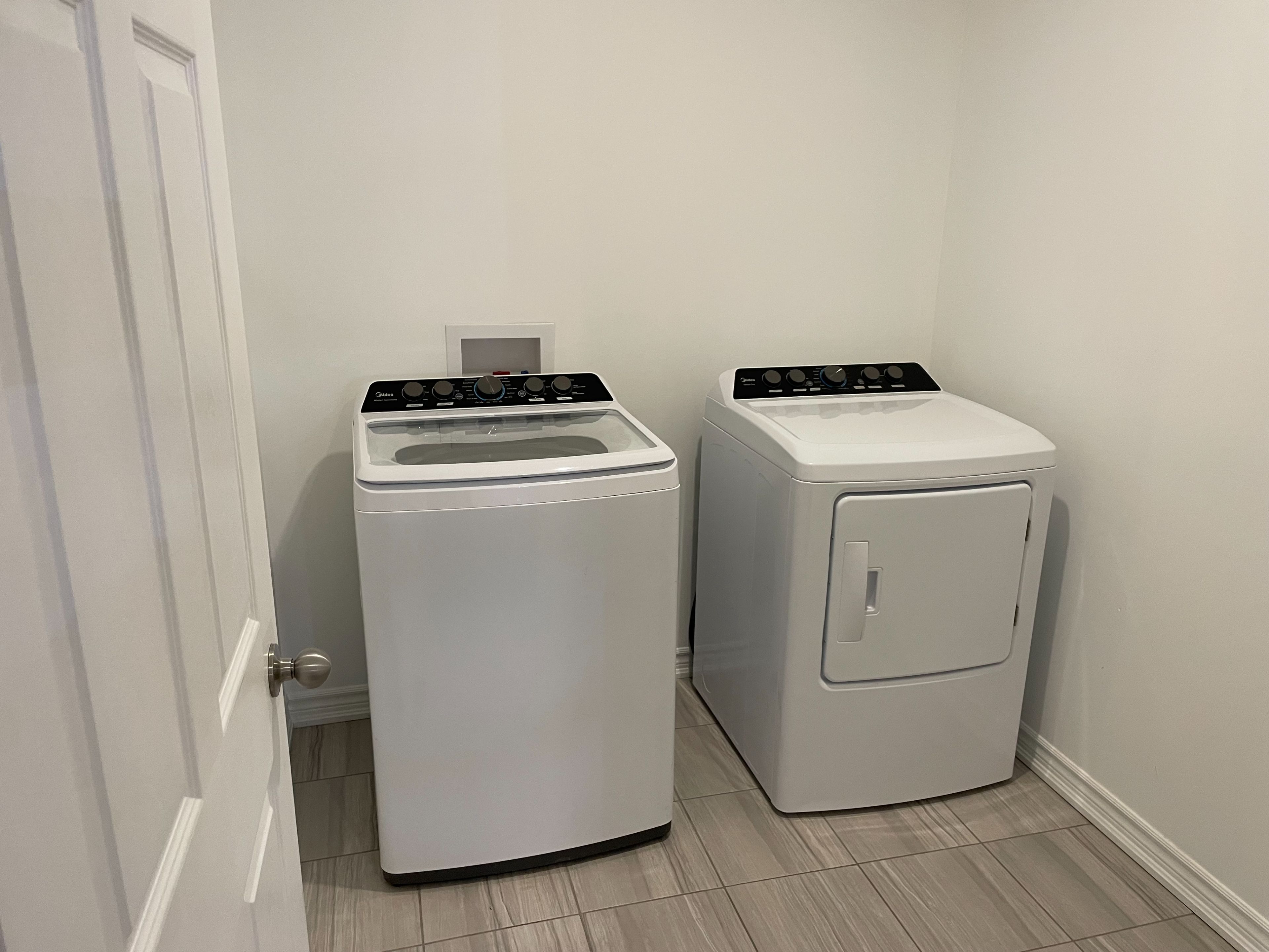 Step inside this stunning 2,183 sq ft two-storey brick home, perfectly blending elegance, comfort, and modern design. Meticulously maintained and in immaculate condition, this property showcases a bright open-concept layout ideal for both everyday living and entertaining. The heart of the home is a custom-designed kitchen featuring a large quartz island, premium finishes, and ample counter space, seamlessly flowing into the main living area. A separate dining room offers the perfect setting for formal gatherings. Soaring 9-foot ceilings and engineered hardwood flooring throughout enhance the sense of space and sophistication. Upstairs, convenience meets luxury with a second-floor laundry room and generously sized bedrooms. The primary suite is a true retreat, complete with a spa-inspired 6-piece ensuite boasting a free standing tub and swedish-style shower for the ultimate relaxation experience. The fully finished basement adds incredible versatility, featuring a separate side entrance, two additional bedrooms, a full 4 piece bathroom, and rough-in for an additional washer and dryer-ideal for extended family or potential income opportunities. With a double car garage and exceptional attention to detail throughout, this home is the perfect blend of style, function, and opportunity. Mere steps to park, and transit. Minutes to restaurants, grocery stores and numerous schools.