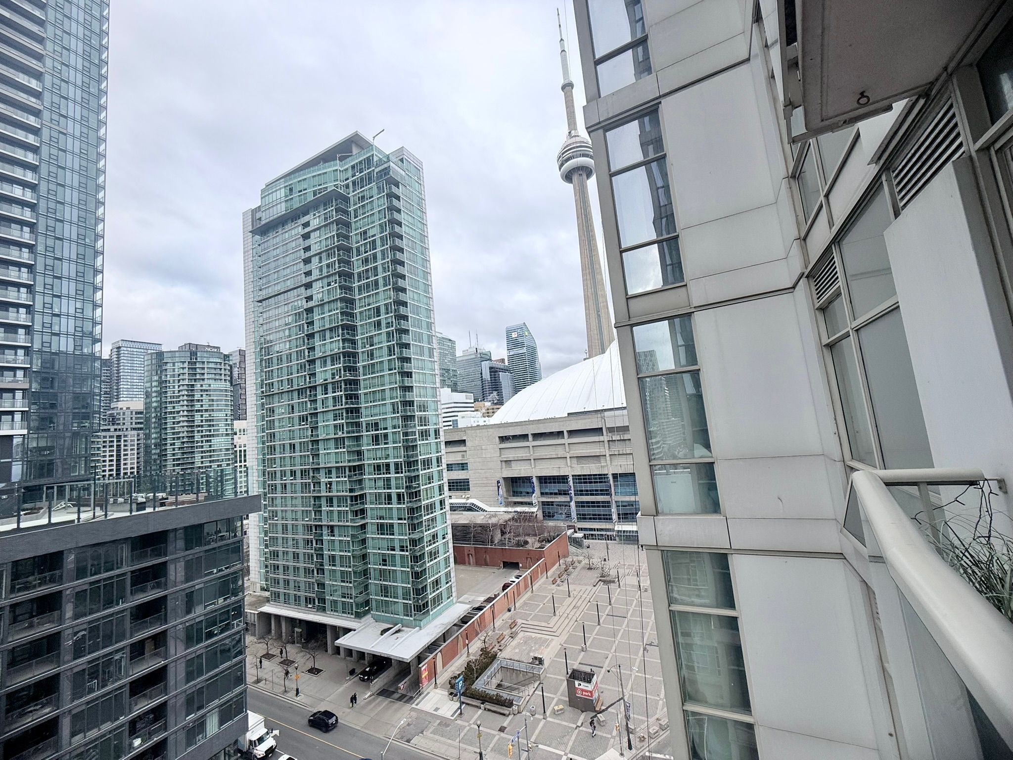 Bright and beautifully upgraded 1 bedroom suite in one of downtown toronto's most sought after buildings. Elegantly updated in 2023 with over $50,000 in designer upgrades, this home feels elevated, inviting, and thoughtfully finished. Move-in ready and designed for comfortable, stylish living. Featuring a modern open concept layout with wide plank herringbone flooring and a stunning renovated kitchen with quartz countertops, a functional breakfast bar, stainless steel appliances including a gas range, and sleek, contemporary finishes. The spa inspired bathroom is fully updated with subway tile, upgraded fixtures, and a clean, timeless, elevated feel. Floor to ceiling windows fill the space with natural light, with the living area opening to a balcony with city and cn tower views. Smooth ceilings throughout and a modern exposed concrete ceiling in the bedroom add a loft style touch that sets this unit apart. Enjoy over 30,000 sq ft of world class amenities including a full gym, indoor running track, tennis court, bowling alley, indoor pool with jacuzzi, and a beautifully maintained bbq courtyard. Ideally located just steps to ttc, rogers centre, cn tower, scotiabank arena, the well, harbourfront, the entertainment district, waterfront trails, top restaurants, cafes, and shopping. Includes parking. Maintenance fees include utilities.