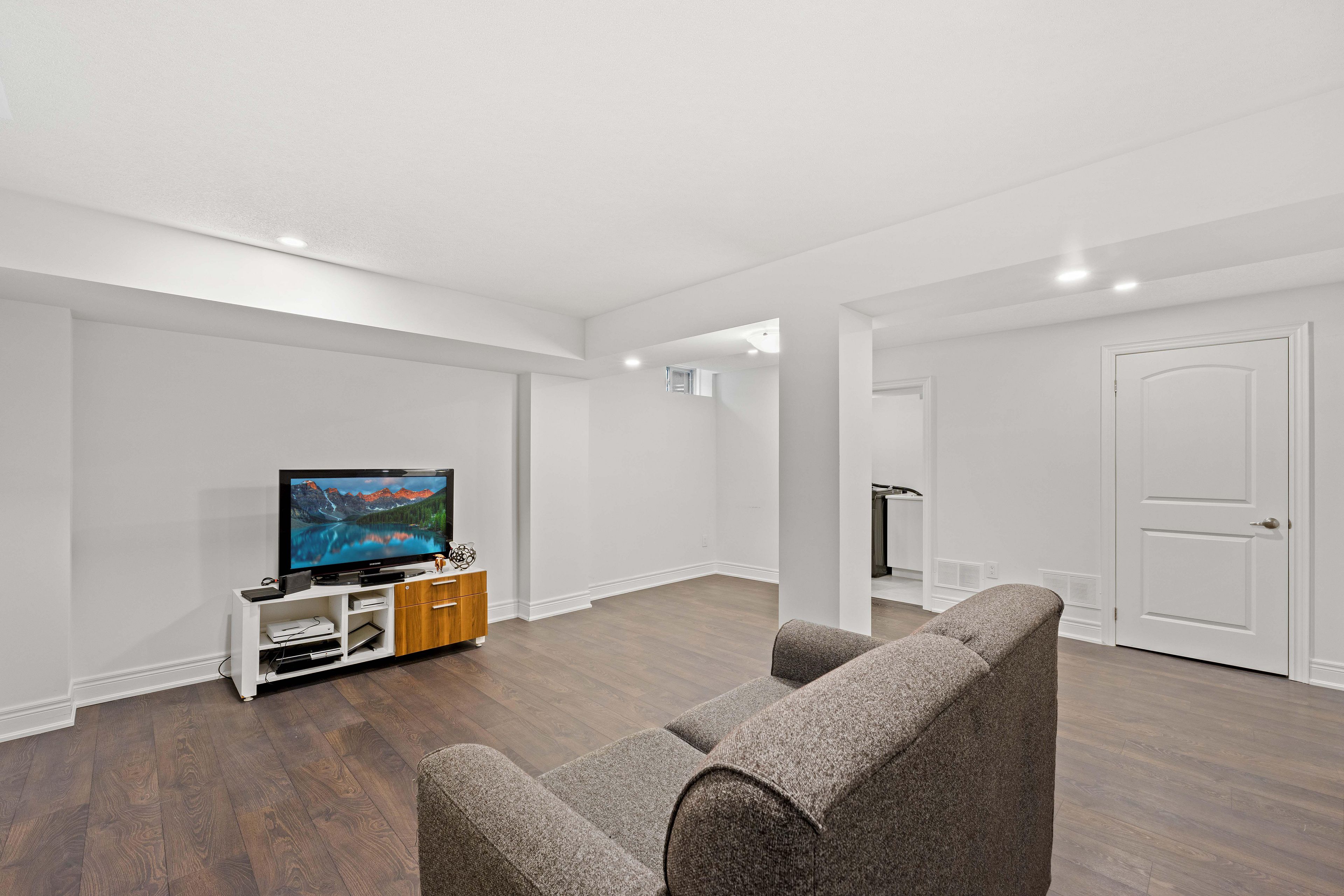 • Finished basement adds extra living space for various activities.