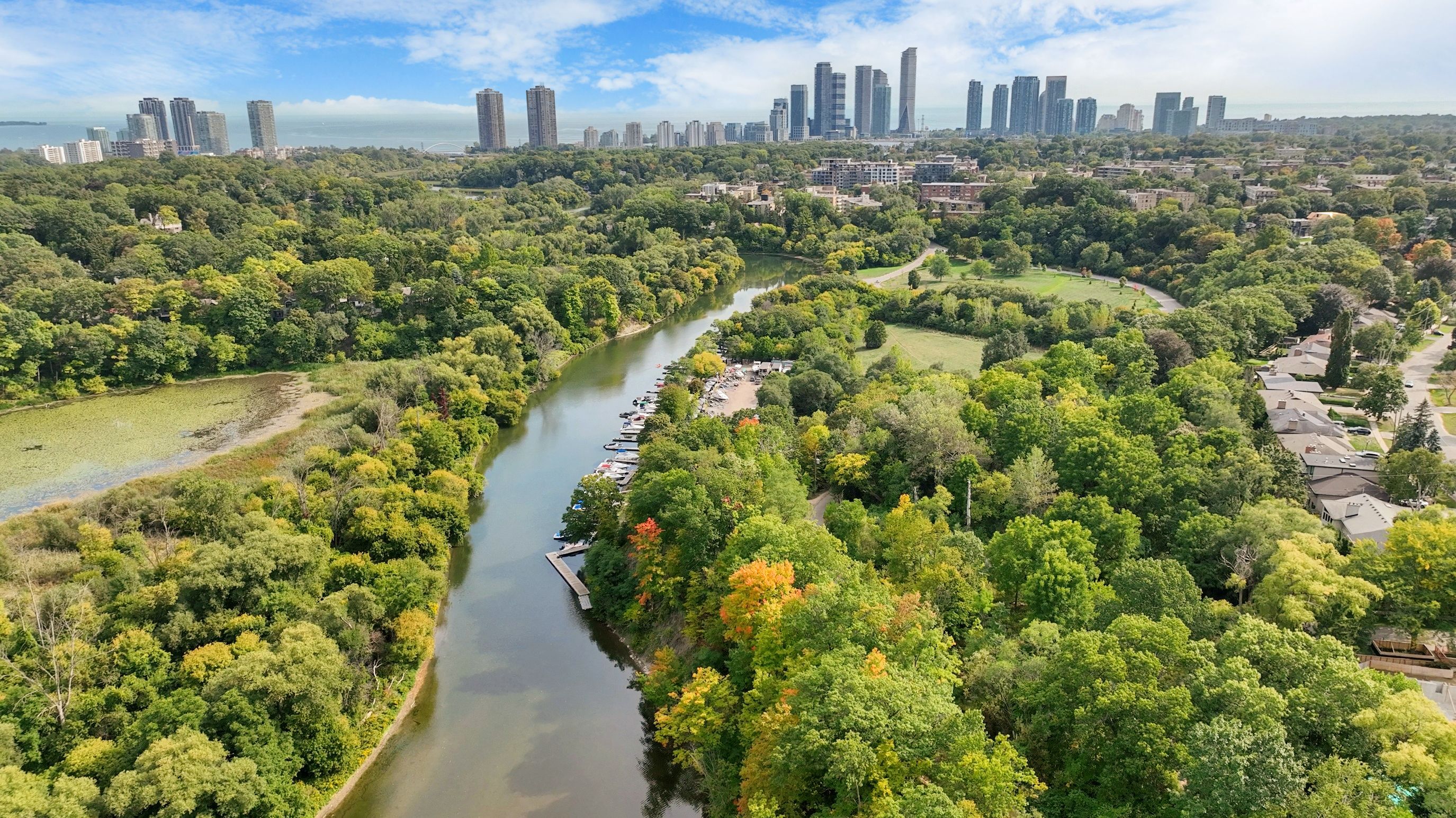 Welcome to 10 old mill trail - where boutique luxury meets nature, charm, and just the right amount of swagger. Tucked into one of the city's most coveted pockets, this low-rise gem is steps to the old mill inn & spa, humber river trails, subway access, and the storybook streets of the kingsway and bloor west village. Location goals? Nailed it! Inside, treetop views and natural light steal the show. Soaring ceilings, rich hardwood floors, crown mouldings, and a sleek electric fireplace create a warm, refined vibe. The open-concept living/dining space is equal parts elegant and functional-perfect for hosting, unwinding, or keeping an eye on the little ones. The dining area flows seamlessly into a well-appointed kitchen featuring a breakfast bar, pot lights, mirrored backsplash, custom desk, and plenty of counter and cupboard space to keep any home chef happy (and organized). The king-sized primary suite is your private escape, complete with a renovated ensuite boasting a jet jacuzzi tub and glass shower. The second bedroom is bright and inviting, paired with a beautifully updated main bath. Plush broadloom in the bedrooms? Your feet will thank you daily. "city outside. Sanctuary inside. Hear the energy of bloor when you want it... Shut it out when you don't - morning coffee with a pulse, evening wine with atmosphere on your massive terrace. Building amenities include concierge, exercise room, party/meeting space, and visitor parking - and yes, your fur-babies are welcome. Recently updated hallways and lobby add a fresh, upscale feel, elevating the everyday experience with a subtle touch of sophistication. Opportunities in old mill don't come up often. This isn't just a condo-it's a lifestyle upgrade. And with two parking spaces, you've got options... Including that second car you've been eyeing. Buy today and brag tomorrow.
