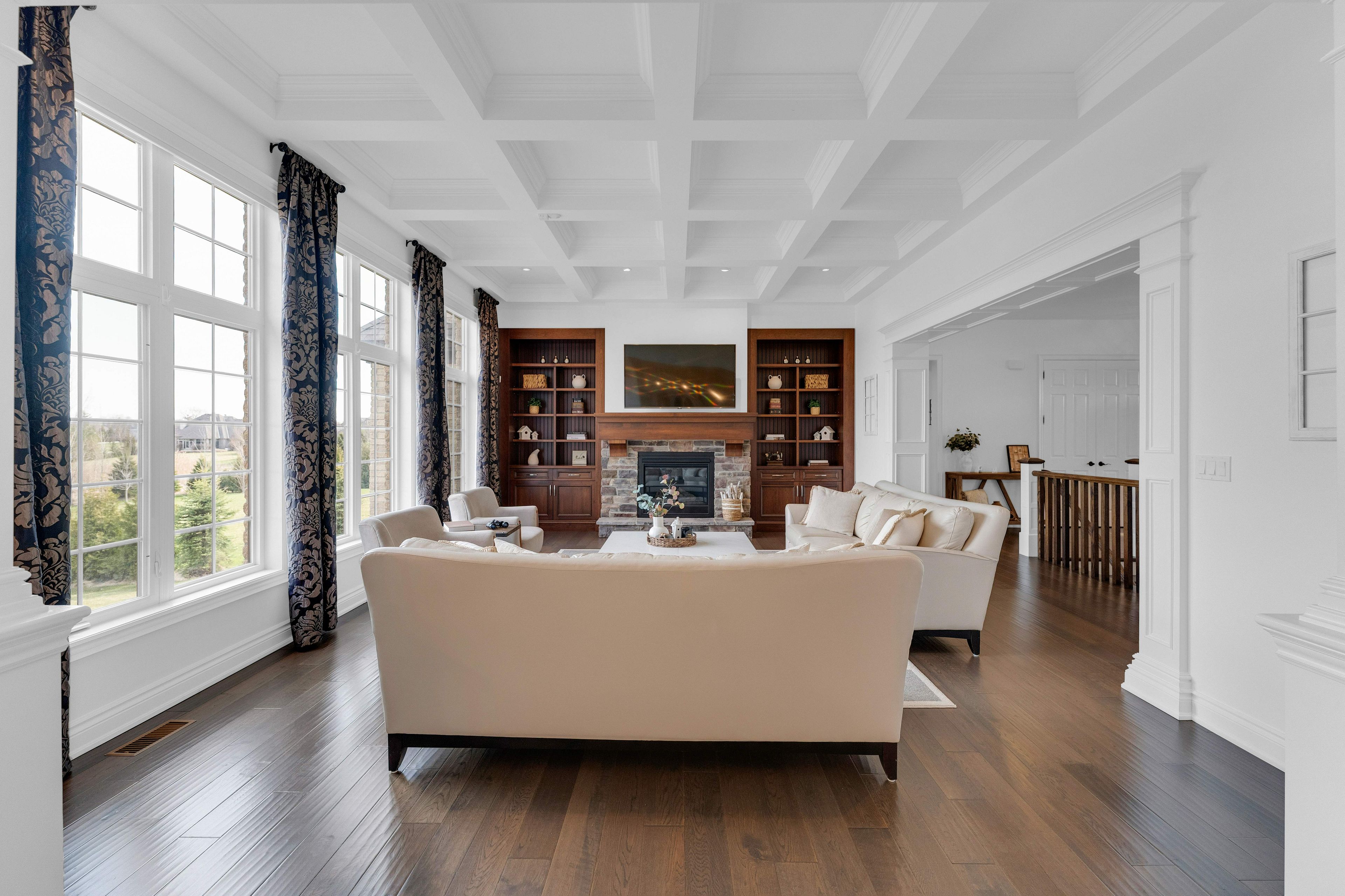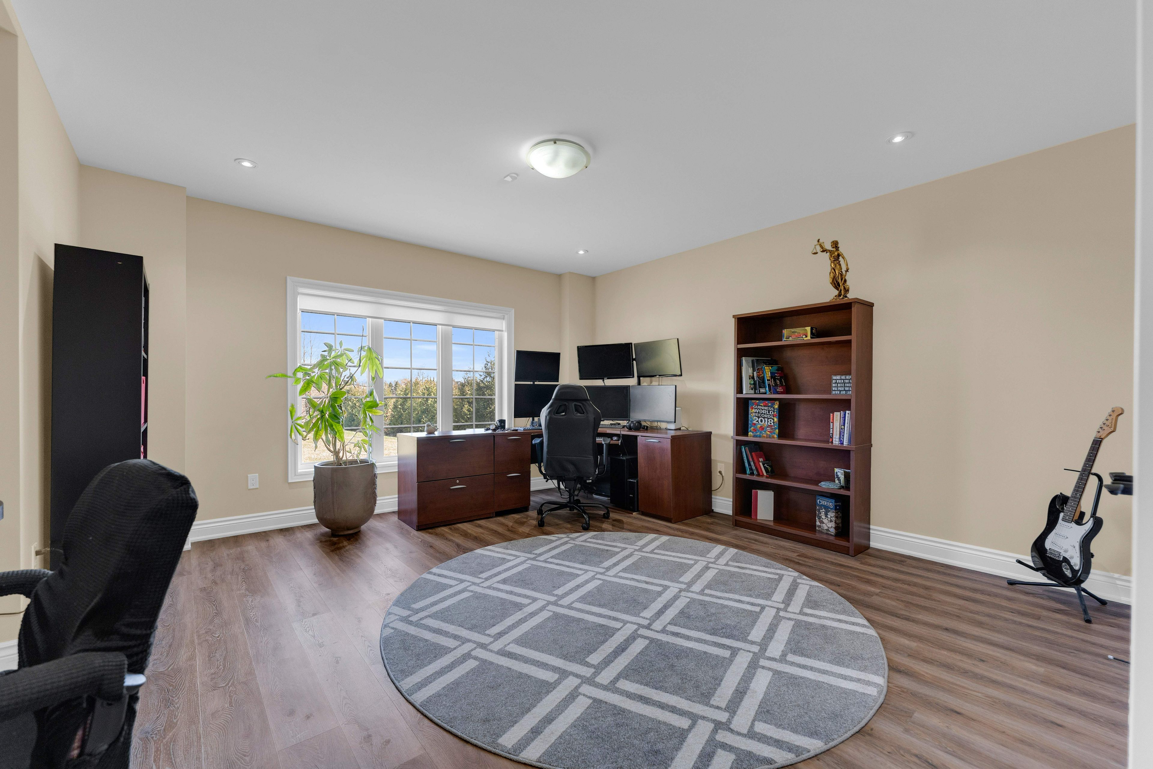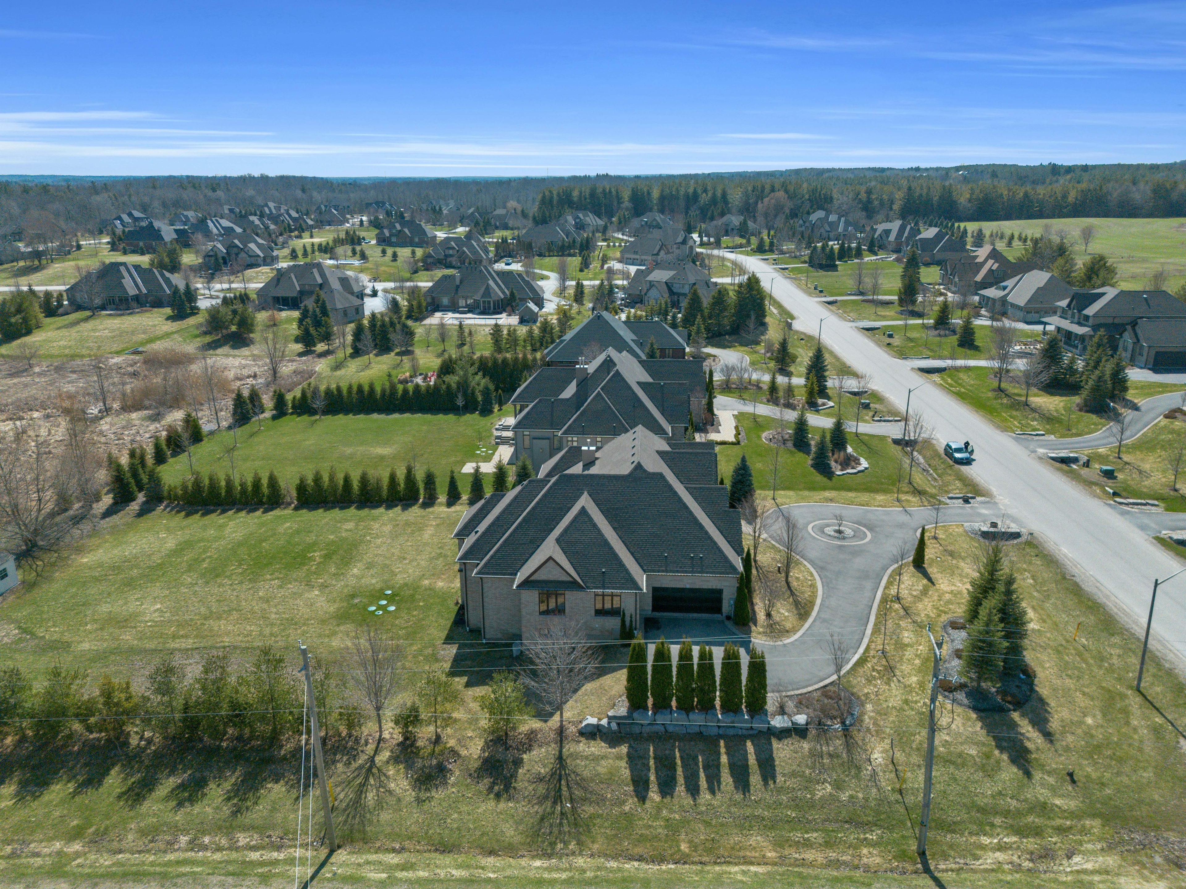 Nestled on a coveted corner lot in the exclusive audrey meadows enclave of puslinch, 10 0ld ruby lane welcomes you with a grand entrance and sweeping circular driveway. Every detail of this special charleston bungalow was crafted with timeless elegance. Step inside: mosaicinlays gleam beneath hardwood, a sitting room waits to your right, formal dining to your left. The great room rises with coffered ceilings, abundant light, and a gas fireplace framed by custom built-ins. A chef's kitchen with granite countertops, pro-grade appliances andoversized pantry, flows to a covered patio and your private 1 acre+ retreat, with environmentally protected land right behind it. Three spacious east-wing bedrooms share a 5-piece bath with soaker tub; the west wing offersyour primary sanctuary with built-in cabinetry, designer walk-in and spa-like ensuite. Main floor laundry opens to the double garage. Downstairs, a finished walk-out basement delivers 4 more bedrooms, 2 bathrooms, dining room with a walk-out to your backyard retreat and a generous rec room! This isn't just a home, it's a lifestyle! Quiet, corner-lot privacy meets family-friendly puslinch's best: fletcher creek trails, lake views, top schools, golf, and farm-to-table dining - all under ten minutes. No city grind. Just room to breathe with every convenience at your door!