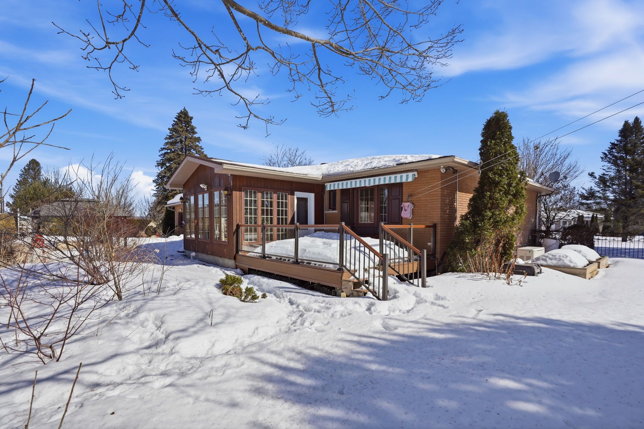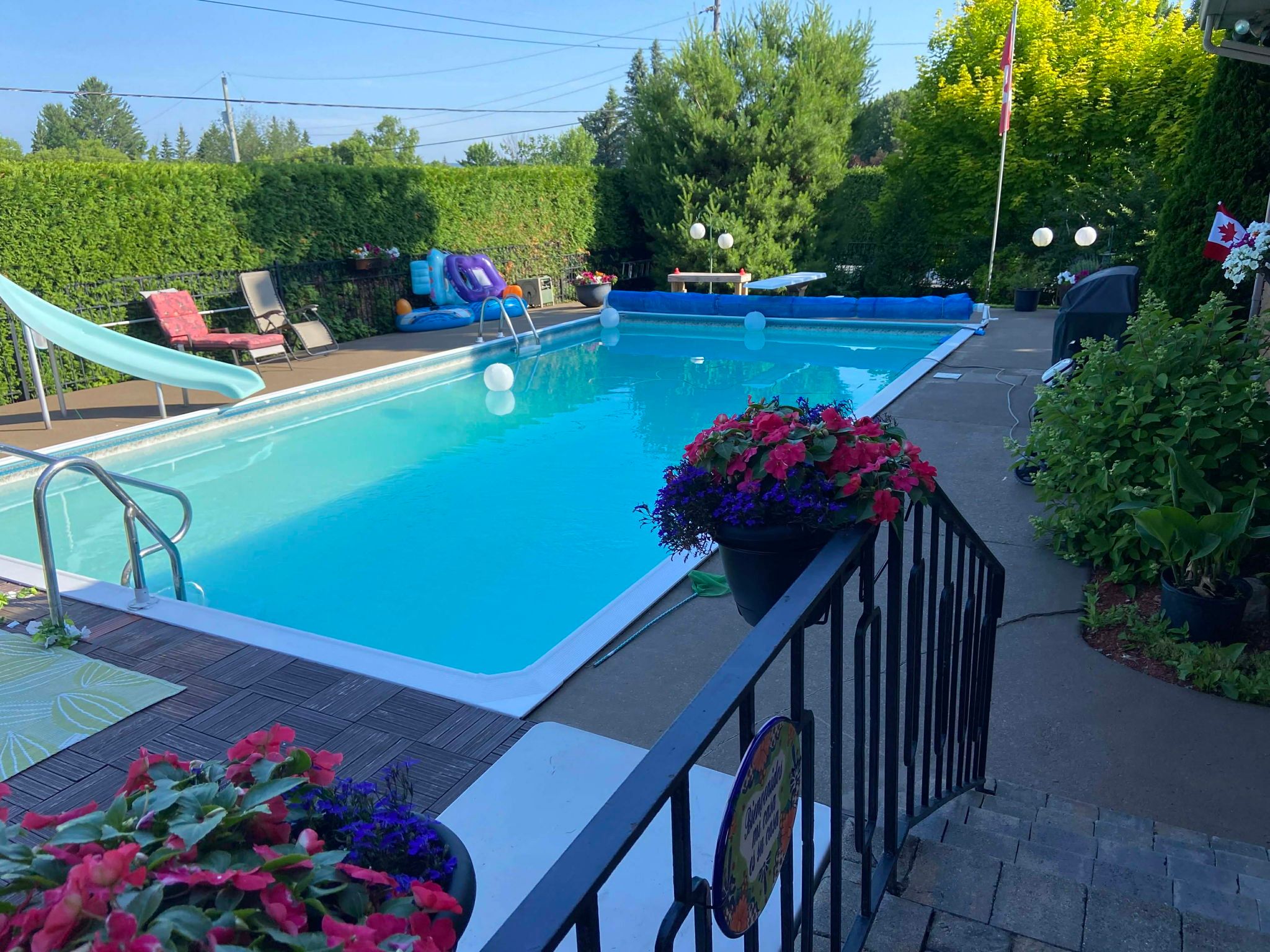Summer is coming!!! You and your family and friends will love this private backyard resort-style oasis that is perfect for fun, poolside living and endless bbq festivities. The backyard boasts an impressive 18' x 36' in-ground pool with diving board and water slide, along with a gazebo complete with curtains and solar lighting. A maintenance-free deck with awning overlooks the beautifully landscaped yard, featuring raised garden beds, perennial gardens, a functioning koi pond with waterfall and filtration system, and fully dog-proof fencing. This property is in an exclusive champlain neighbourhood, just block off the ottawa river. Enjoy year-round relaxation in the bright four-season sunroom that features skylights. Recent updates include a new natural gas washer and dryer, new dishwasher, and fresh upgraded paint throughout. The fully finished lower-level basement with 8-foot ceilings is ideal for entertaining, complete with a bar area, tv space, a full-size second fridge, and a cozy wood-burning fireplace! Additional highlights include a generac generator that runs most of the home, on-demand hot water heater, hot water baseboard heating, central a/c, city water servicing the home, and well water dedicated to the full property sprinkler system. There is also rv parking with 30-amp electrical service and a convenient garden storage building. A truly turnkey property offering thoughtful upgrades and incredible outdoor living.