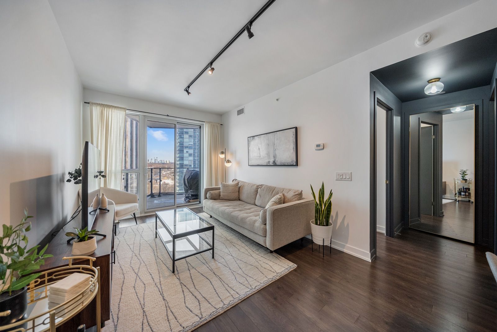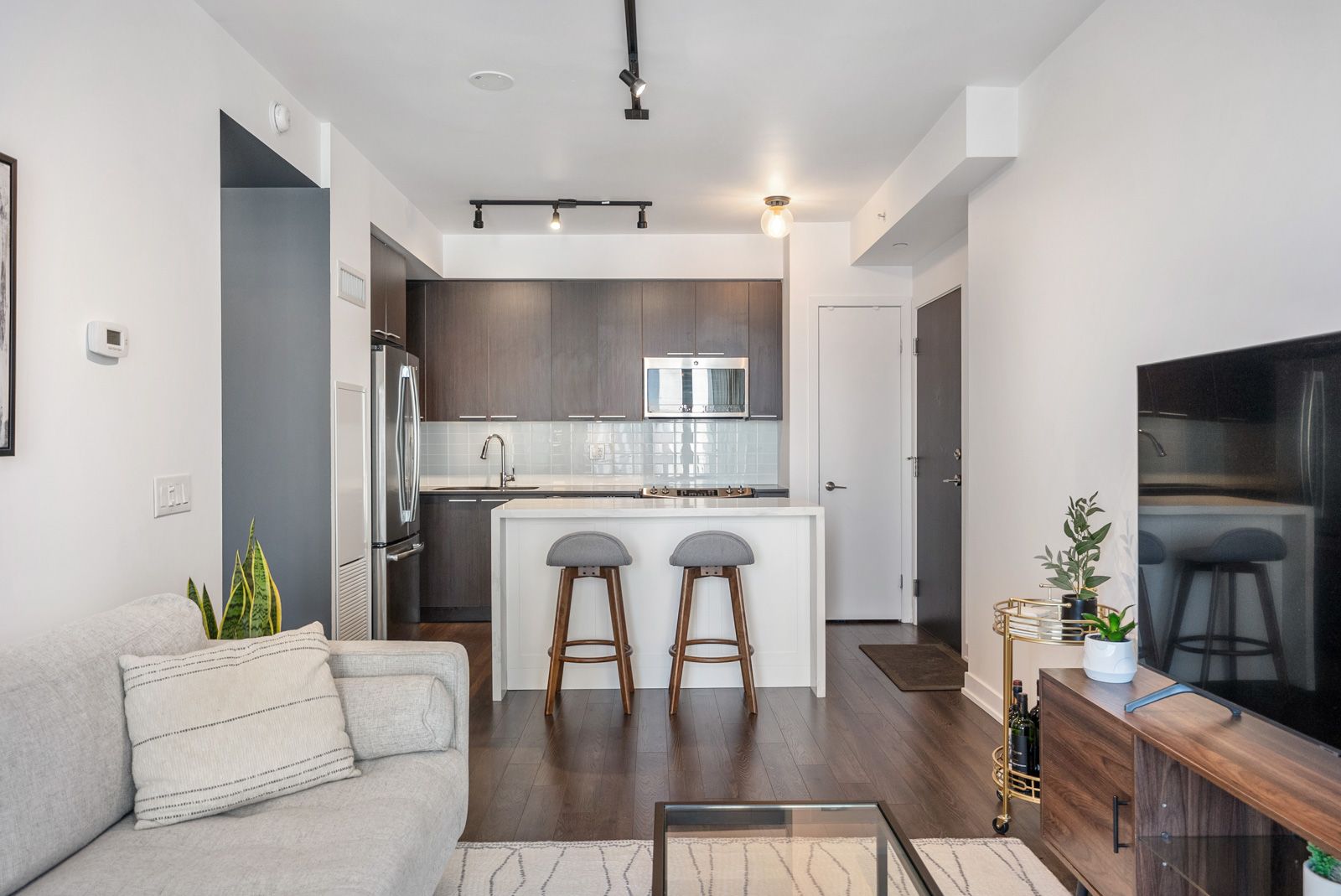 • Sun-filled one-bedroom condo with a modern open-concept layout.