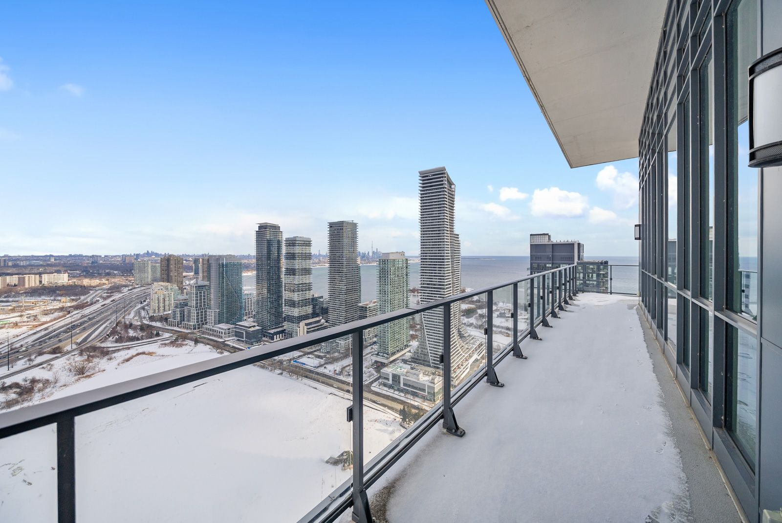 Welcome home to refined waterfront living in the highly sought-after community of humber bay shores. Just moments from the lake, this beautifully appointed one-bedroom condo offers a perfect balance of modern design, comfort, and lifestyle. Sun-filled and thoughtfully upgraded, the open-concept layout is ideal for both everyday living and entertaining. The contemporary kitchen features stainless steel appliances, a glass tile backsplash, and a striking quartz waterfall island that anchors the space with style and function. Upgraded lighting and a custom glass enclosure discreetly concealing the washer and dryer add a sophisticated, design-forward touch. The living area flows seamlessly to a spacious private balcony, creating an inviting extension of the home with impressive views and an ideal setting for morning coffee or evening relaxation. The bedroom is generously sized with ample closet space, while the modern bathroom is finished with clean lines and sleek fixtures, offering a spa-inspired feel. Residents enjoy access to an exceptional collection of resort-style amenities, including a fully equipped fitness centre, squash court, sauna, outdoor swimming pool with cabanas, rooftop terrace, party room, business centre, guest suites, and 24-hour concierge service. Steps to waterfront trails, parks, shops, dining, and transit, with plenty of visitor parking available, this home offers effortless lakeside living in one of toronto's most vibrant communities.