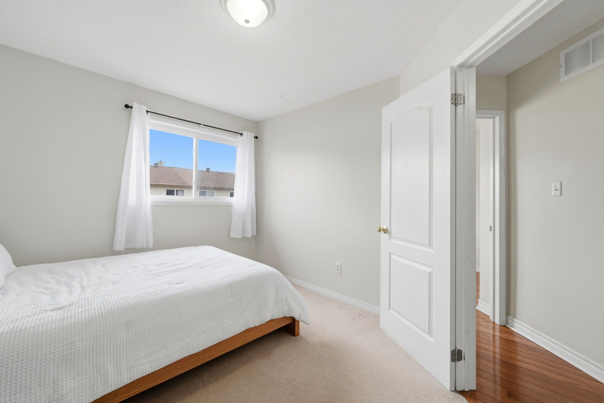 Welcome to this charming and well-maintained home in a prime angus location, offering a fantastic opportunity for first-time buyers or those looking to establish roots in a great community. The main floor features a comfortable living room and a bright kitchen with a functional breakfast area that walks out to a private back deck and yard. This layout provides a great setup for everyday family life and easy outdoor access for summer bbqs. A convenient two-piece powder room completes the main level. Upstairs, the primary bedroom serves as a practical retreat with a walk-in closet and a semi-ensuite bath, complemented by two additional decent-sized bedrooms perfect for children, guests, or a home office. The finished basement provides valuable extra living space with a recreation room suited for a playroom, gym, or hobby area. A major highlight of this property is the total peace of mind regarding the home's mechanical systems; both the furnace and central air conditioning were updated in 2020, and the hot water heater is fully owned, ensuring there are no monthly rental contracts or hidden fees to assume. With an attached garage and two additional driveway parking spots, there is plenty of room for vehicles. Situated in a family-friendly neighborhood close to essential shopping, dining, and major commuter routes, this home offers a solid and affordable start in a great community.