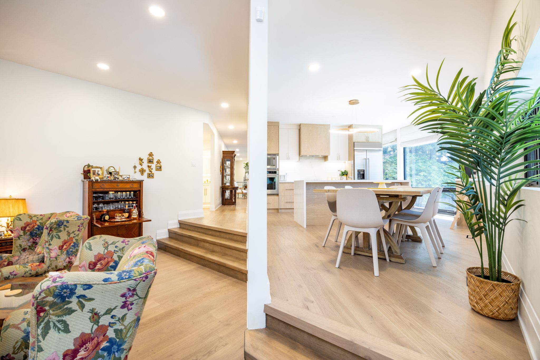 • Luxurious lower level with wet bar, fireplace, and garden views.