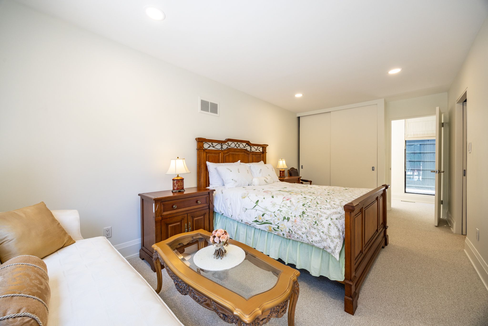 • Three-car garage and circular driveway accommodating over eight vehicles.