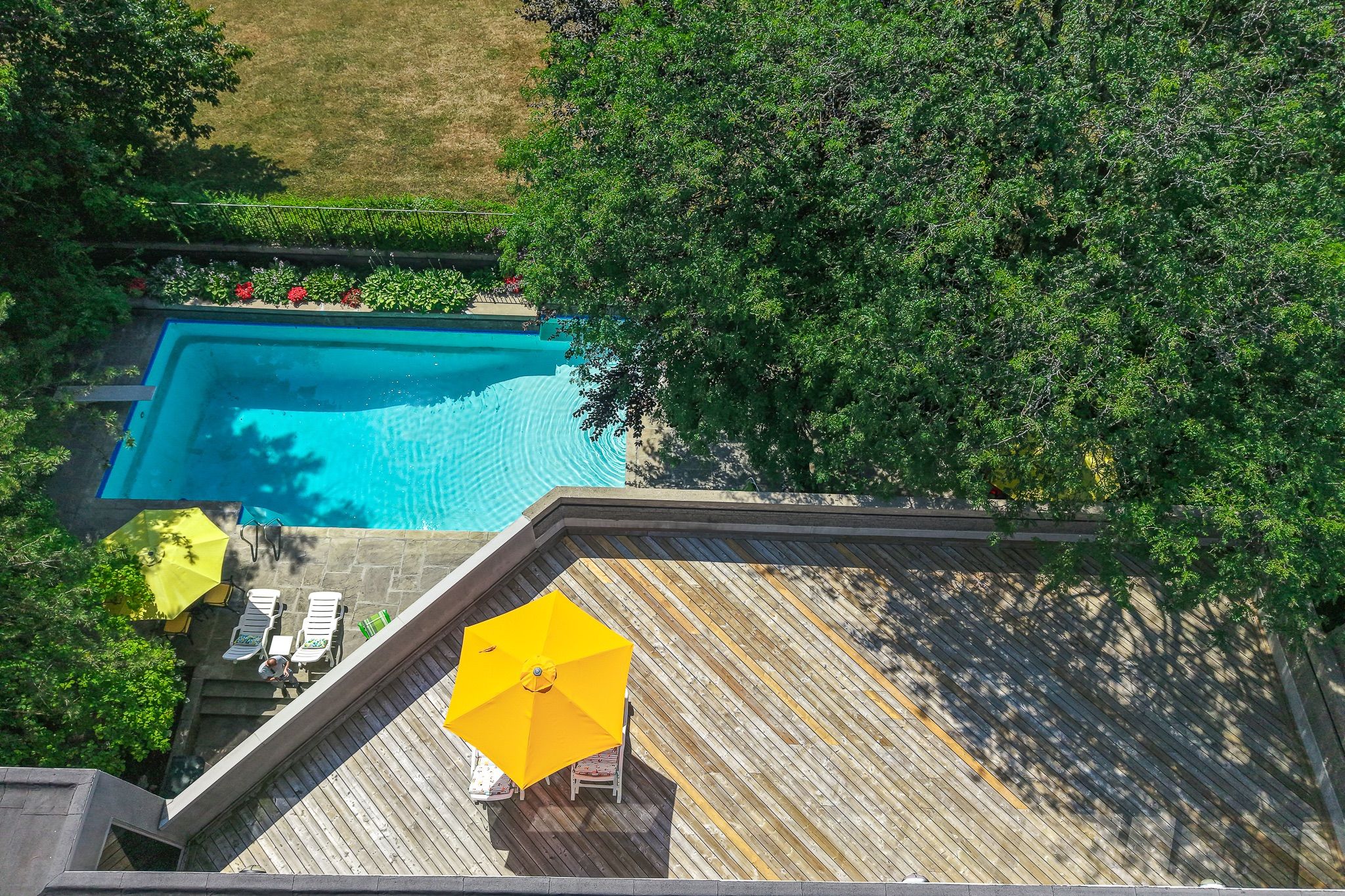 An iconic showcase of refined design, upgraded and perfectly positioned in the prestigious windfields neighbourhood, this exceptional residence offers unparalleled privacy and a seamless connection to the natural beauty of windfields park. Bold brutalist architecture creates a dramatic, light-filled interior with floor-to-ceiling picture windows on every level, adorned with custom belgian linen window coverings. An expansive second-floor sundeck provides sweeping park views and is accessible from all four bedrooms, while the lower level opens effortlessly to lush rear gardens. The main floor is designed for elegant entertaining, featuring formal living and dining areas, a sunken family room, a chef's kitchen with servery, and walk-outs to a flagstone patio and shimmering concrete pool. A sculptural open-riser staircase enhances the flow of natural light throughout the home. The lower level offers a luxurious retreat with a fifth bedroom, wet bar, recreation room with wood-burning fireplace, sauna, and floor-to-ceiling garden views with walk-up access to the patio. A three-car garage and circular driveway accommodating 8+ vehicles provide ultimate convenience, while proximity to top schools, 401/404/dvp, and the exclusive granite club ensure unparalleled lifestyle ease. A rare urban sanctuary, this home combines dramatic design, refined luxury, and a serene parkside setting for a truly extraordinary living experience.