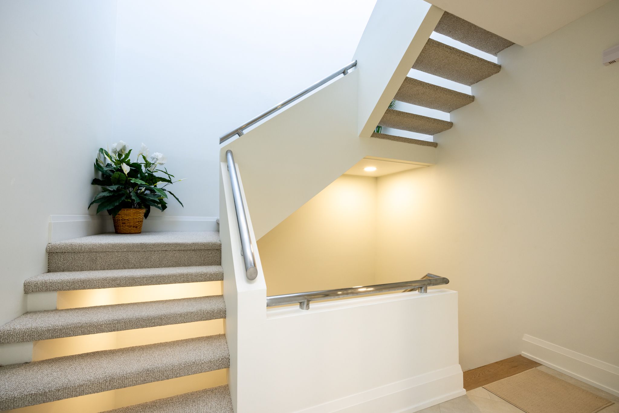 • Bold Brutalist architecture with floor-to-ceiling windows for natural light.