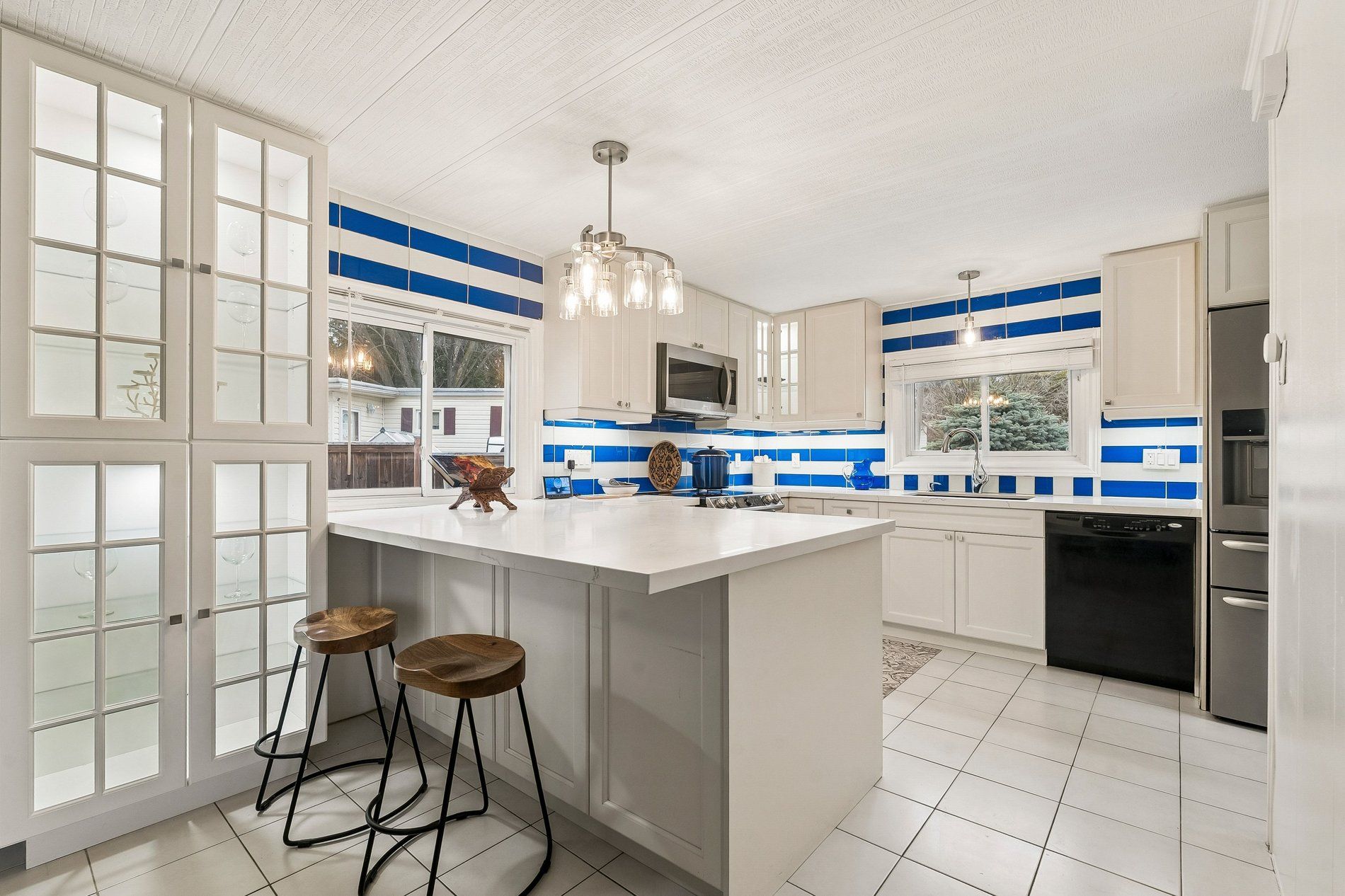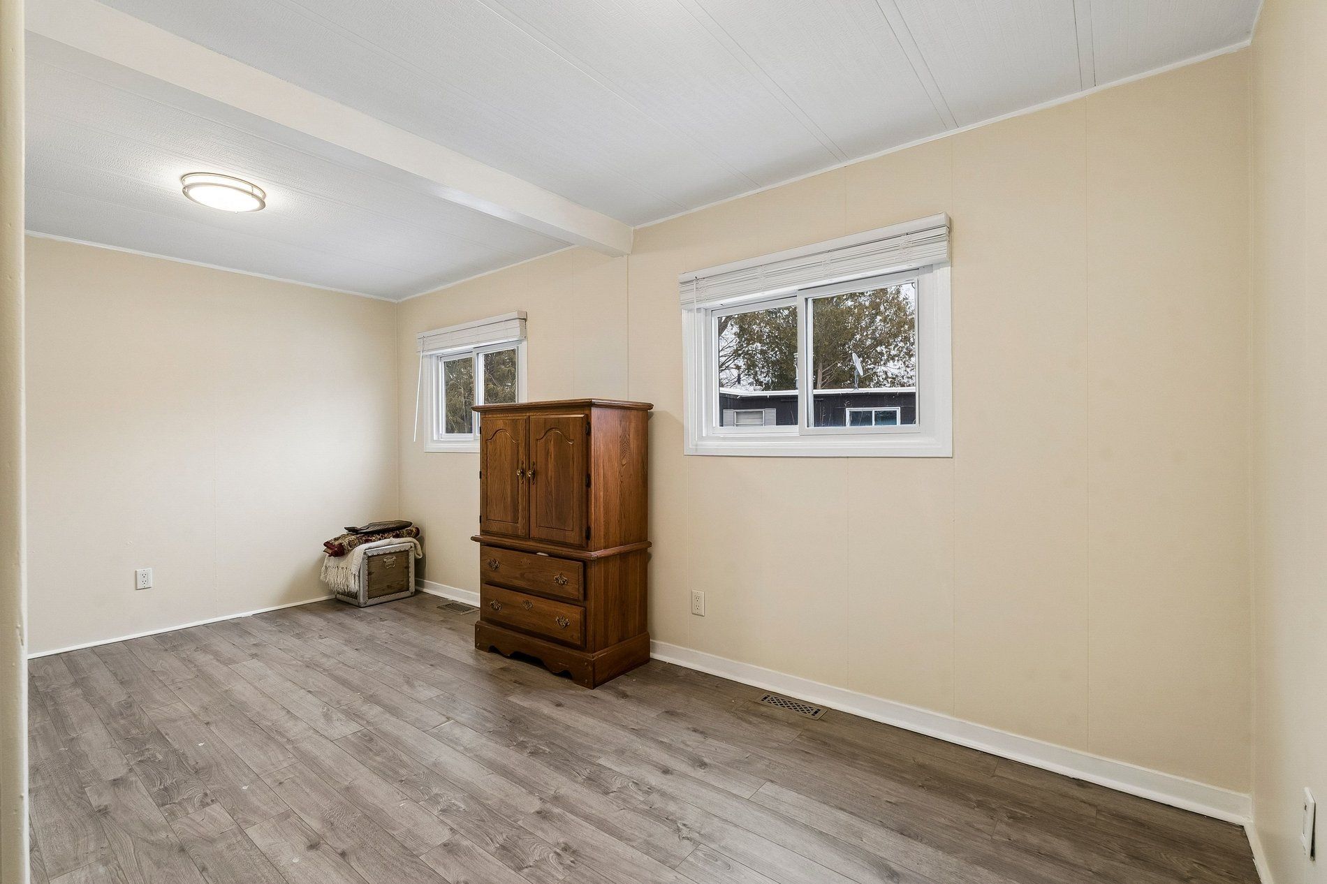 Age 55 plus community!!! Unique one of a kind affordable multi generational home!! Modular home features spacious principal rooms, many upgrades this home has 3 bdrm but can easily be converted to a 2 bedroom with a separate 1 bedroom suite with separate entrance and it's own washroom. Plumbing and electrical hookups for a kitchen are still there in the primary bedroom. Many upgrades such as nest thermostat, wireless door lock, light controls and baseboard heater controls. Freshly painted large foyer entrance with access door to side deck one of the largest yards in the park and is partially fenced. Insulated garden shed with hydro for the handy man! You'll be surprised at what this home has to offer! Water and sewage included in monthly maint fee. Pets permitted with restriction. See attached rules for the park