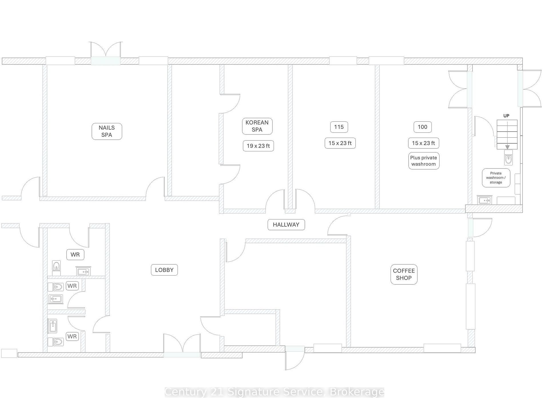 • Access to a lobby and common washrooms for convenience.
