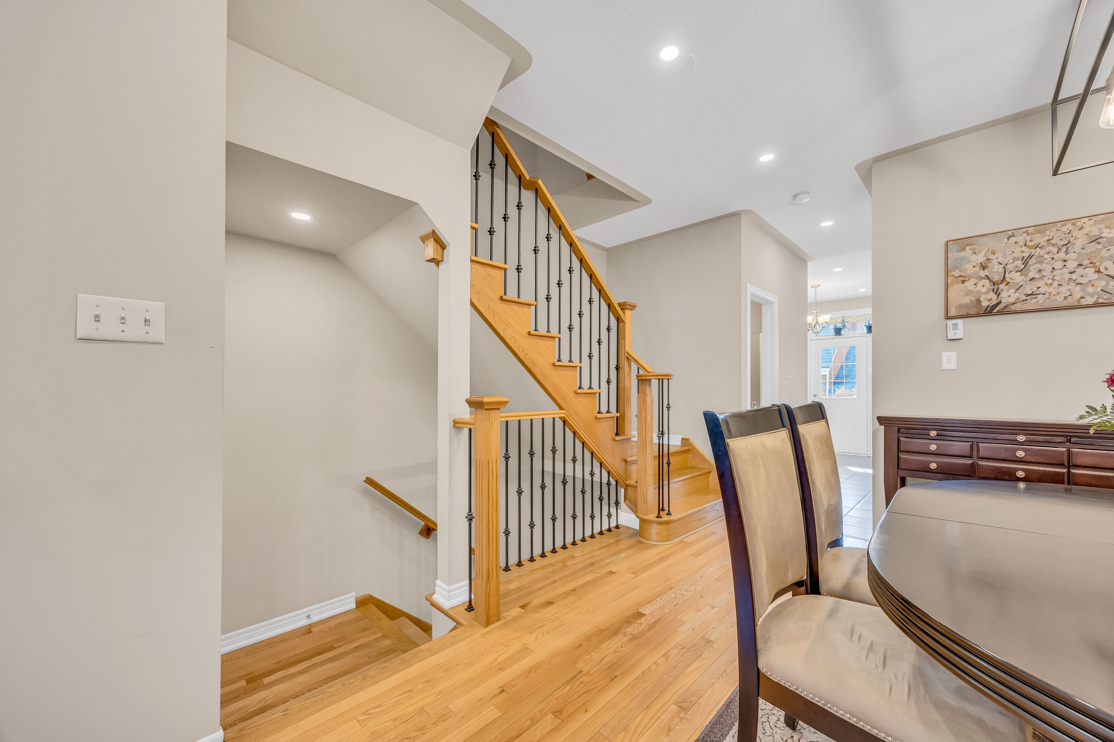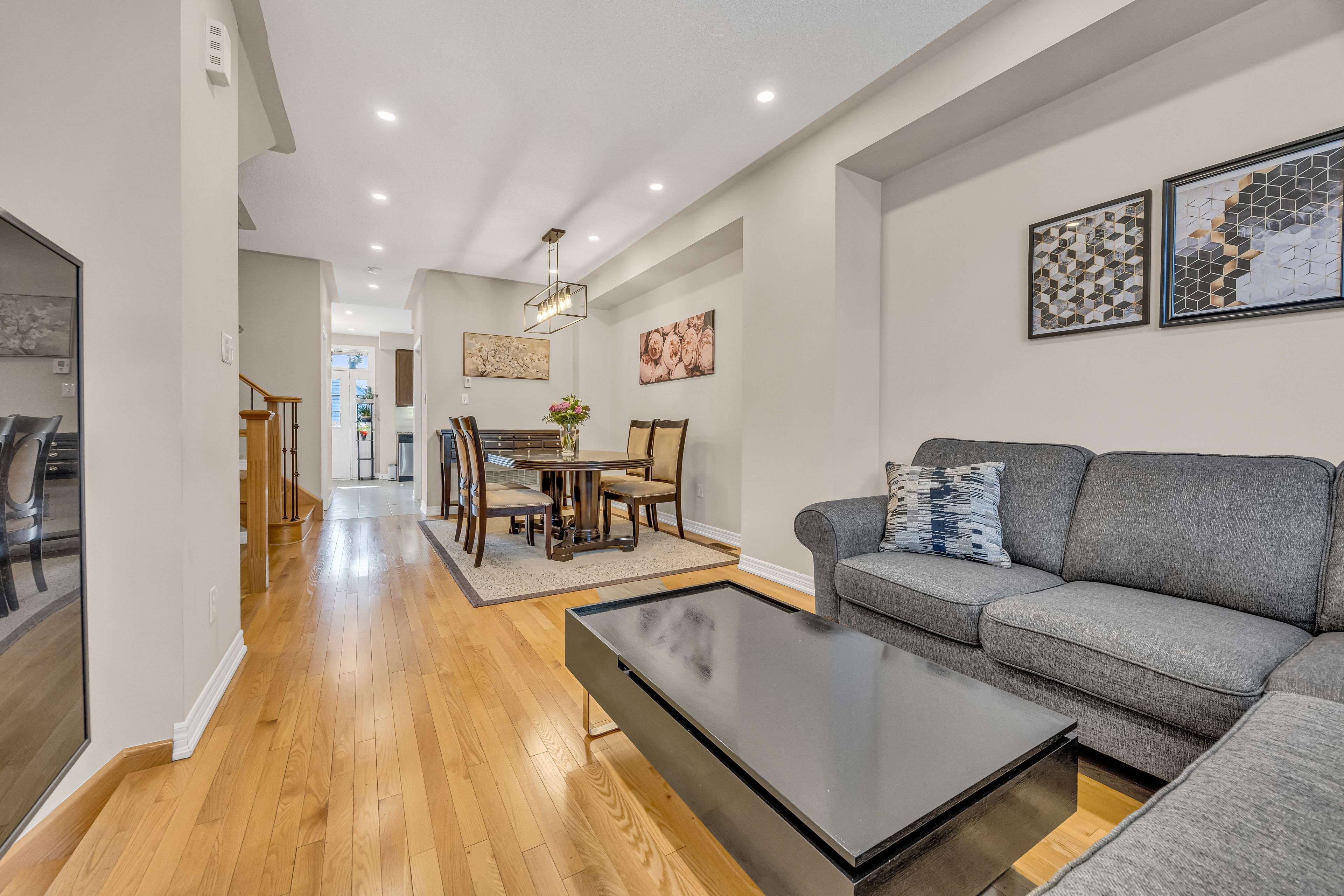 • Spacious open concept living and dining area with hardwood floors.