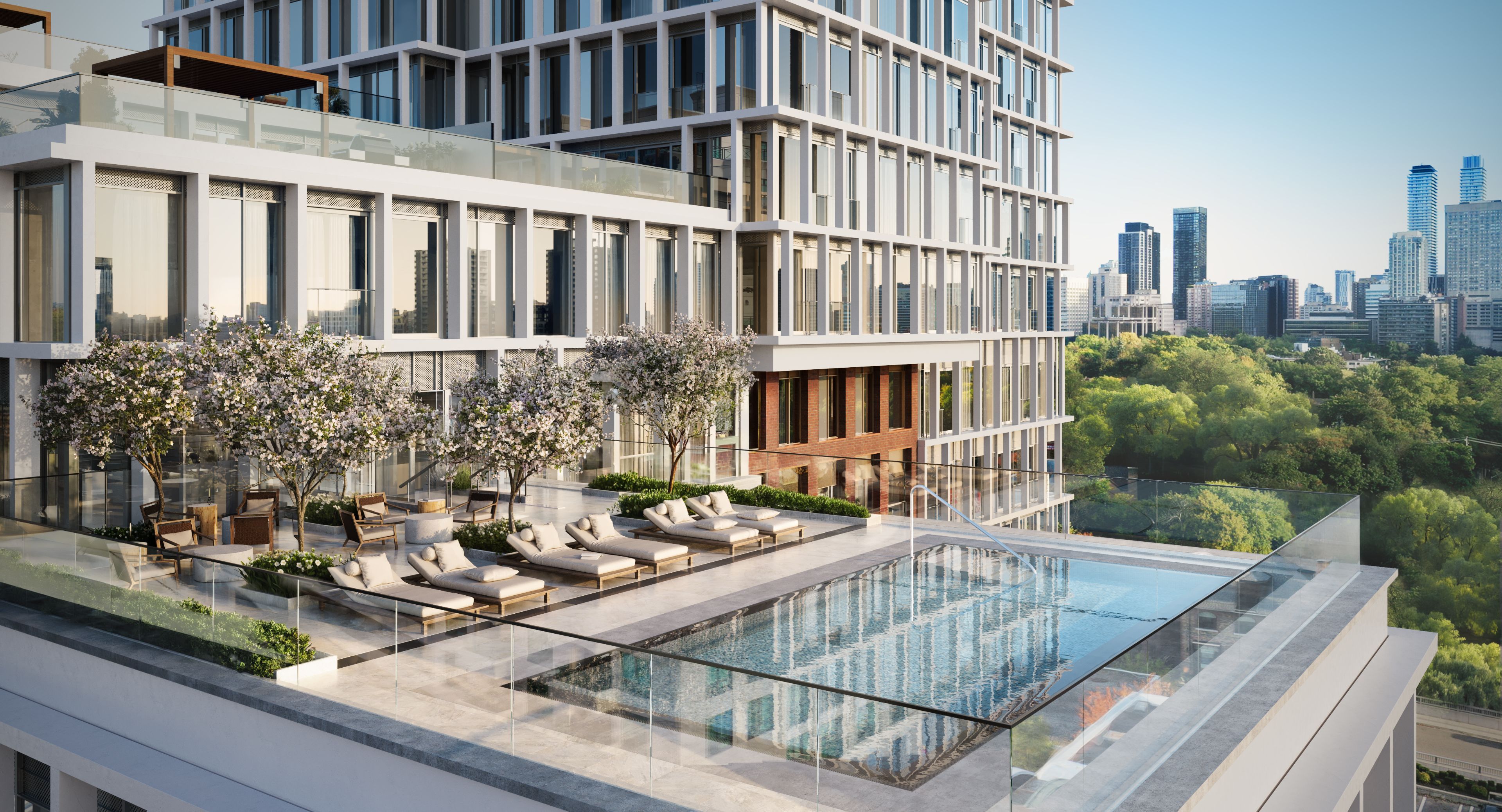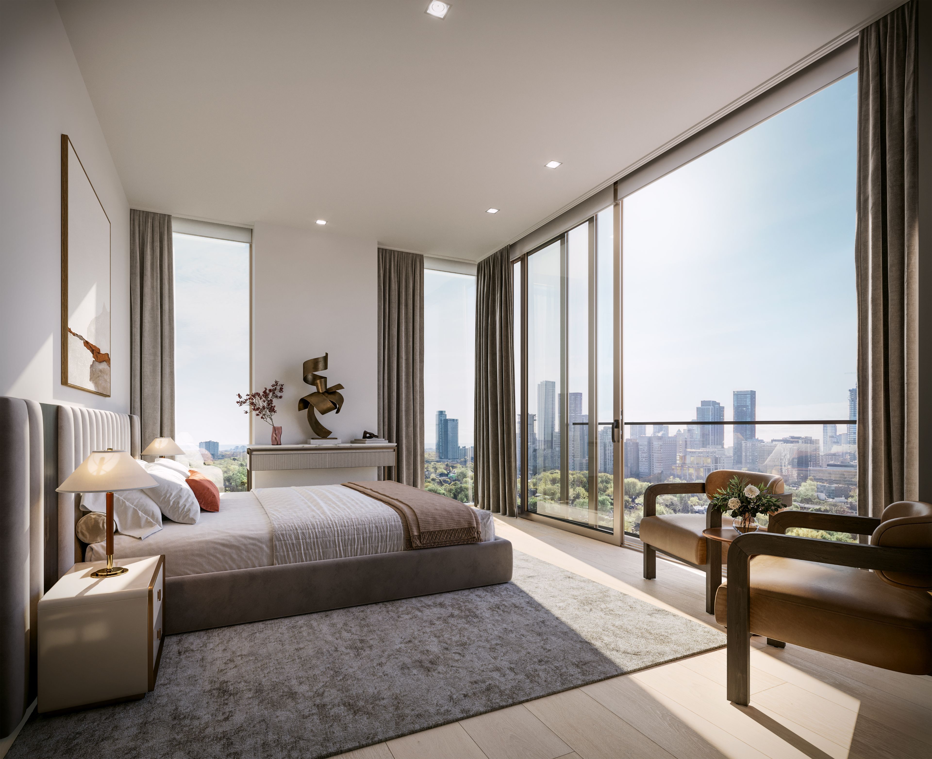 The james has arrived - a bold architectural statement in the heart of rosedale's highstreet. Every hand-laid brick speaks to the building's exceptional craftsmanship, purpose-built for luxury residential leasing. Free from the responsibilities of ownership, residents enjoy a refined lifestyle defined by world-class design and hospitality. Brought to life by cobe architects (denmark) and hariri pontarini (canada), the james marries five-star living with curated finishes and service by tricon residential. Suite 1501 offers 2,100 sf of sophisticated interior space with south-east exposures, framing unobstructed views over rosedale's lush tree canopy and the city skyline stretching all the way to lake ontario. Floor-to-ceiling windows and soaring ceilings fill the suite with natural light. The kitchen is a showpiece, featuring custom scavolini italian cabinetry, a central island in ceppo di gré italian porcelain, and fully integrated gaggenau appliances. The primary suite includes a walk-in closet and a stunning ensuite with a frameless shower. Second bedroom with 5-piece ensuite and walk-in closet. A third bedroom with closet, perfect for guests or an office. Ensuite laundry and ample storage space. Amenities include 24/7 valet, concierge, and doorman service, smart keyless entry, a resident mobile app, and discreet security. Wellness offerings abound: indoor and outdoor pools, scandinavian spa, fitness and wellness centre, sun deck, theatre room, and an elegant great room. This rare offering unites design excellence, an iconic location, and unparalleled service - redefining canada's luxury rental experience.