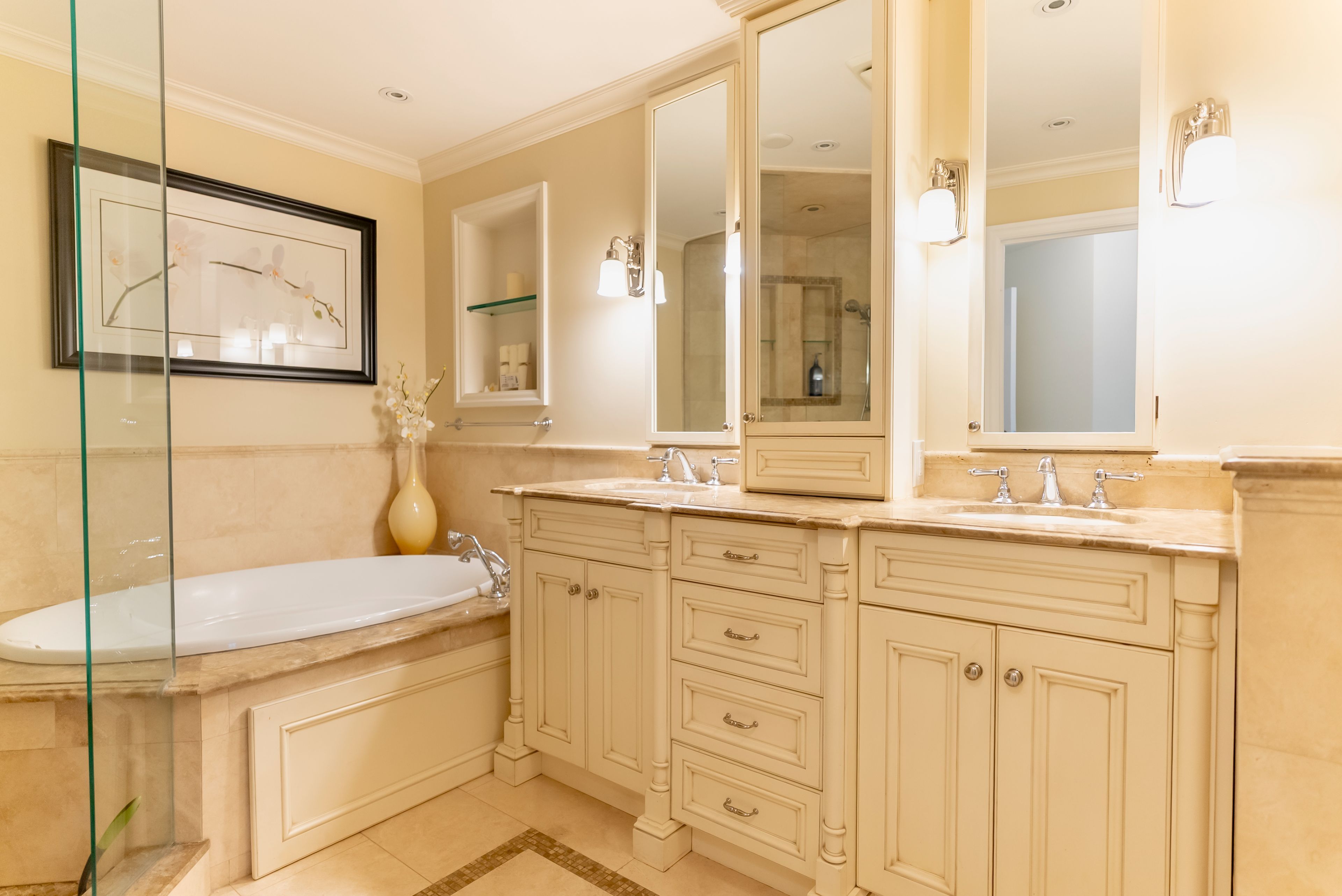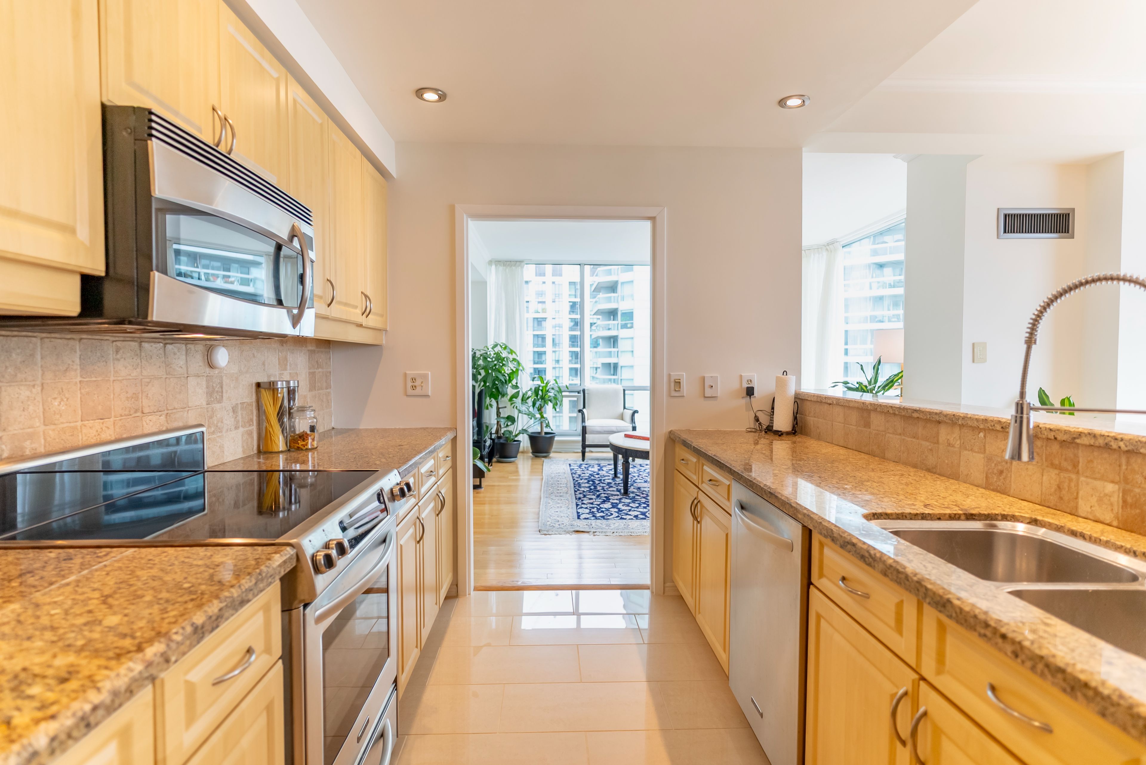 • Gourmet kitchen with top-quality stainless steel appliances and elegant finishes.