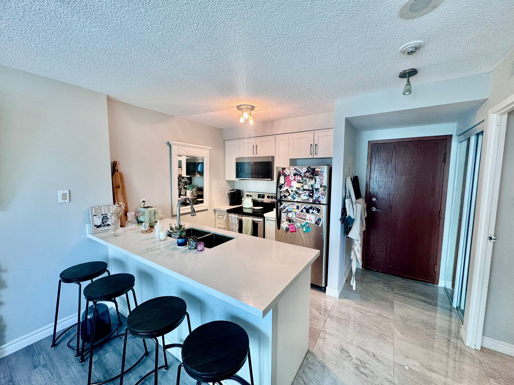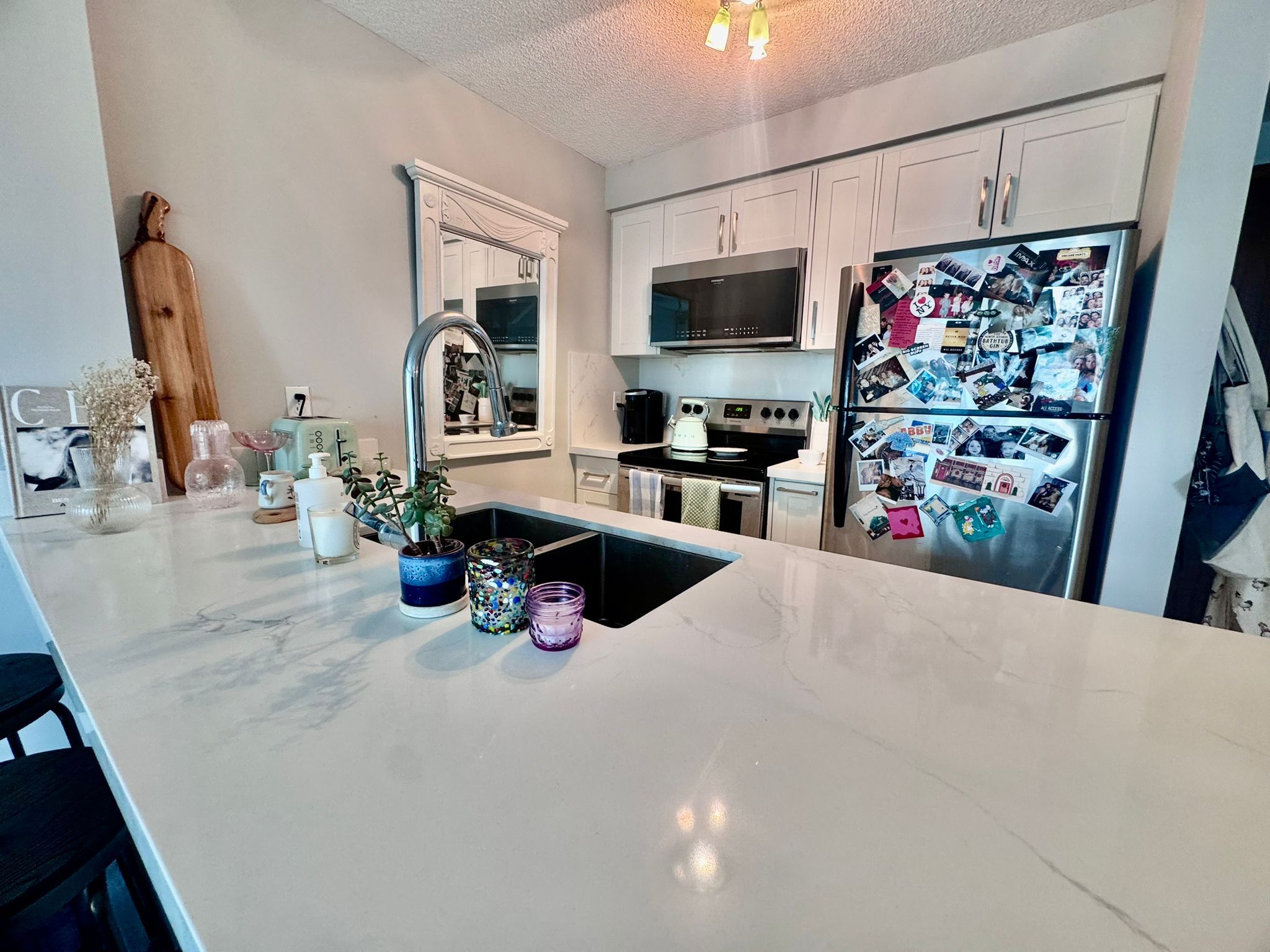 • Modern kitchen featuring elegant quartz countertops and stylish backsplash.