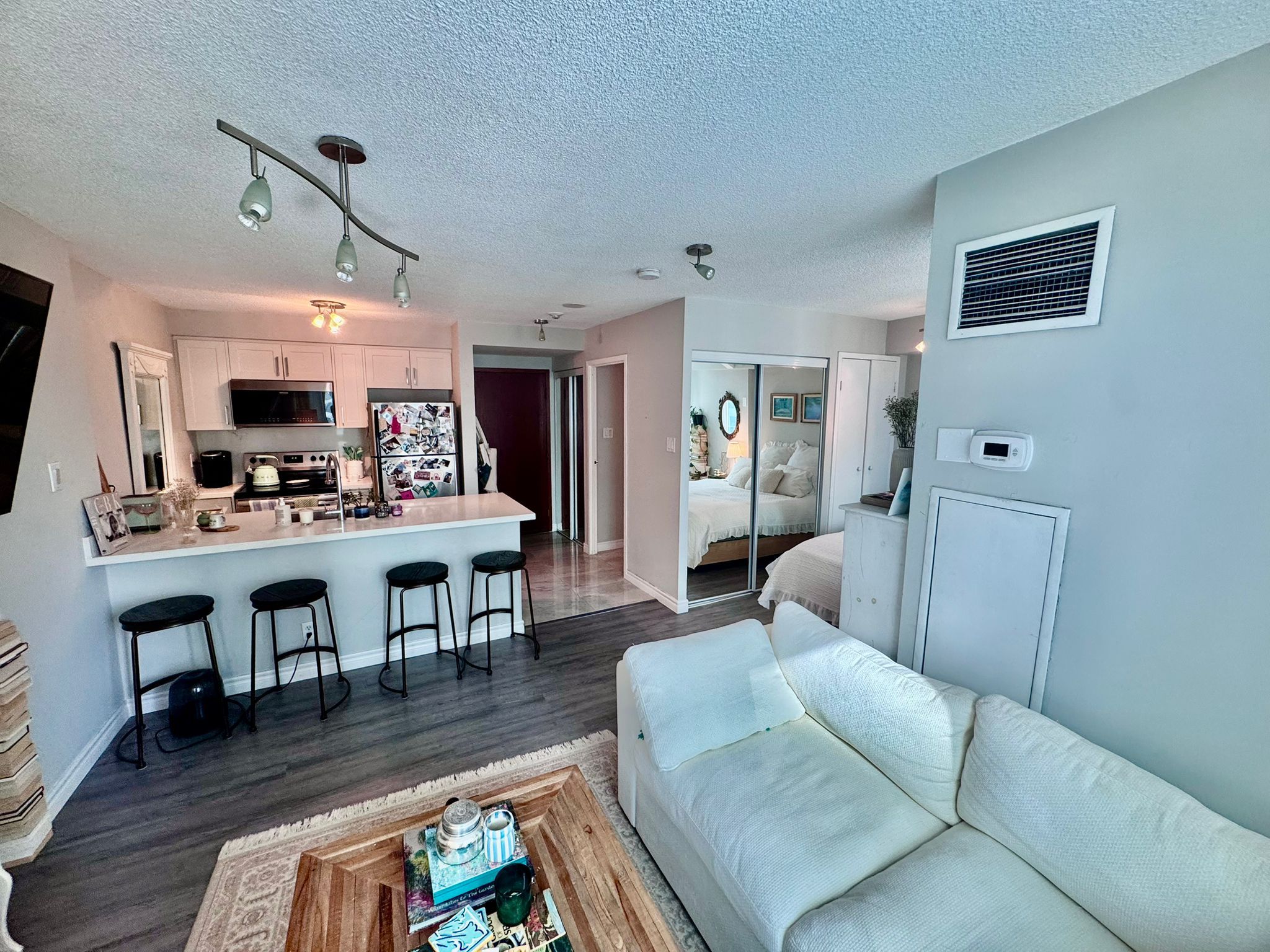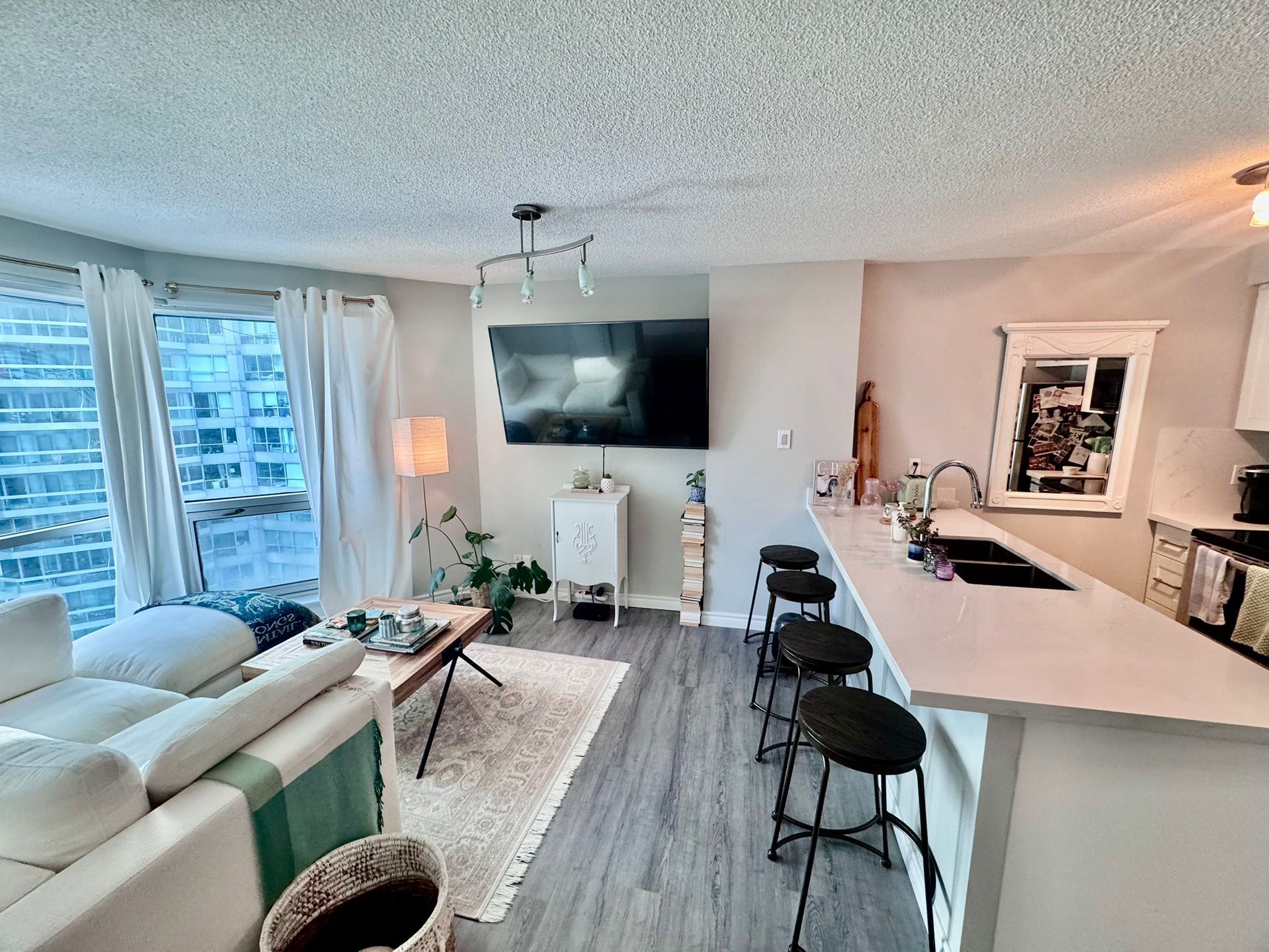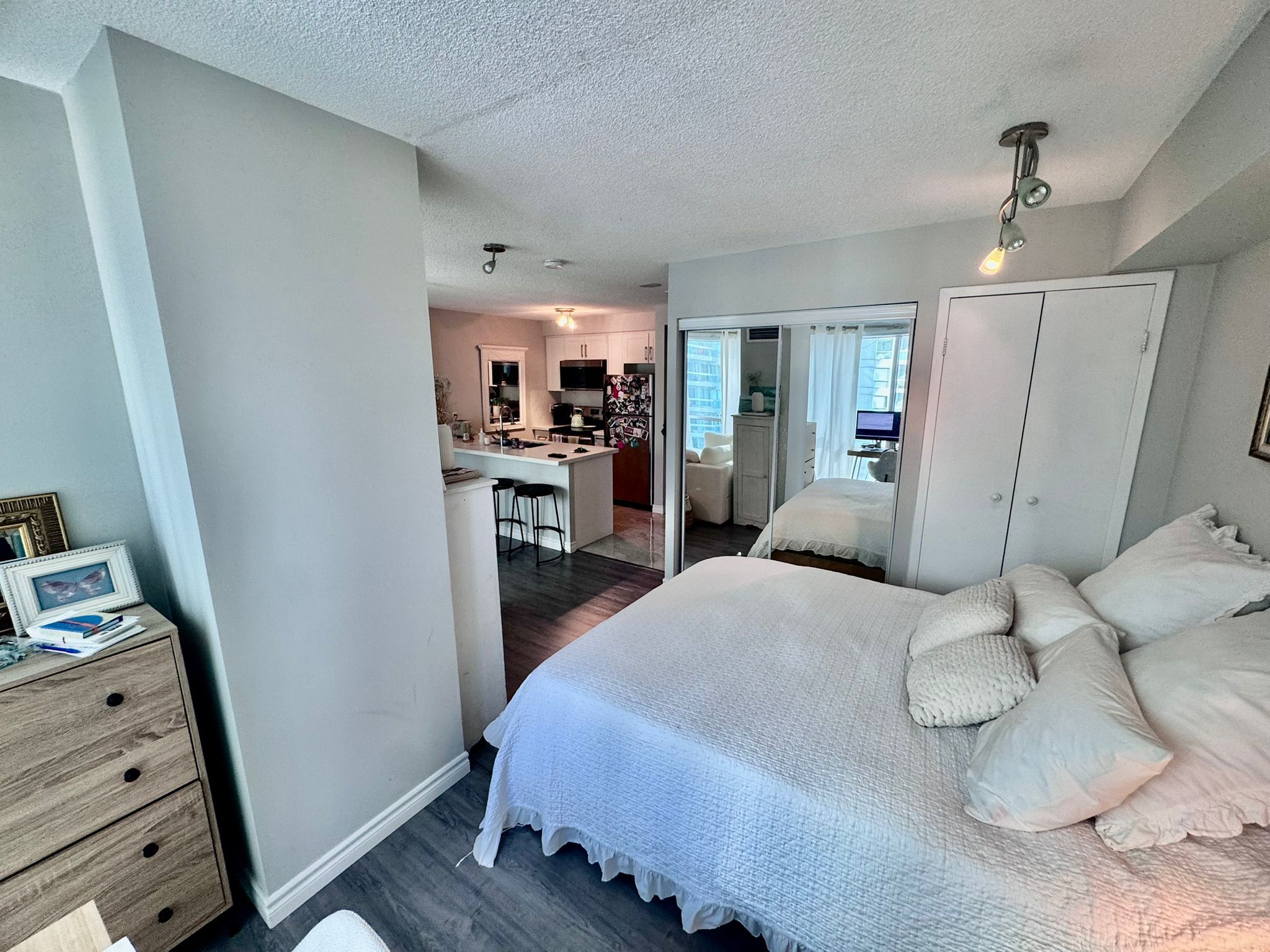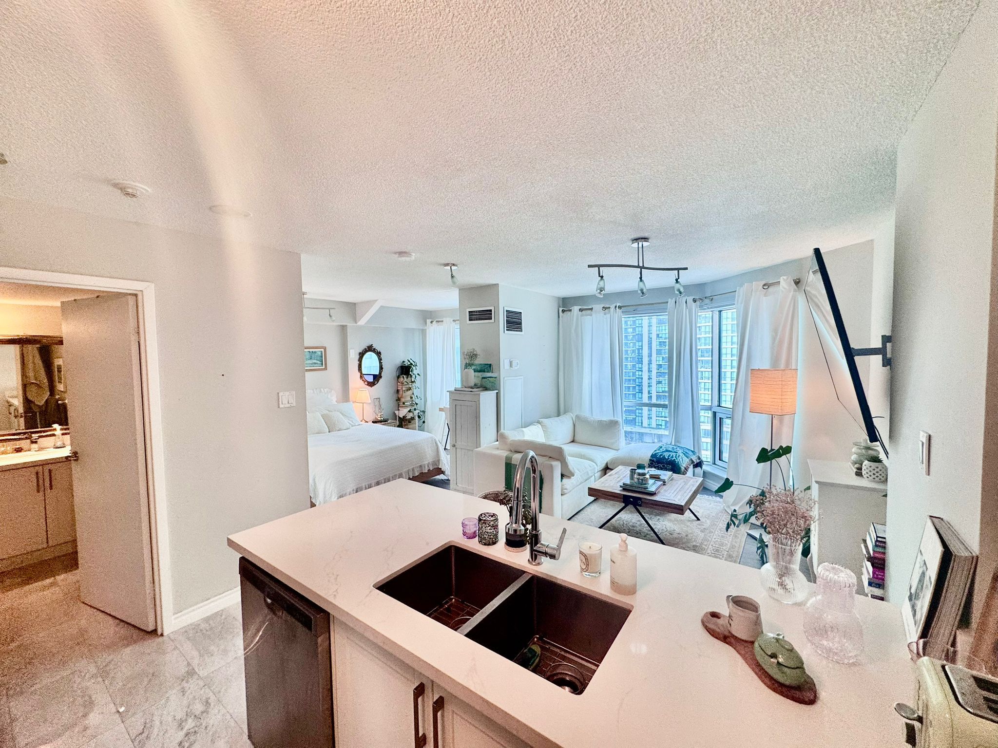 Resort-style living in the heart of the city in this spacious 475sqft studio at 10 queens quay west, available for immediate occupancy. This polished, light-filled unit features floor-to-ceiling windows that flood the space with natural light, highlighting a modern kitchen adorned with opulent quartz countertops, a matching backsplash. The thoughtfully designed layout includes a comfortable sleeping area perfect for winding down and a sophisticated 4-piece bathroom with a beautifully tiled shower and contemporary finishes. Residents of this premier harbourfront building enjoy world-class amenities, including a 24-hour concierge, a fully equipped gym, a party/meeting room, and the rare luxury of both an indoor and outdoor pool. Ideally situated just steps from the jack layton ferry terminal, the martin goodman trail, and the scenic waterfront boardwalk, this location offers unparalleled access to the financial district, union station, and a diverse array of upscale dining and entertainment options.