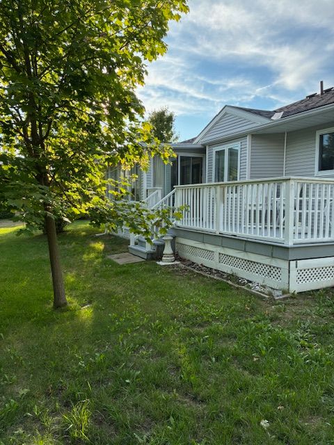 Inviting well maintained approx. 900 sq. Ft. Bungalow in wellington on the lake adult lifestyle subdivision. This home has charm and comfort, has a lovely 3 season sun room and a beautiful private backyard with a variety of lovely mature trees. The versatile den also doubles as an ideal second bedroom and there is an extra 2-pc. Bath. Kitchen has lots of cupboard space plus laundry/pantry with ample cupboards and 2 year old maytag washer and dryer. Large master bedroom with remodeled en-suite 4 pc. Bath. There is an enclosed front porch with inside access to the single car garage. Located on a quiet cul-de-sac with great neighbours on the street. Enjoy living in this friendly, safe, adult lifestyle community with activities at the recreation center, library, gym, billiard room, shuffleboard, in-ground heated pool, tennis/pickle ball court, lawn bowling & woodworking shop. Walking distance to the millennium trail, golf course, medical center, lcbo, and village shops, restaurants, bank, pharmacy, grocery and hardware store. Close to beaches, wineries, arena, parks and all that beautiful prince edward county offers.