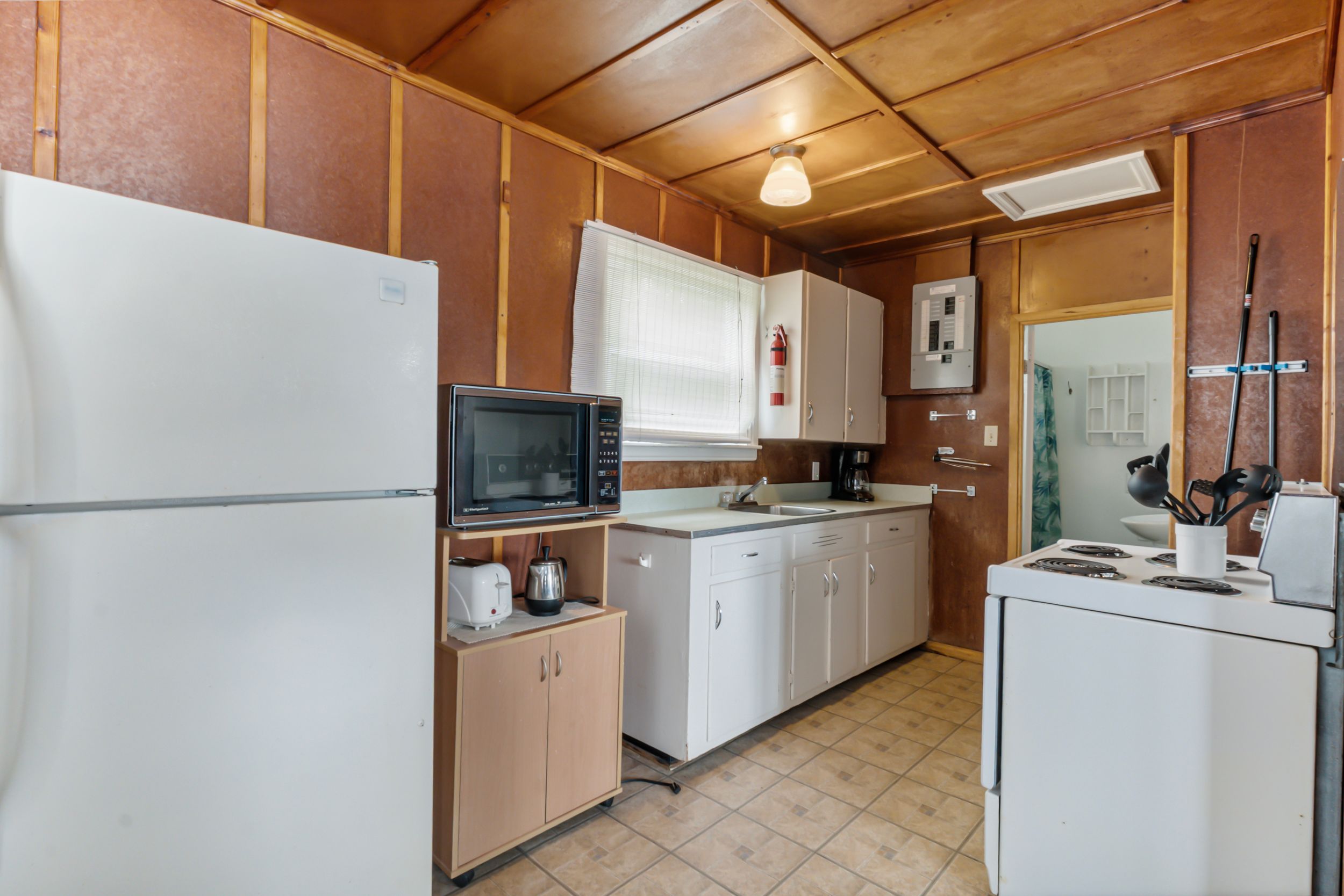 • Main house offers 2 bedrooms, 2 bathrooms, and cathedral ceilings.