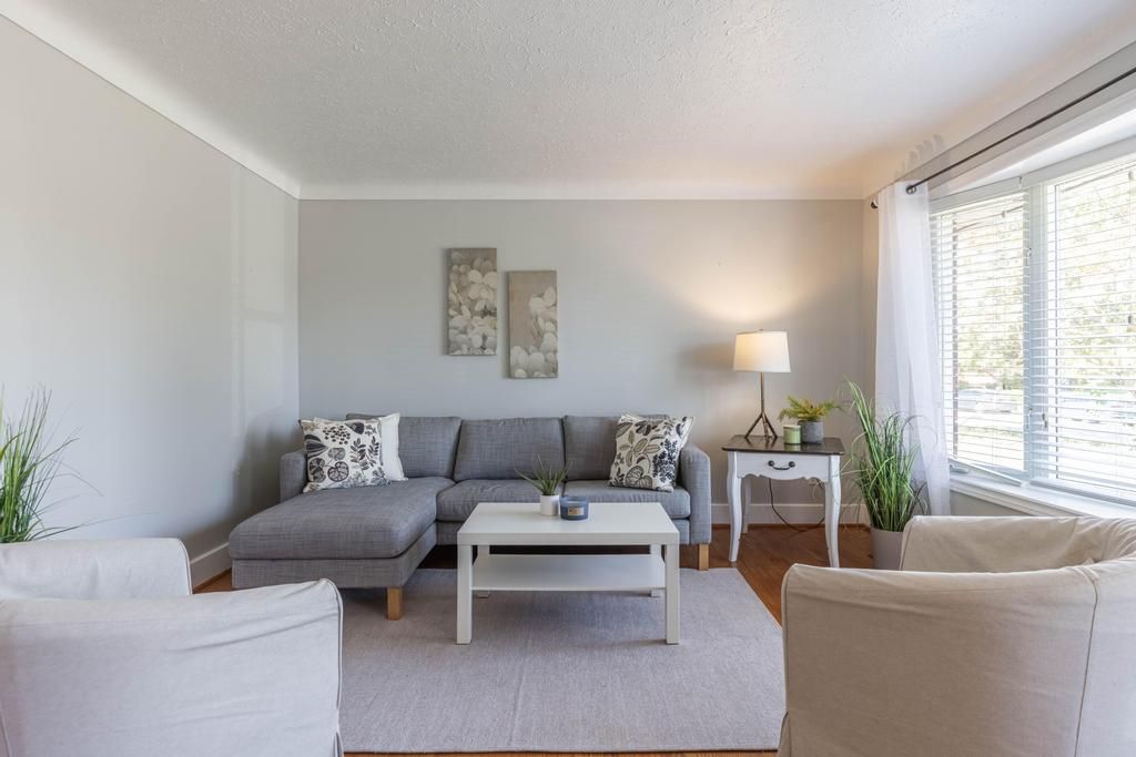 • Bright living room featuring a large window for natural light.