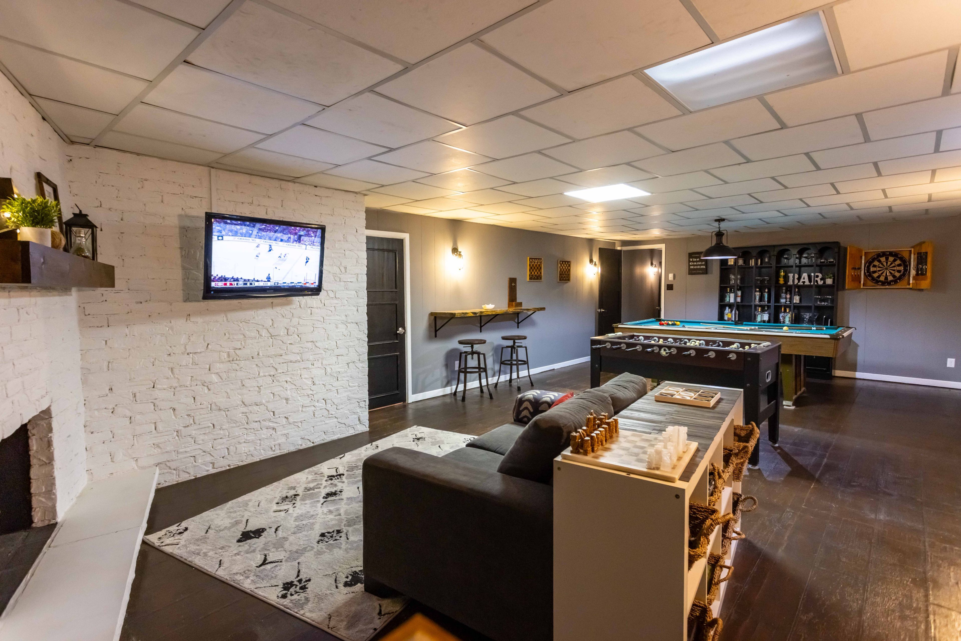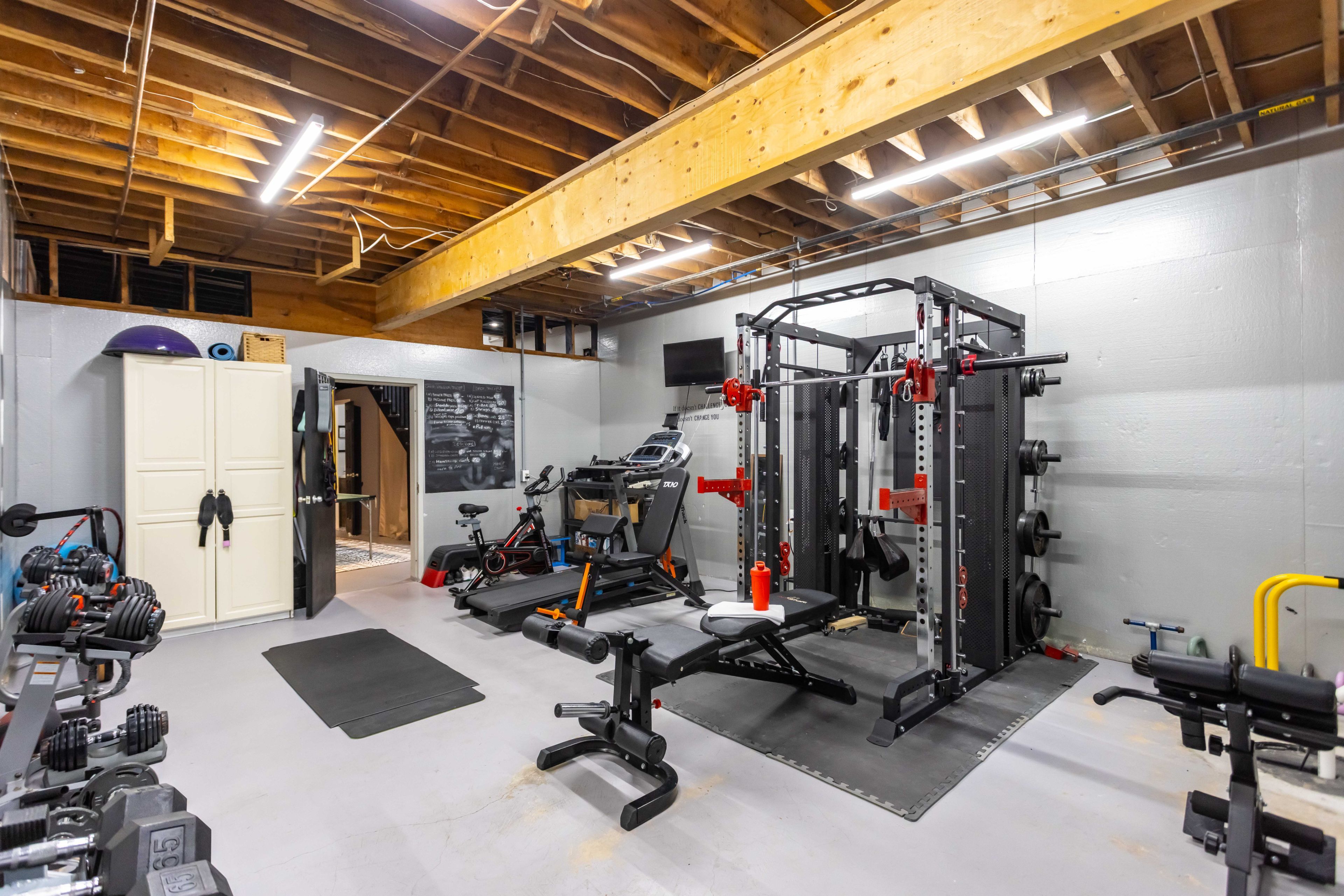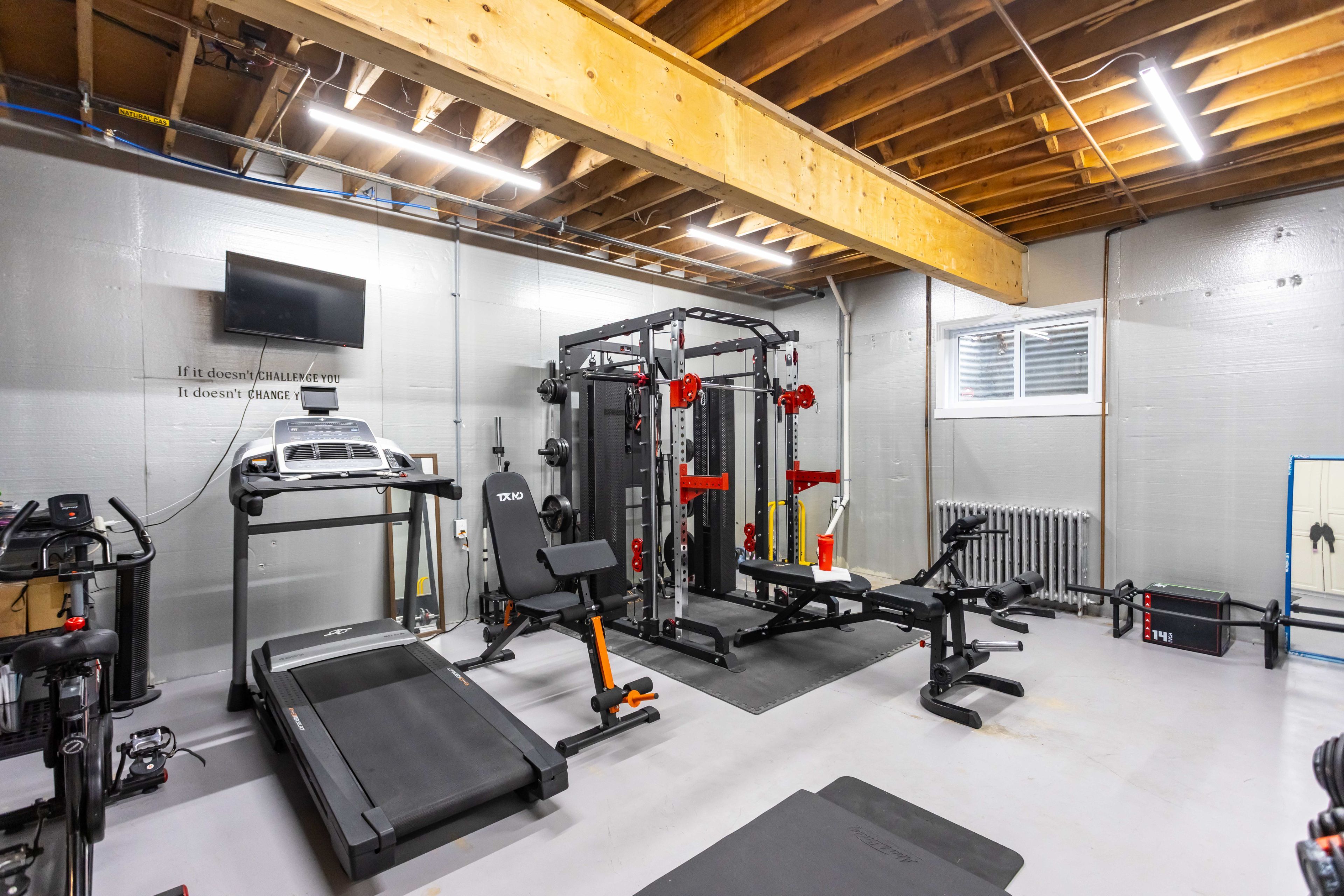 • Fully finished lower level with recreation room, offices, and gym adds versatility.