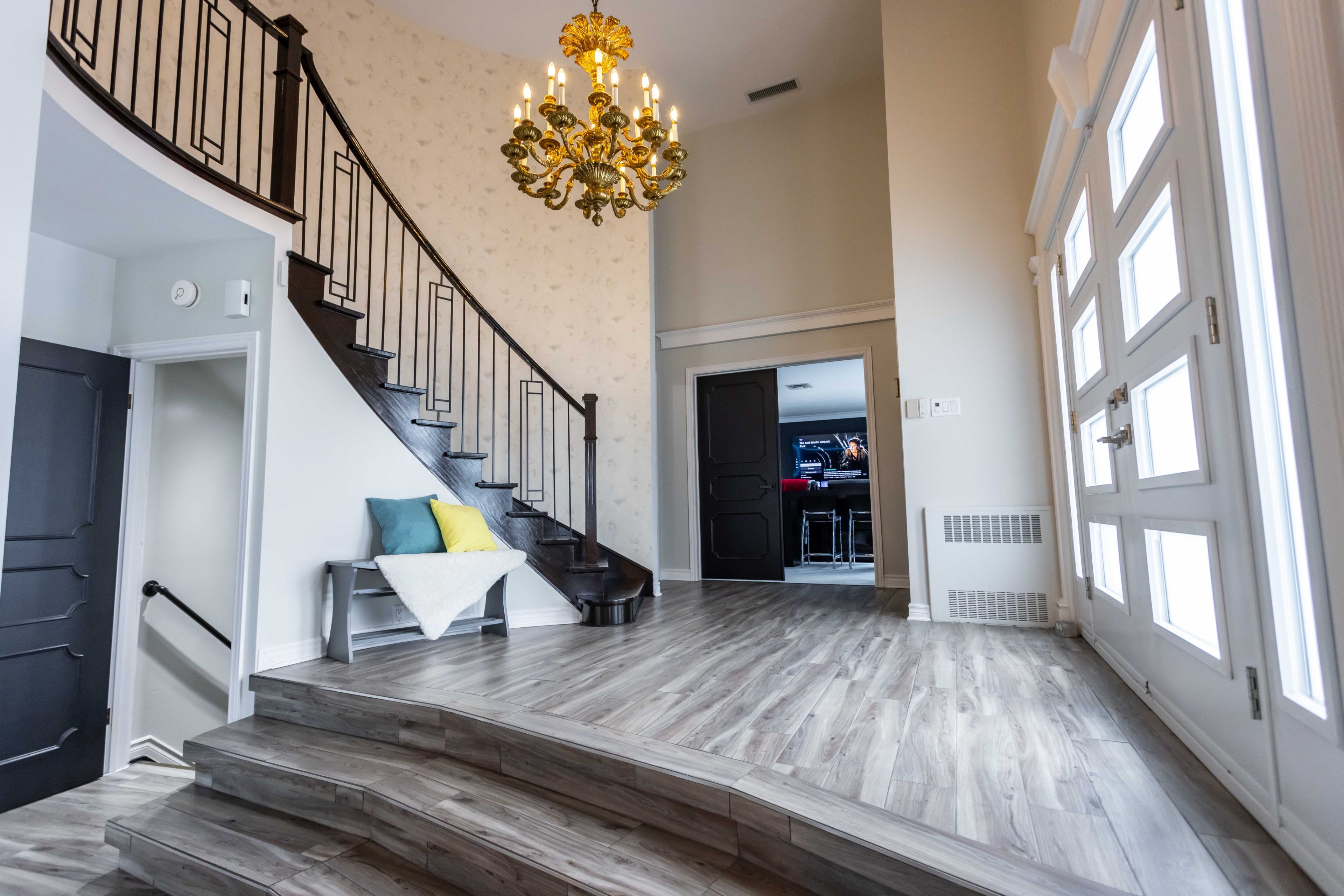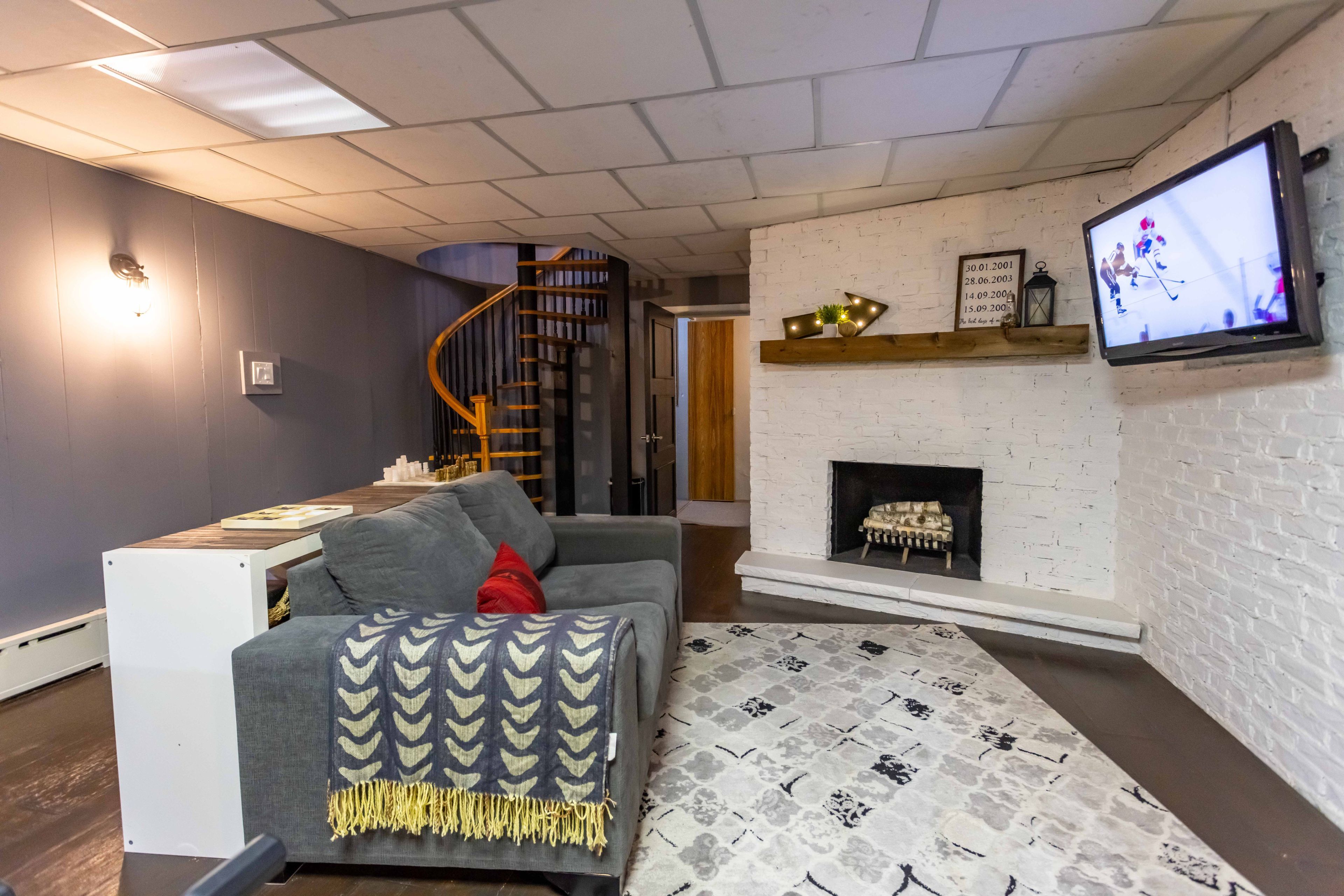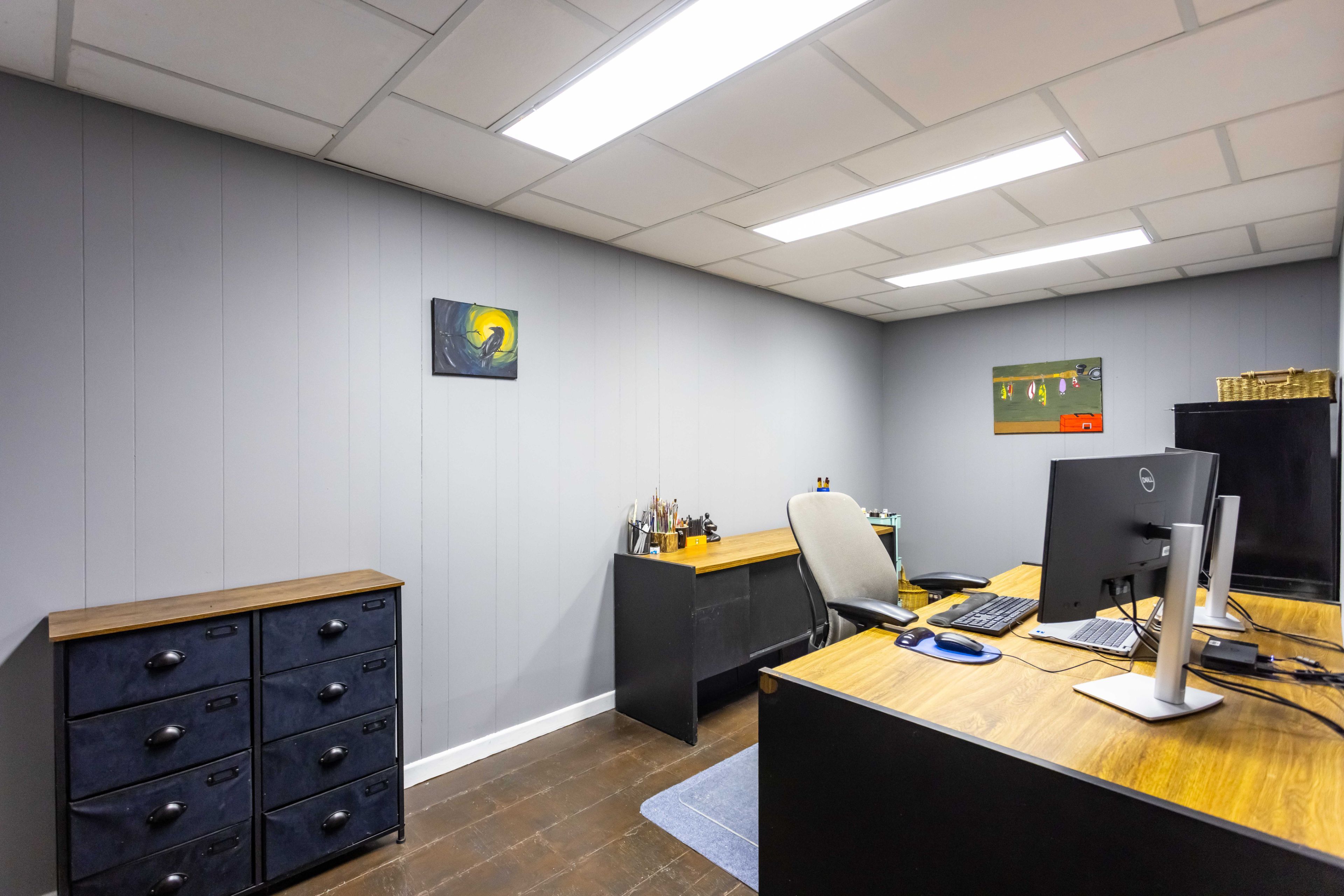 • Fully finished lower level with recreation room, offices, and gym adds versatility.