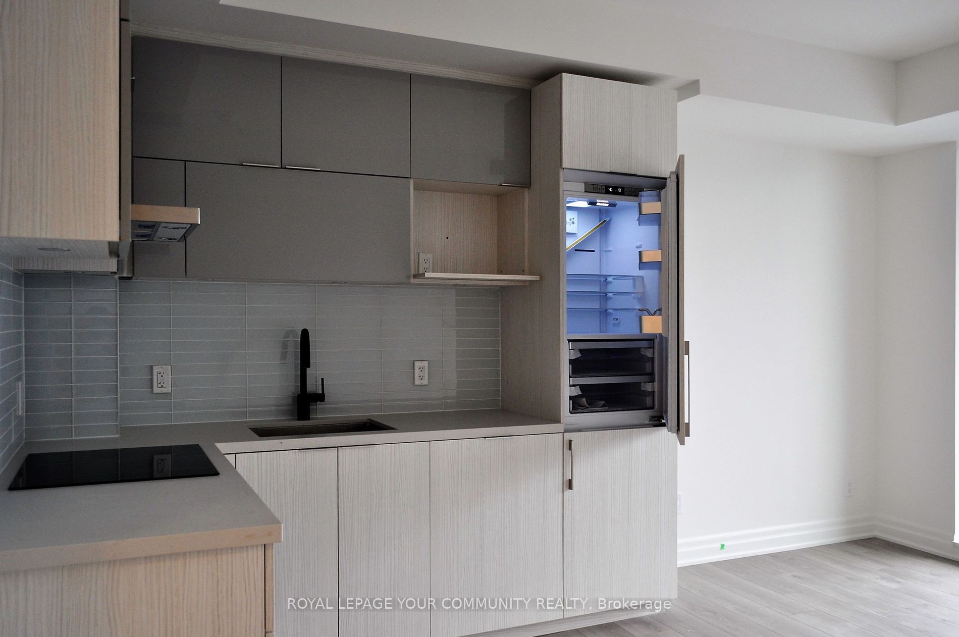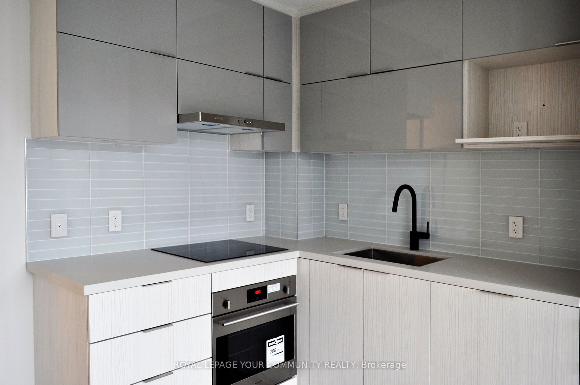 • Euro-style kitchen featuring quartz counters and integrated appliances.