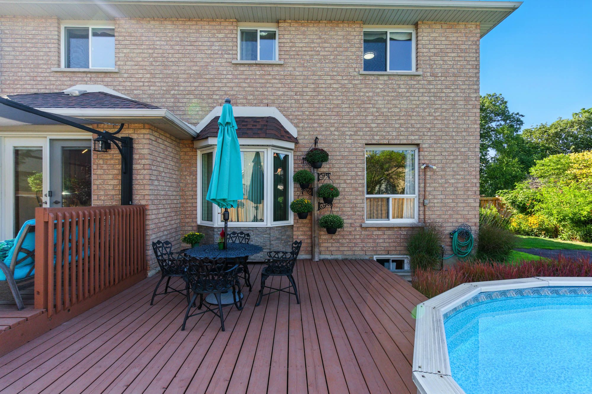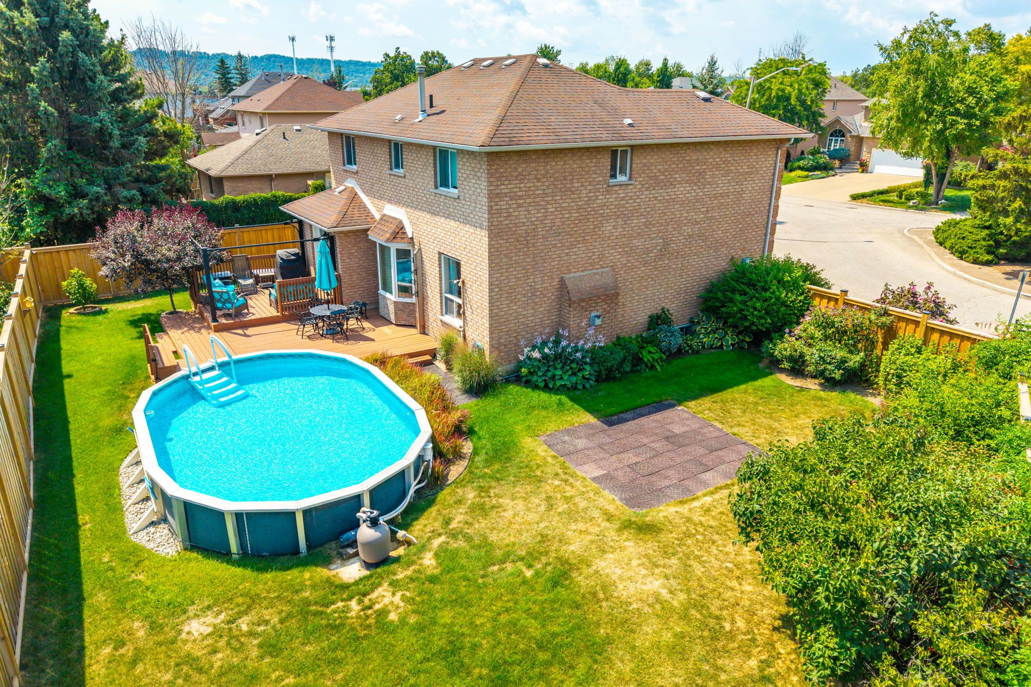 Rarely offered, instantly desired! This beautifully appointed 4+1 bedrm, 4-bath home is nestled on a sprawling park-like court lot at the end of a prestigious private cul-de-sac in the coveted community beach area. Ideally located just minutes from fifty point, marinas, shops, go transit & hwy access offering the perfect balance of tranquility & convenience. Perfect for first-time buyers, growing families, or multi-generational living, this warm and spacious home is thoughtfully designed to adapt to your needs at every stage. Move-in ready & full of charm, it boasts a bright welcoming foyer that opens into elegant formal spaces, where hardwood floors, large bay windows, and french doors enhance both style & comfort. With a separate living room and main floor family room, the layout offers exceptional flexibility - ideal for relaxed everyday living, entertaining guests, or creating distinct spaces for different generations under one roof. The custom cherrywood kitchen, located off the dining room, features granite countertops, a breakfast bar, built-in coffee station, cabinet lighting & glass door accents. Double doors from the kitchen lead to an impressive two-tier sundeck that overlooks a heated 24x16ft above-ground pool, and a fully fenced backyard with flowering gardens & trees, offering a private oasis for kids to play and adults to unwind or entertain. Upstairs, you'll find four generously sized bedrooms, including a bright primary suite with a walk-in closet & private ensuite. The additional bedrooms offer plenty of space for growing families, and/or home office. The finished basement adds incredible flexibility and value, with a large rec room, games area, bar, fifth bedroom with ensuite & walk-in closet, plus a dream workshop for hobbyists. Ideal for in-laws, older children, or visitors. With a family-friendly layout, great outdoor space, and the bonus of in-law potential, this home is a rare find that's ready to grow with you! **sq ft & room sizes approx.