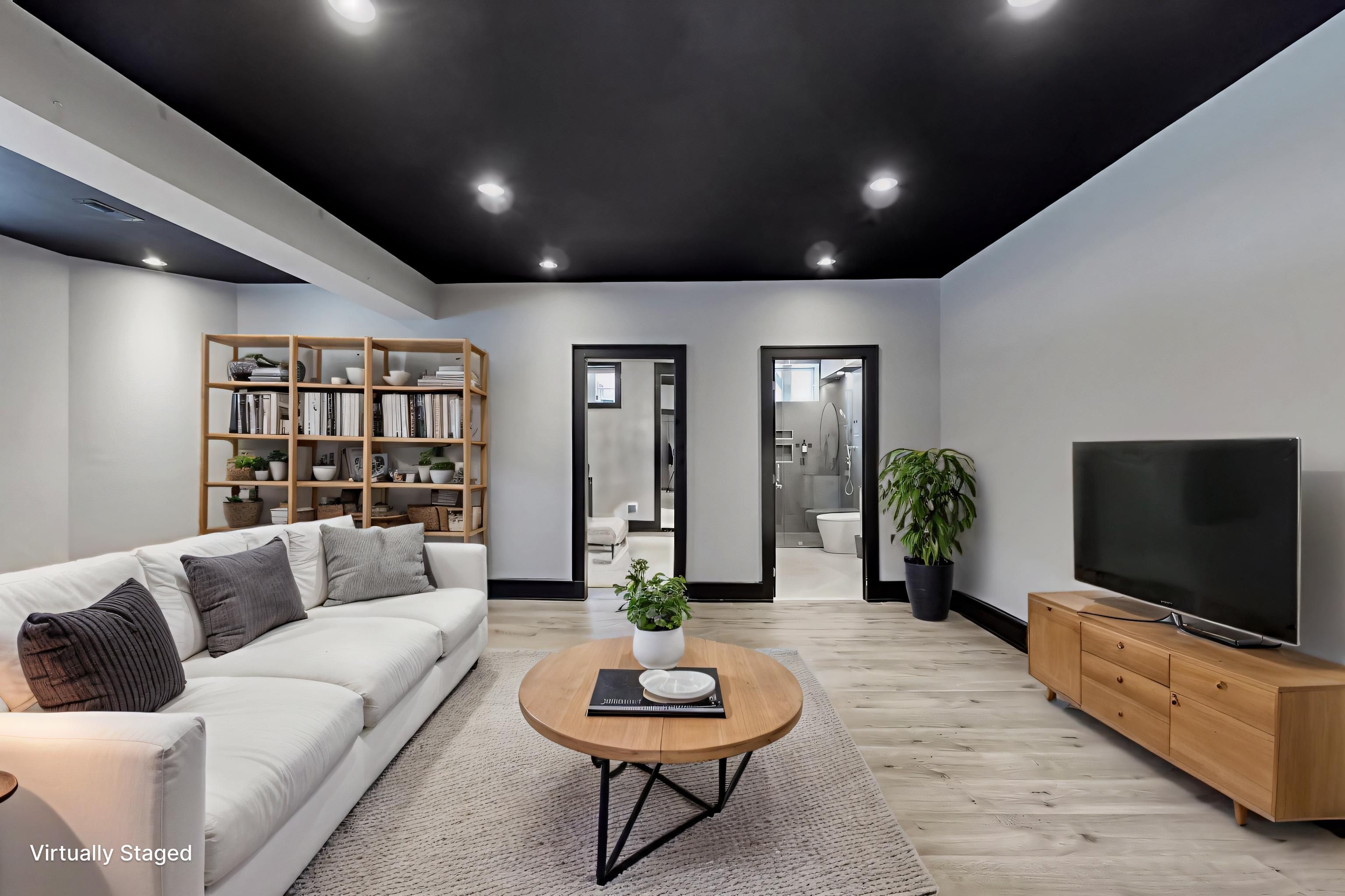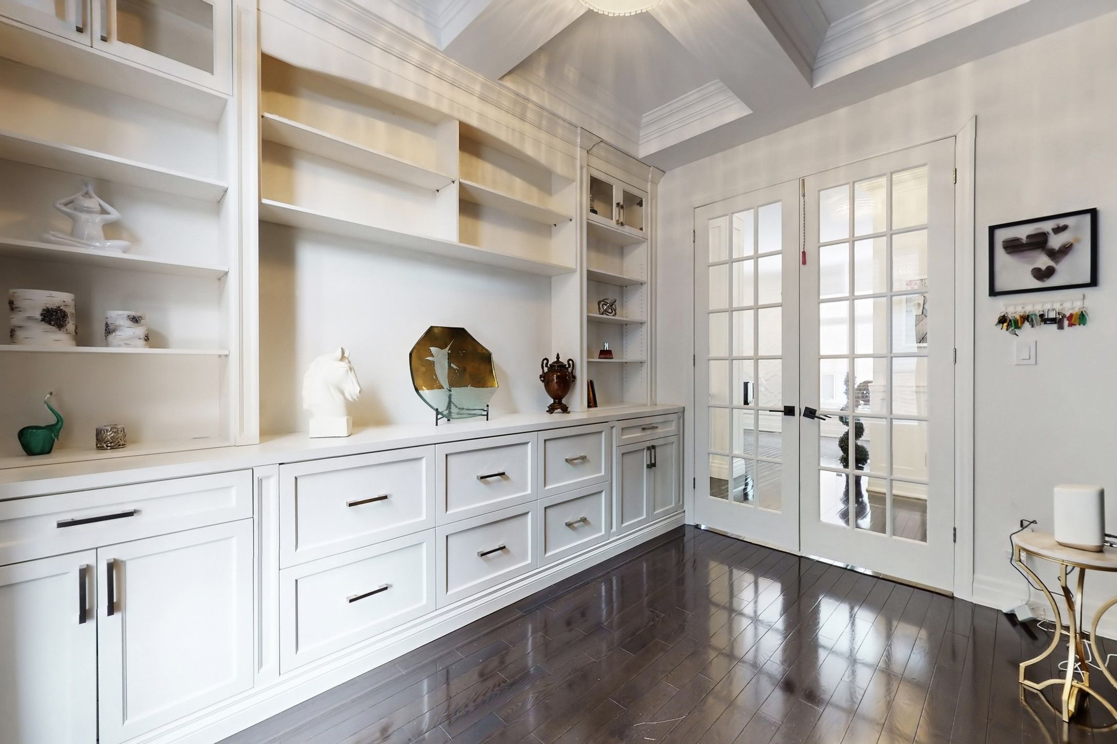 • Private library with custom cabinetry for an organized workspace.