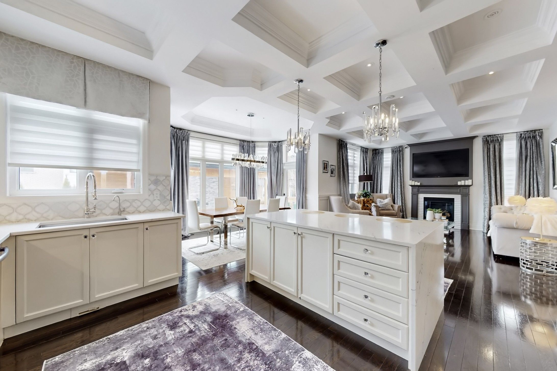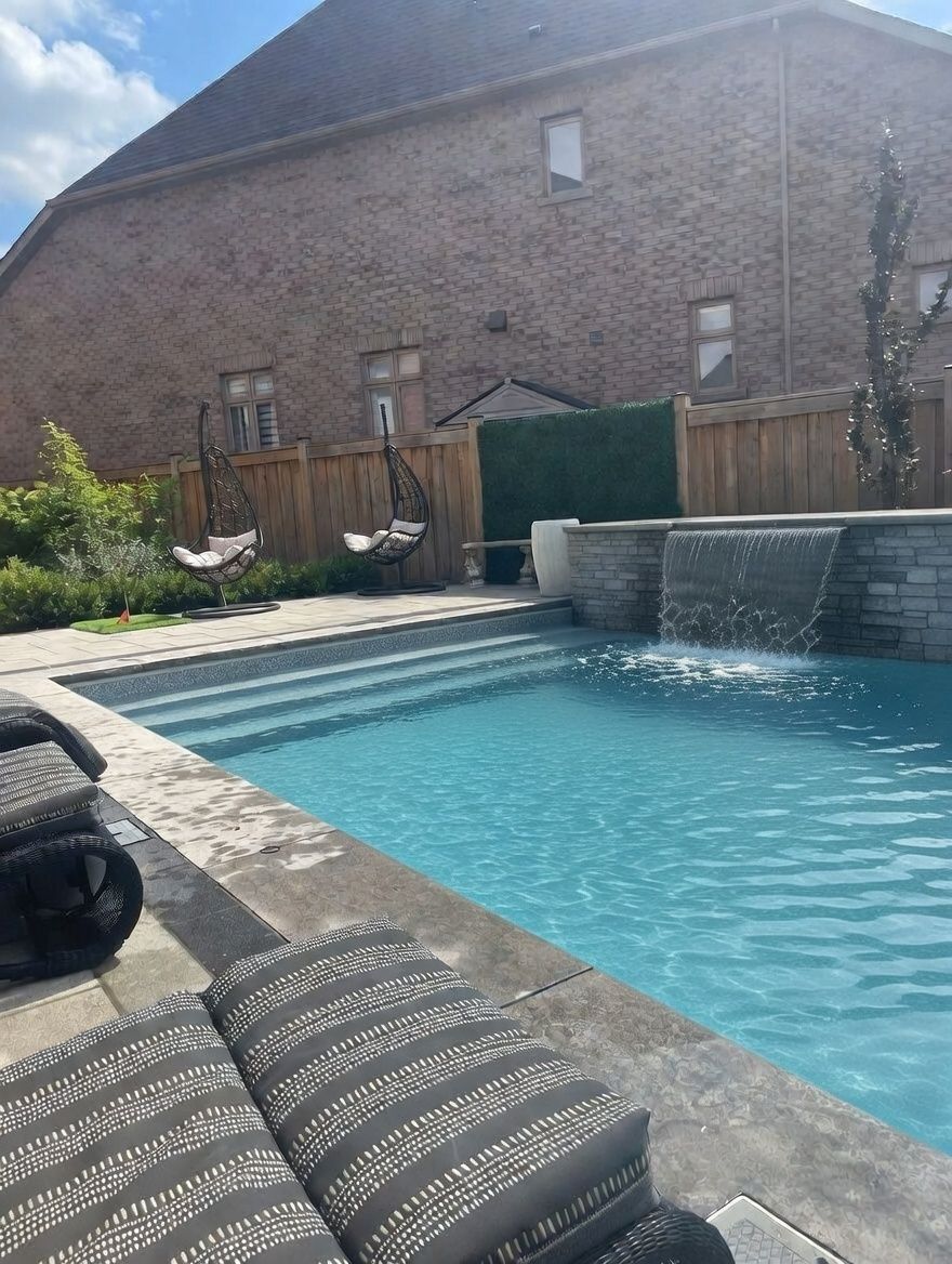 Discover the epitome of luxury living at 10 sim hill crescent, nestled in one of king city's most exclusive neighbourhoods. This stunning executive residence offers 3,964 square feet above grade, plus a fully finished basement, for a total of 6,264 square feet of sophisticated living space. The chef-inspired kitchen features a massive island with waterfall quartz counters, 10-foot waffled ceilings, abundant windows, butler's servery and walk-in pantry. Open to the family room with matching 10-foot waffled ceilings and gas fireplace. Main floor highlights include a private library with custom built-in cabinetry. A bonus extra-large family room between main and second levels boasts 12-foot ceilings and walkout to a private balcony. The luxurious primary bedroom showcases a custom boutique-style masterpiece of organization and elegance. Luxurious floor-to-ceiling glossy black cabinetry with mirrored panels and subtle led accent lighting creates a high-end showroom feel. Abundant open shelving displays handbags and accessories, while integrated hanging rods showcase designer pieces, and deep drawers store folded items and jewelry. The white marble island with built-in drawers serves as a stylish focal point while soft under-cabinet lighting enhances the sophisticated ambiance. The finished basement offers in-law suite potential with large recreation room, custom built-ins, exercise room and 3-pc bath. Outside, an oversized pie-shaped yard features a fully landscaped ultra-luxury pool with three waterfalls, built-in hot tub with spillover, automatic cover, automation panel, led lighting, plus a custom cabana with high-end built-in kitchen and sundeck. A rare opportunity to own a true showpiece in king city's prestigious enclave.