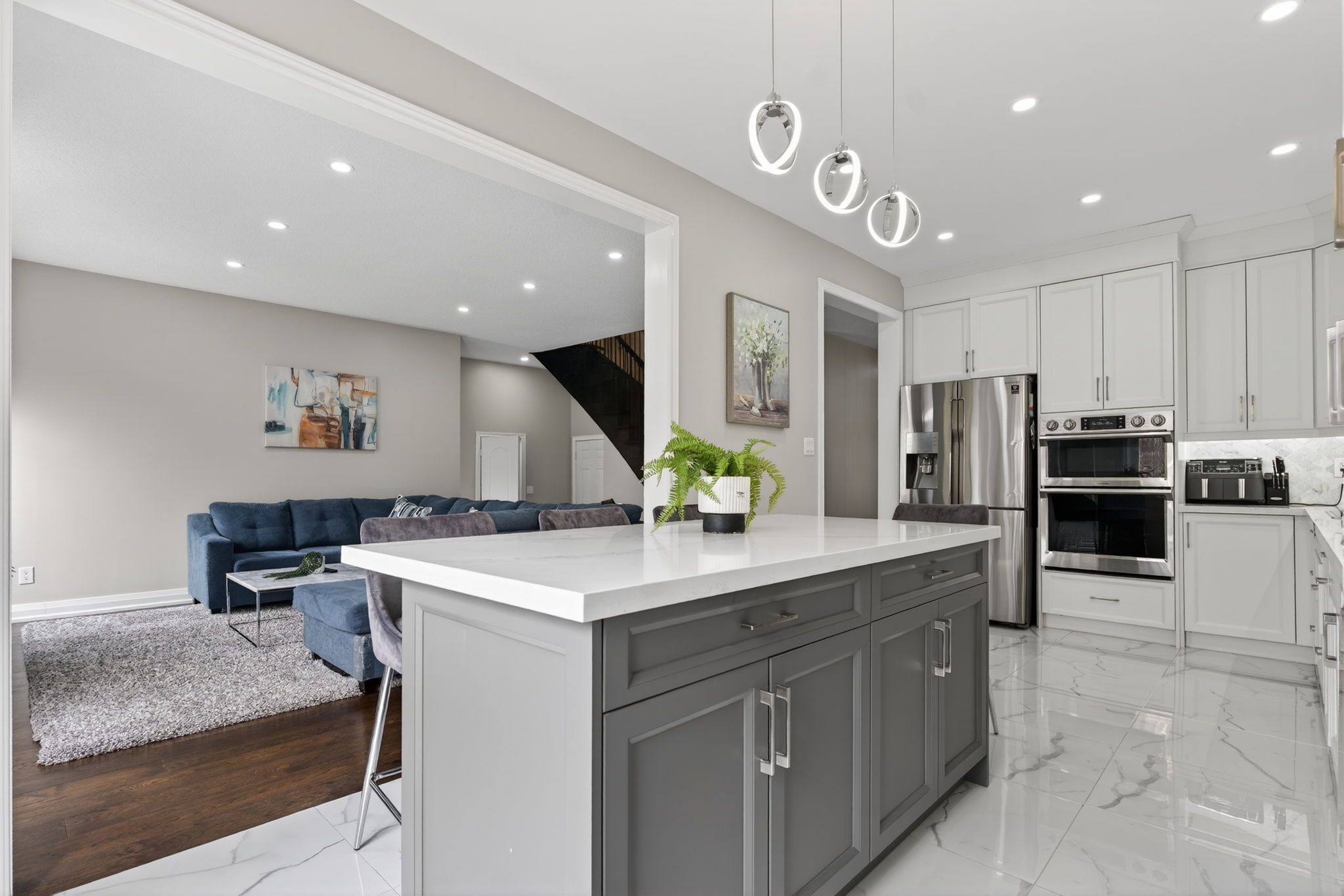 Almost $150k spent in renovations with legal 2 bedroom basement! This executive detached home is situated on a quiet, child-safe court on a premium pie-shaped ravine lot with a lookout basement, offering exceptional privacy and natural light. Stunning curb appeal with a brick and stone elevation. Featuring 4 spacious bedrooms and 3 full washrooms on the second level, along with a front balcony. Legal 2-bedroom basement apartment with it's own separate laundry, tasteful, modern finishes and large windows,previously rented for $2,200 per month. The main level offers a grand double door entry, updated staircase, flooring, laundry room, powder room and a beautifully upgraded eat-in kitchen with walk-out to a two-tier deck overlooking a private backyard, along with a family room with fireplace. Located on a highly desirable, family-friendly court-this is a rare turnkey opportunity on a premium ravine lot.