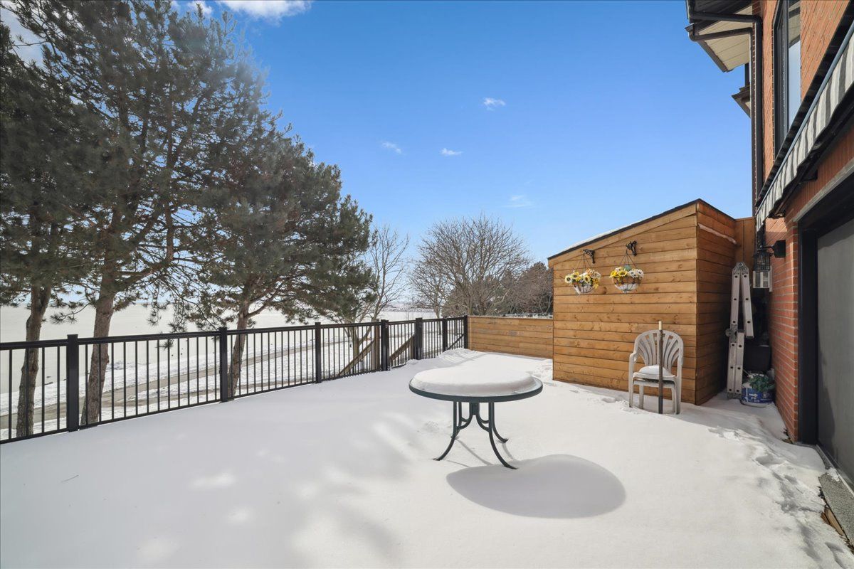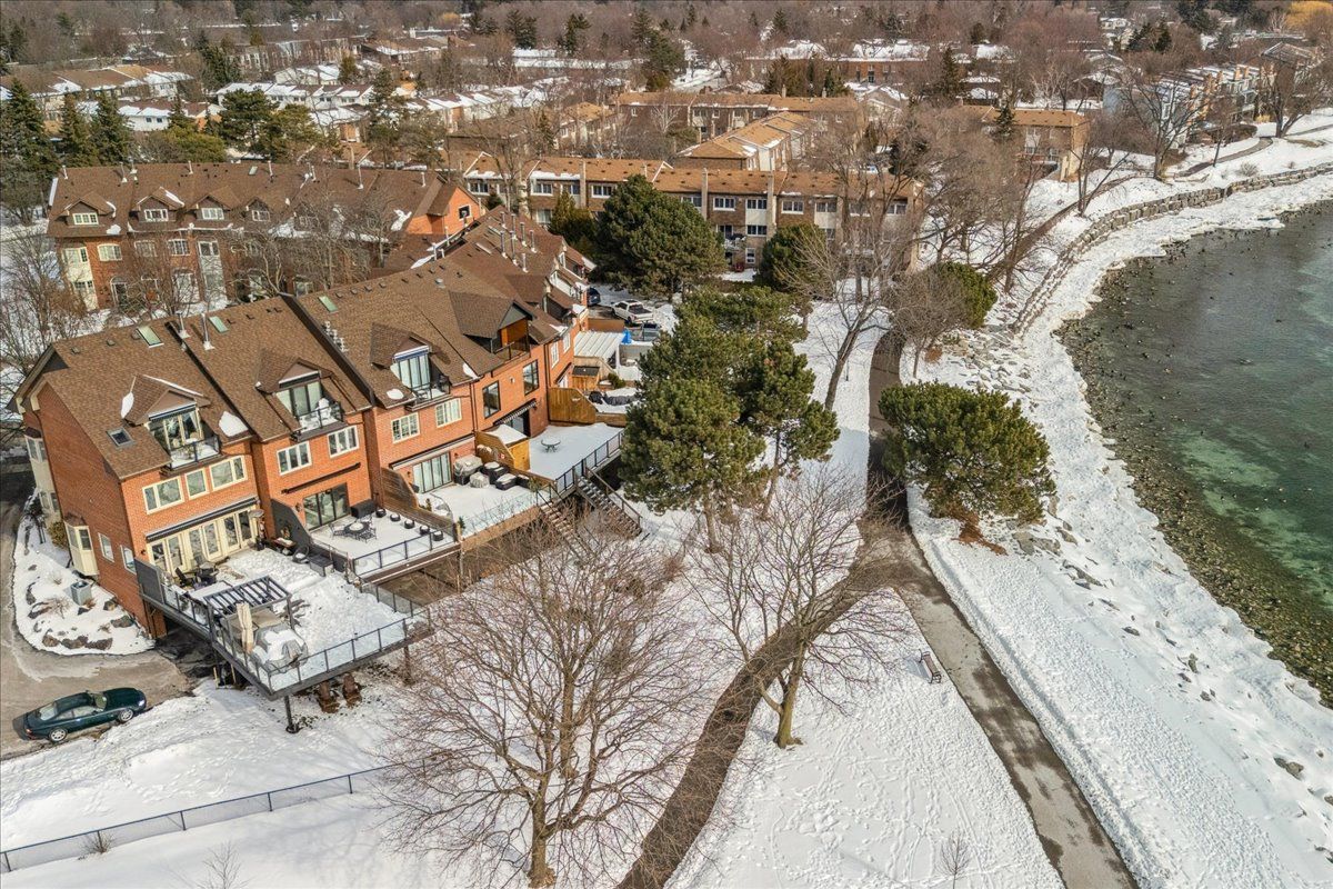 Rarely offered, true lakefront freehold townhome in prestigious bronte with unobstructed, panoramic views of lake ontario. One of only a select few waterfront residences in this exclusive enclave and seldom available, this exceptional home is offered for the first time and has been professionally renovated from the ground up, representing a complete rebuild with all-new systems, infrastructure, and bespoke designer finishes throughout. Thoughtfully reimagined with refined architectural detail, the residence showcases a dramatic custom staircase, sun-filled open-concept living spaces, and expansive windows that frame breathtaking lake views from multiple levels. Seamless indoor-outdoor flow creates an unparalleled waterfront living experience rarely available in townhome ownership. The designer kitchen features custom cabinetry and premium appliances, including a high-end stove with oven, range hood, microwave, dishwasher, and refrigerator, curated for elevated everyday living and elegant entertaining. Engineered hardwood flooring extends throughout, complemented by heated bathroom floors and three fireplaces, including two gas fireplaces and an electric fireplace in the private primary suite. The spa-inspired primary ensuite features a steam shower. The oversized family room offers flexibility for a third bedroom, with den or executive office. Two private waterfront decks, including an impressive 40-ft deck(approx) on the main and a fully covered deck on the third floor, provide exceptional outdoor living and spectacular sunset views. Located in one of oakville's most coveted waterfront communities with private tennis courts, just steps to bronte harbour, marina, waterfront trails, fine dining, and boutique shops. A truly rare turnkey lakefront offering.