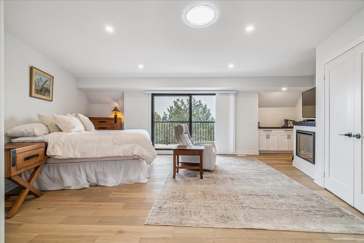Rarely offered, true lakefront freehold townhouse in prestigious bronte with unobstructed, panoramic views of lake ontario. One of only a select few waterfront residences in this exclusive enclave and seldom available, this exceptional townhouse is offered for the first time and has been professionally renovated from the ground up, representing a complete rebuild with all-new systems, infrastructure, and bespoke designer finishes throughout. Thoughtfully reimagined with refined architectural detail, the residence showcases a dramatic custom staircase, sun-filled open-concept living spaces, and expansive windows that frame breathtaking lake views from multiple levels. Seamless indoor-outdoor flow creates an unparalleled waterfront living experience rarely available in townhouse ownership. The designer kitchen features custom cabinetry and premium appliances, including a high-end stove with oven, range hood, microwave, dishwasher, and refrigerator, curated for elevated everyday living and elegant entertaining. Engineered hardwood flooring extends throughout, complemented by heated bathroom floors and three fireplaces, including two gas fireplaces and an electric fireplace in the private primary suite. The spa-inspired primary ensuite features a steam shower. The third bedroom offers flexibility to be a family room (presently used as one). Basement office/den has multiple uses. Two private waterfront decks, including an impressive 40-ft deck(approx) on the main and a fully covered one on the third floor, provide exceptional outdoor living and spectacular sunset views. Located in one of oakville's most coveted waterfront communities with private tennis courts, just steps to bronte harbour, marina, waterfront trails, fine dining, and boutique shops. A truly rare turnkey lakefront offering.