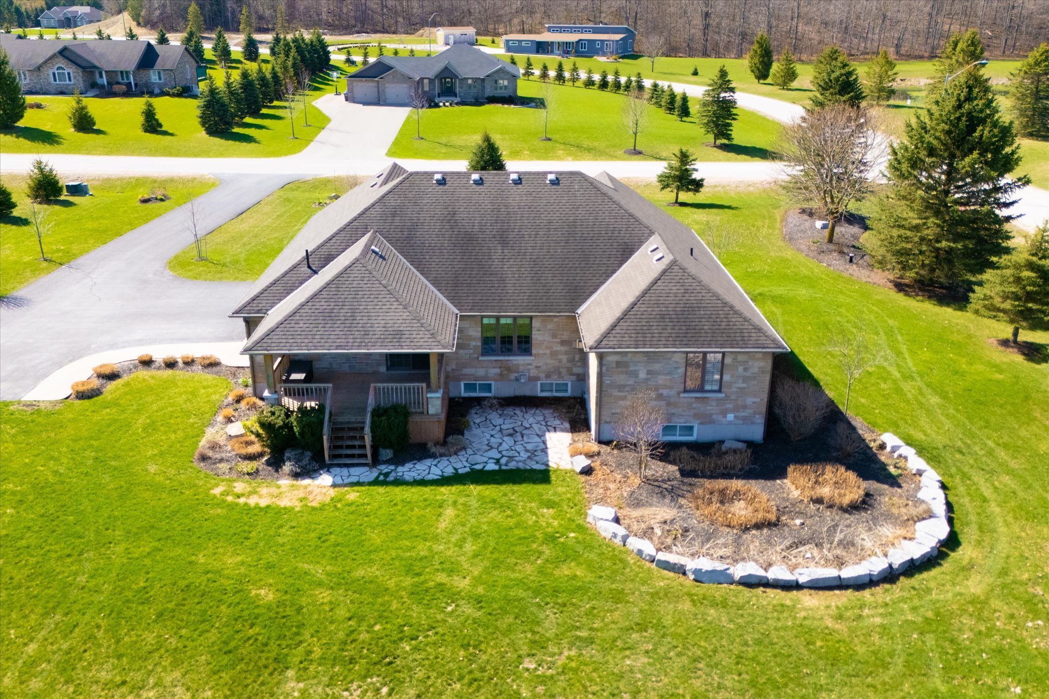 See for yourself. This 1800 square foot bungalow shows aaa. Located in a rural subdivision complete with gas & high speed fibre optic. Home boasts 3 + 2 bedrooms, 3 baths including ensuite. Gas fireplace on both levels. Covered deck at the back. Some of the upgrades are zero entry shower, chairlift to the basement, wheelchair lift in the garage, modified cabinets, grab bars, lots of led lighting, as well as a automatic standby generator. Open house saturday april 25 from 10-12 noon.
