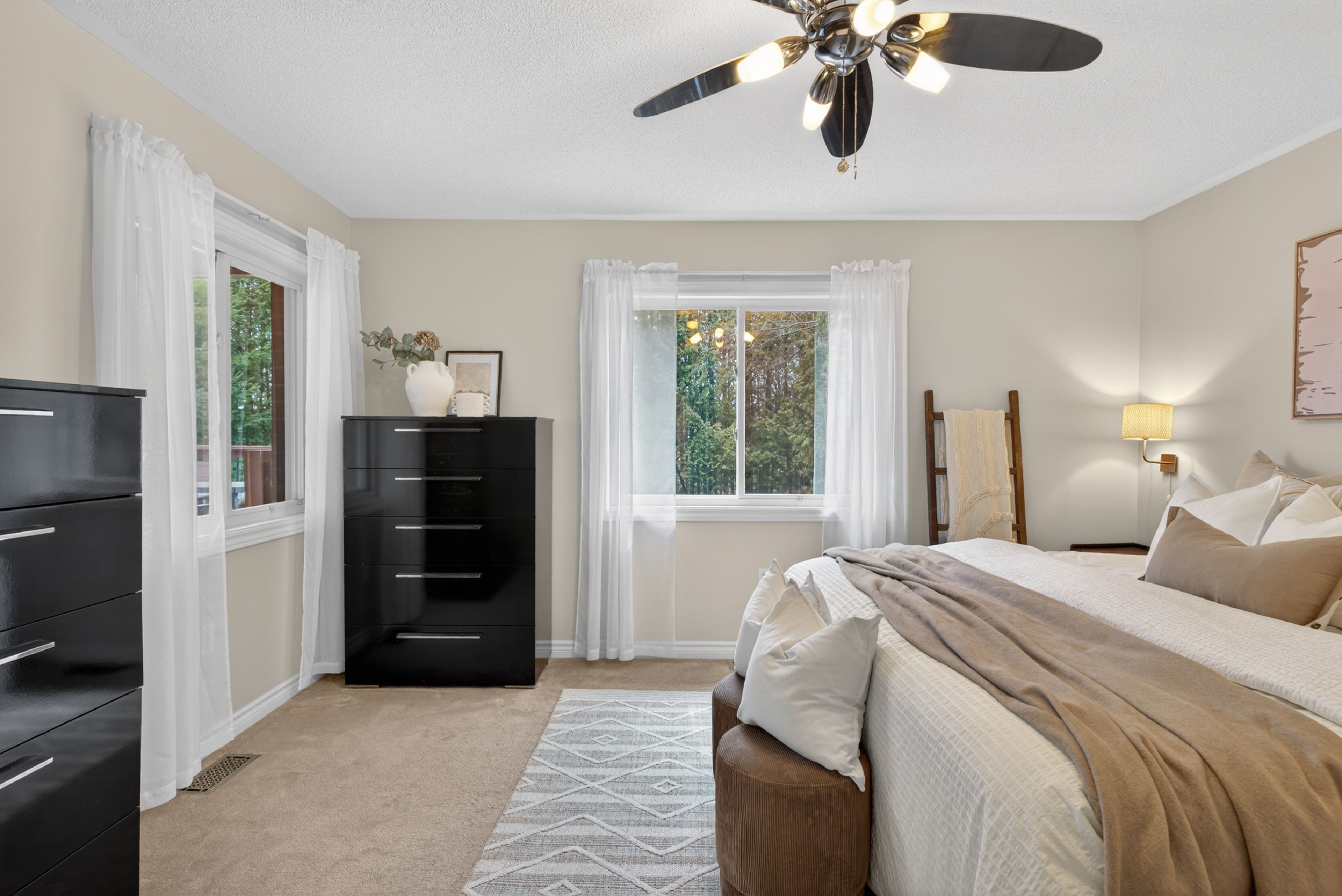 Welcome to your dream raised bungalow in the heart of omemee! Ideally located steps from the trans canada trail and just minutes to amenities, this peaceful kawartha lakes community is perfectly situated between lindsay and peterborough. Arrive on desirable springbank road, where pride of ownership shines through manicured lawns and charming bungalows. This home features a large driveway with parking for 4 vehicles and a 2-car garage complete with gas heater and additional 240-amp outlet. Inside, an inviting foyer welcomes you home with a rare main floor bedroom on the ground floor-perfect for guests, a home office, or flex space. Just a few steps up, enjoy a bright living room with a cozy gas fireplace, ideal for family gatherings. Off the living room, a convenient mudroom with washer/dryer provides direct garage access. The open-concept kitchen offers stainless steel appliances, ample cabinetry, and overlooks the sun-filled dining area. Walk out from the dining room to your deck-perfect for bbqs, morning coffee, or relaxing in your hot tub while enjoying the spacious backyard. Bonus outdoor features include a fire pit, and natural gas bbq. The main level also includes a 4-piece bath, a large secondary bedroom, and a spacious primary suite with walk-in closet and 4-piece ensuite with corner tub. The partially finished basement offers above-grade windows, sauna, a bedroom, and plenty of storage space-ideal for growing families. Updates are as follows: shingles (approx. 2024), water treatment & pump (approx. 2025), flooring (approx. 2022) and so much more!