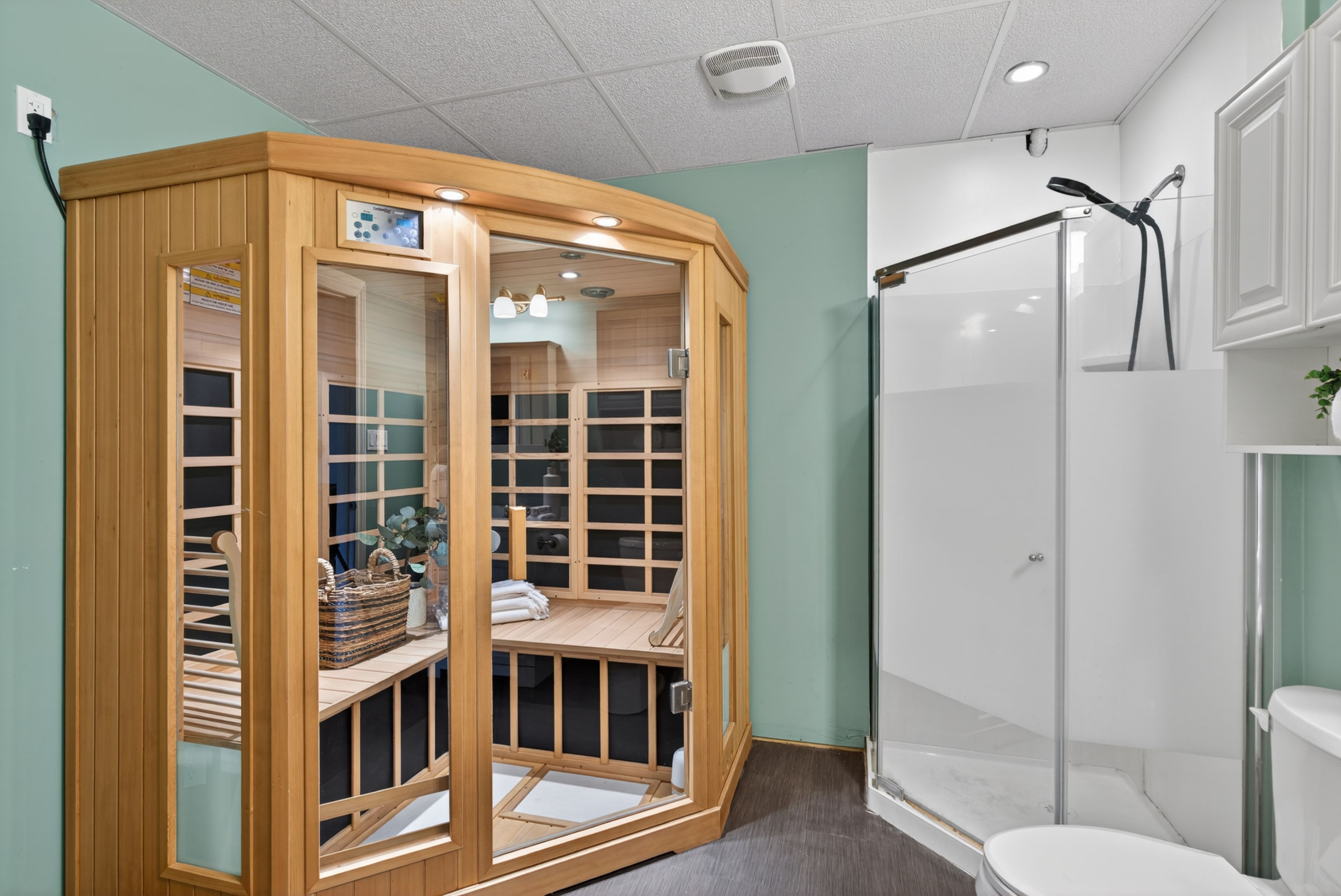 • Partially finished basement with sauna, storage, and additional bedroom.