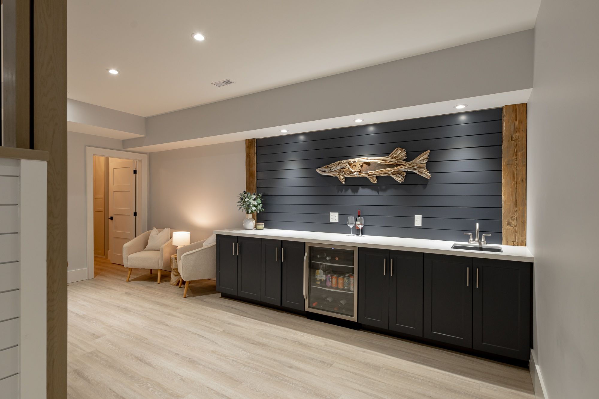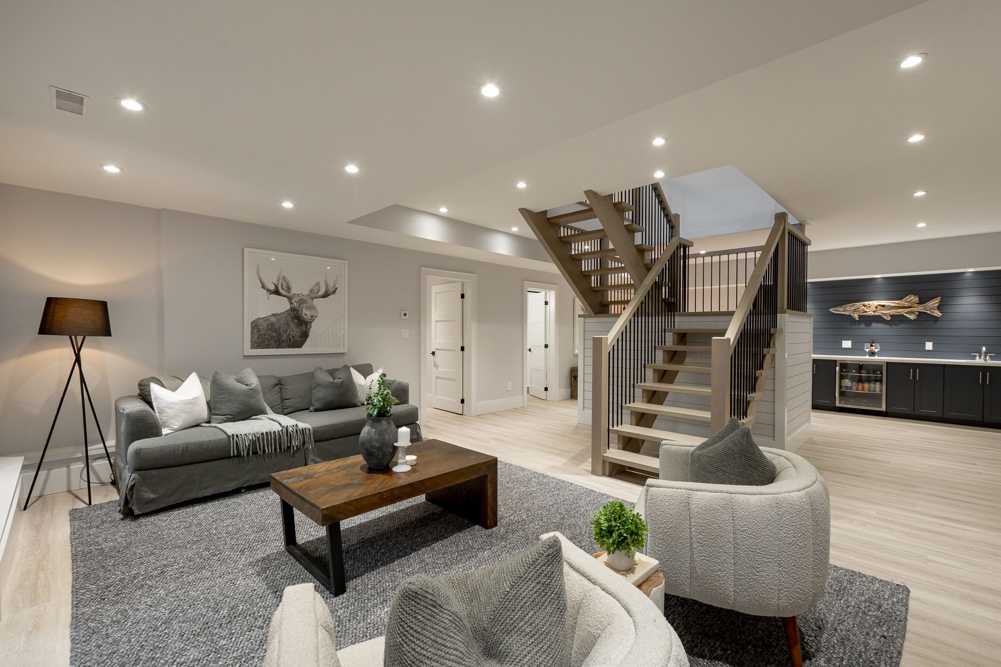 • Finished walkout basement with cozy rec room and bar area.