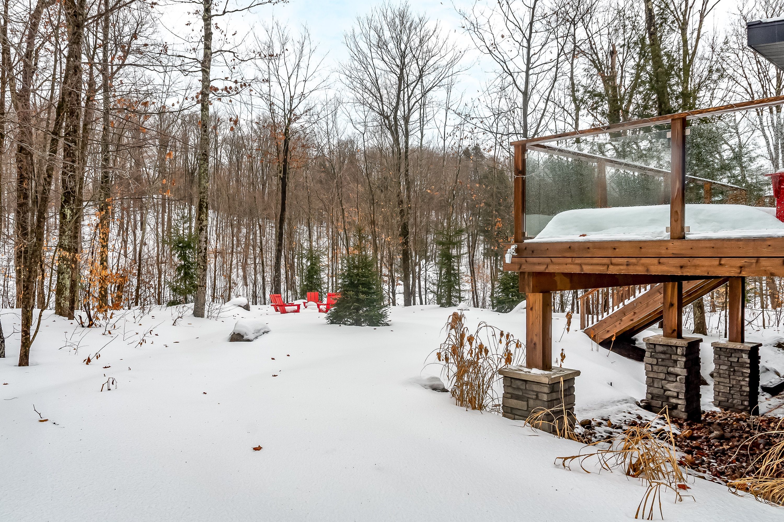 Built in 2022 by prestigious mcewan homes, this impressive 5-bed, 3. 5-bath bungalow with a finished walkout basement offers an exceptional blend of luxury, comfort, & functionality. A stylish covered porch spans the front of the home, leading into a spacious foyer with a large closet & convenient powder room nearby. The open-concept living, dining, & kitchen areas are ideal for both daily living & entertaining, featuring a chef's kitchen with wall oven, natural gas countertop range, pot filler tap, & an expansive island with seating. Sliding doors extend the living space to a screened-in muskoka room & large rear deck. Back inside, the living room is anchored by a beautiful natural gas fireplace that adds warmth & charm. The primary suite offers a peaceful retreat with a 4-pc ensuite featuring a double-sink vanity, glass shower, & heated floors, plus private sliding doors leading onto the rear deck. Two additional main-floor bedrooms share a bright 4-pc bath with heated flooring. A good-sized laundry room with sink complete this level. The finished walkout basement extends the living space with a cozy rec room featuring a natural gas fireplace & barnboard-style feature wall, a large bar area with beverage fridge & sink, & 2 more guest bedrooms. One enjoys ensuite privileges to a 4-pc bath with double vanity & glass shower. Step through sliding doors to a hot tub, where you can unwind after a day on the course, & gather around the firepit beyond for evenings under the stars. Backing onto the scenic deerhurst highlands golf course, this property captures the best of muskoka living. A detached single-car garage with a heat pump provides year-round comfort. On full municipal services including natural gas, water, & sewer, with curbside waste collection. Located just minutes from golf, skiing, & spas, it offers a lifestyle, where every season brings new ways to make lasting memories in the heart of muskoka.