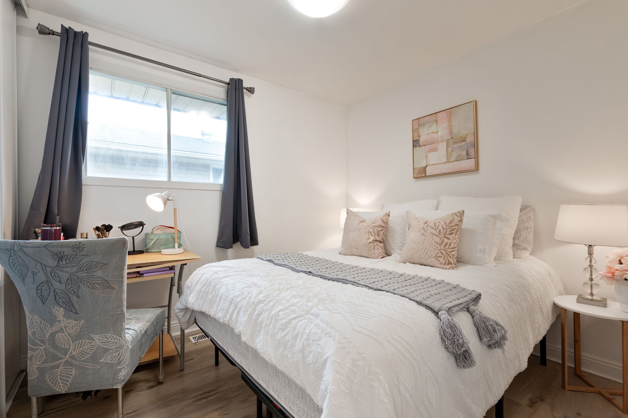 Welcome to this charming south london gem, tucked on a beautiful corner lot with a private, low-maintenance yard! You're greeted by lovely landscaping and a cozy front porch, perfect for enjoying your morning coffee. Step inside to a bright and airy main level featuring brand new luxury vinyl plank flooring and a refreshed kitchen with plenty of cabinetry and counter space. This level also offers 3 bedrooms, including one with walk-out patio doors, plus a stylish 3-piece bath with walk-in shower. The fully finished lower level expands your living space with a spacious rec room, versatile den (ideal for a home office, hobby room, or guest space), a second full 3pc bath with brand new shower and convenient laundry/storage. Additional highlights include a double driveway with side door access. Updates include: furnace and a/c (approx. 2012), and roof (approx. 2013), fresh paint, brand new vinyl plank flooring, lower shower (june 2025), closet doors, deck, and more. All in a fantastic location with walking distance to white oaks mall, the library, parks, public transit, restaurants and more, with quick access to the 401, 402, costco, and all your go to shopping. A great opportunity for first-time buyers, downsizers, or investors alike!