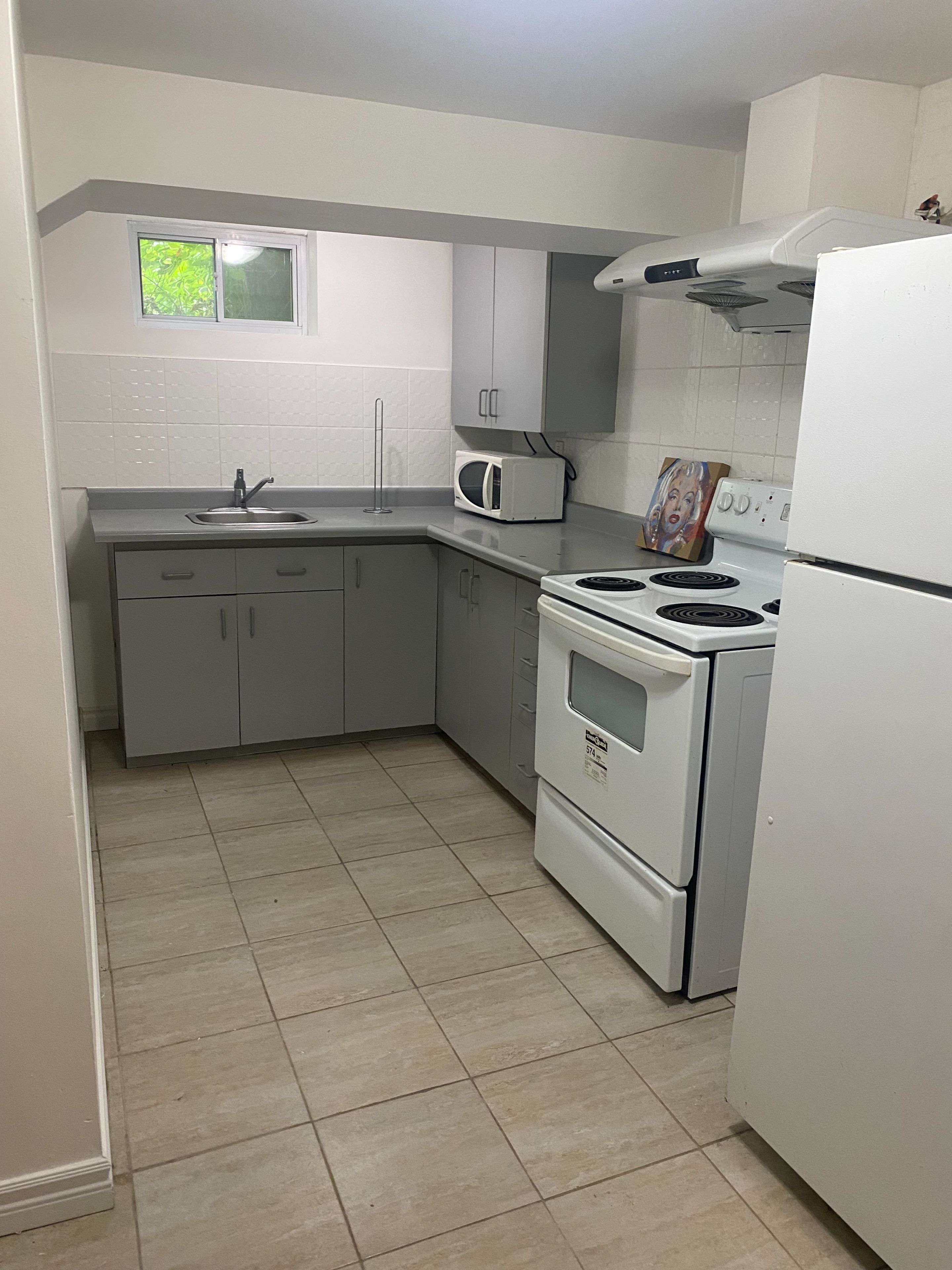 Beautifully renovated 3-bedroom basement suite in a desirable and convenient location. This spacious and well-maintained apartment offers a bright, open-concept layout with a brand new modern kitchen, stylish finishes, and abundant natural light throughout. Recent upgrades include new laminate flooring, fresh paint, updated bathroom counter and shower, and new stove. Enjoy access to large front and rear yards, perfect for outdoor relaxation. Self-contained laundry room for added convenience. Ideally located close to transit, parks, schools, shopping, and the scenic scarborough bluffs. Tenant responsible for 35% of utilities.