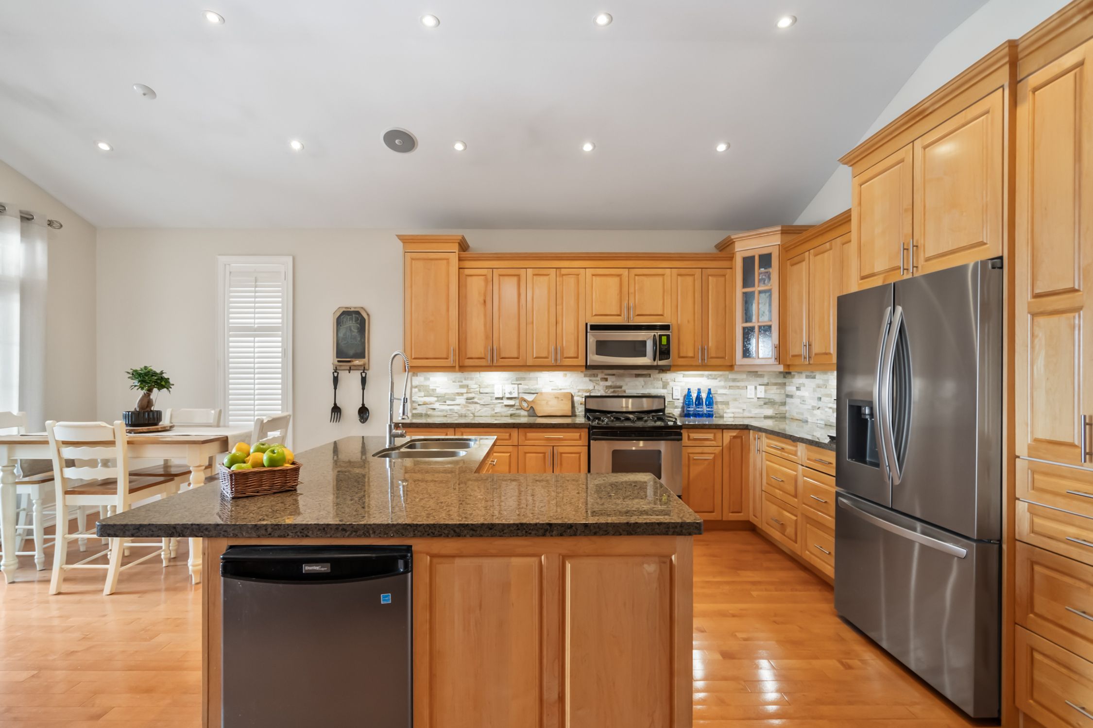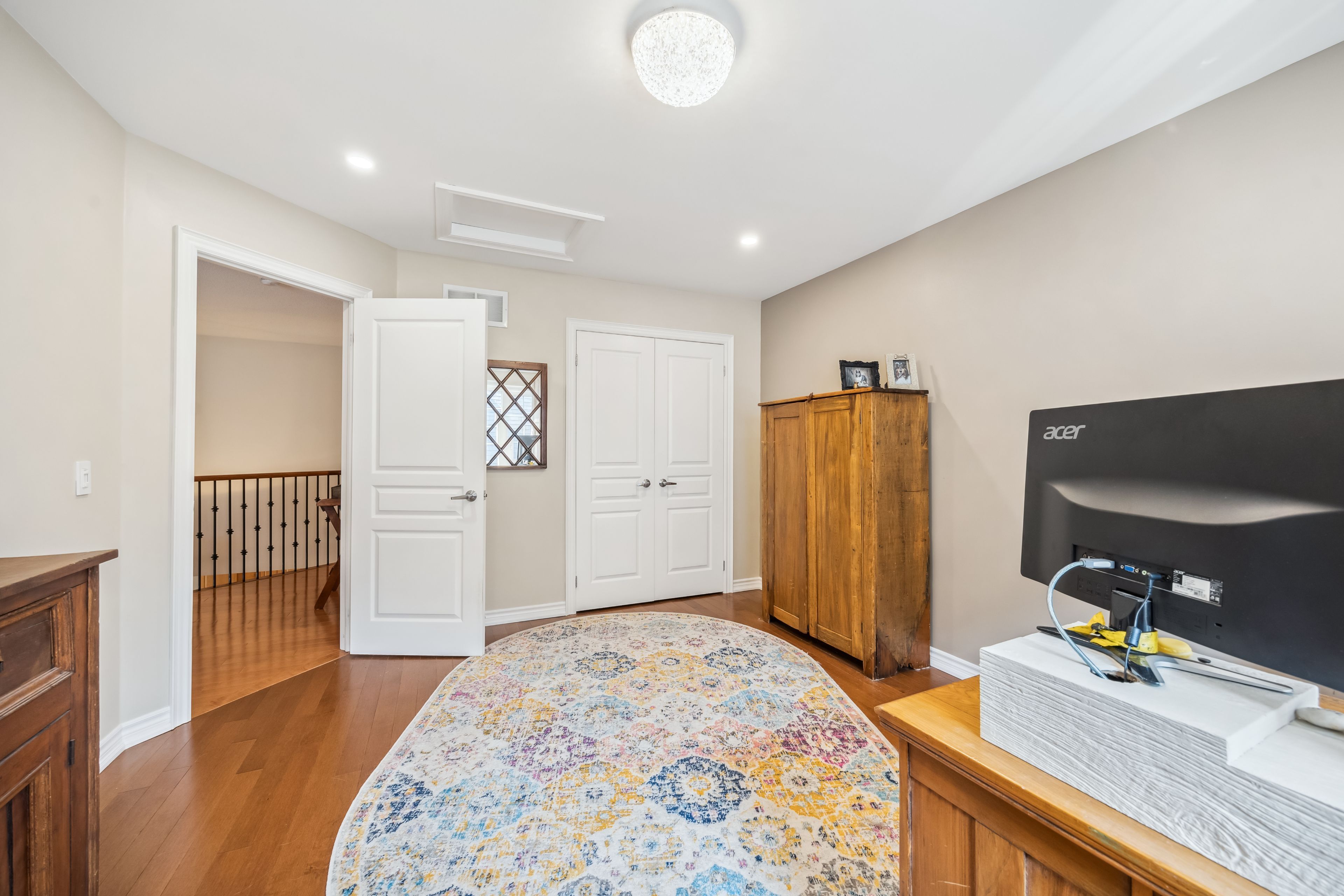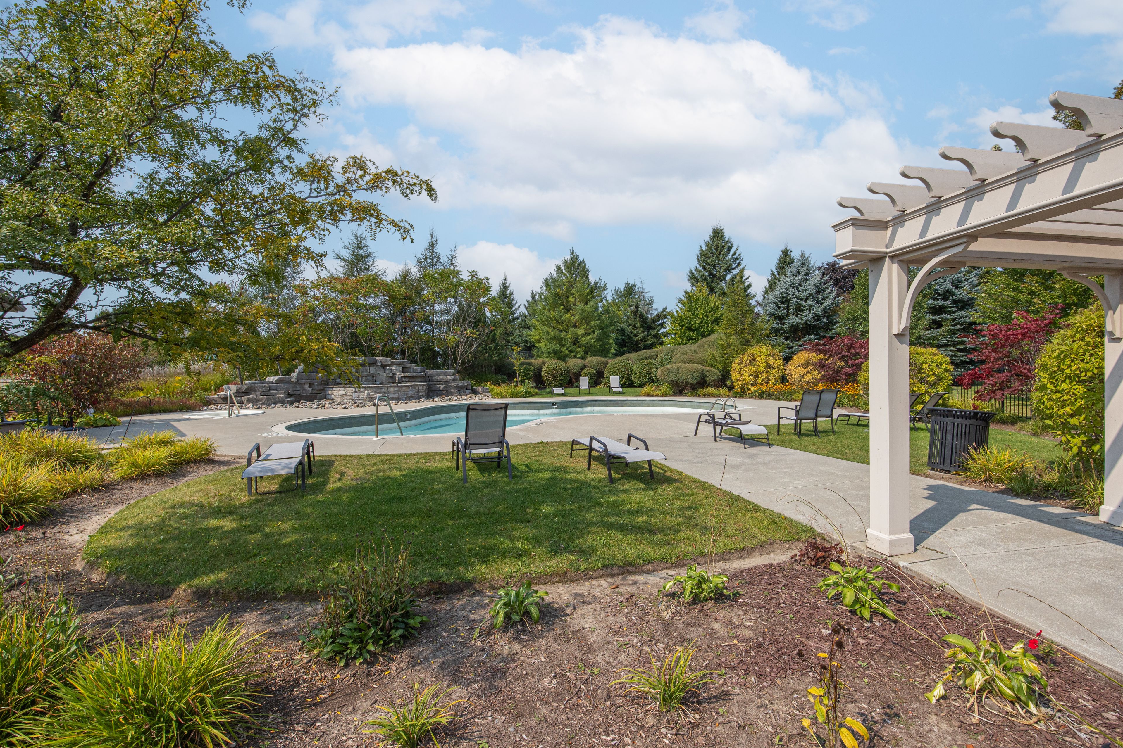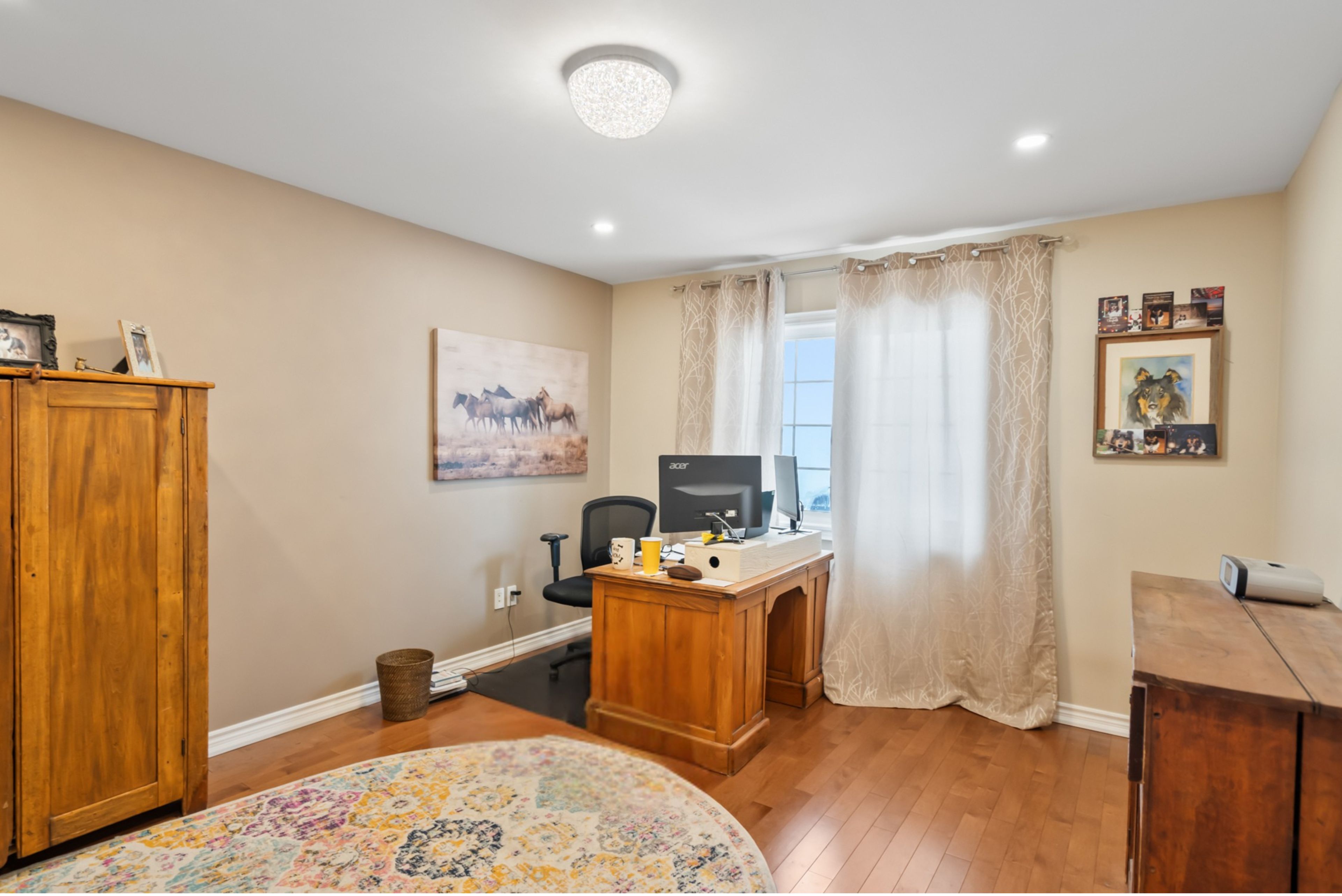 This 2,827 sq. Ft (per mpac) 3-bedroom bungaloft in the gated emerald hills golf course course community offers low-maintenance living with condo fees of $982. 43/month, covering water, sewage, community snow removal and access to the clubhouse, pool, hot tub, sauna, tennis courts, exercise room, meeting room, party room with kitchen, and outdoor children's playground and more! The exterior features an appealing, landscaped front entry with decorative double glass doors, a transom window, and a brick-and-stone facade with stucco accents. It also includes an irrigation system, powder-coated steel fully fenced yard, a large raised deck, and a double car garage. Inside, the main floor boasts a spacious foyer and 11' ceilings. The formal living room features a bayed window wall, flooding the space with natural light. Hardwood floors, california-style shutters, and extended height interior doors enhance the main living areas. The dining room enjoys a large window, while the kitchen offers maple cabinetry, granite countertops, stainless steel appliances, including a new fridge (2024). The breakfast area has a garden door leading to the deck, and the family room includes a gas fireplace, pot lights, and a large window overlooking the yard. The spacious principal bedroom has hardwood flooring, a tray ceiling, large windows, two walk-in closets with custom organizers, a seating area, and access to the deck. The ensuite includes a soaker tub, shower, and heated floors. Additionally, there is a second bedroom, a 4-piece bathroom, and a main floor laundry room with direct garage access. Upstairs, a grand curved staircase leads to the loft bonus room overlooking the main floor. The third bedroom features a large window and closet, and a 4-piece bath completes the upper level. Other: irrigation system (water incl in fees), fridge, dryer and ac 2024, roof approx 5 years, family room and principal bedroom windows replaced, furnace 2018.