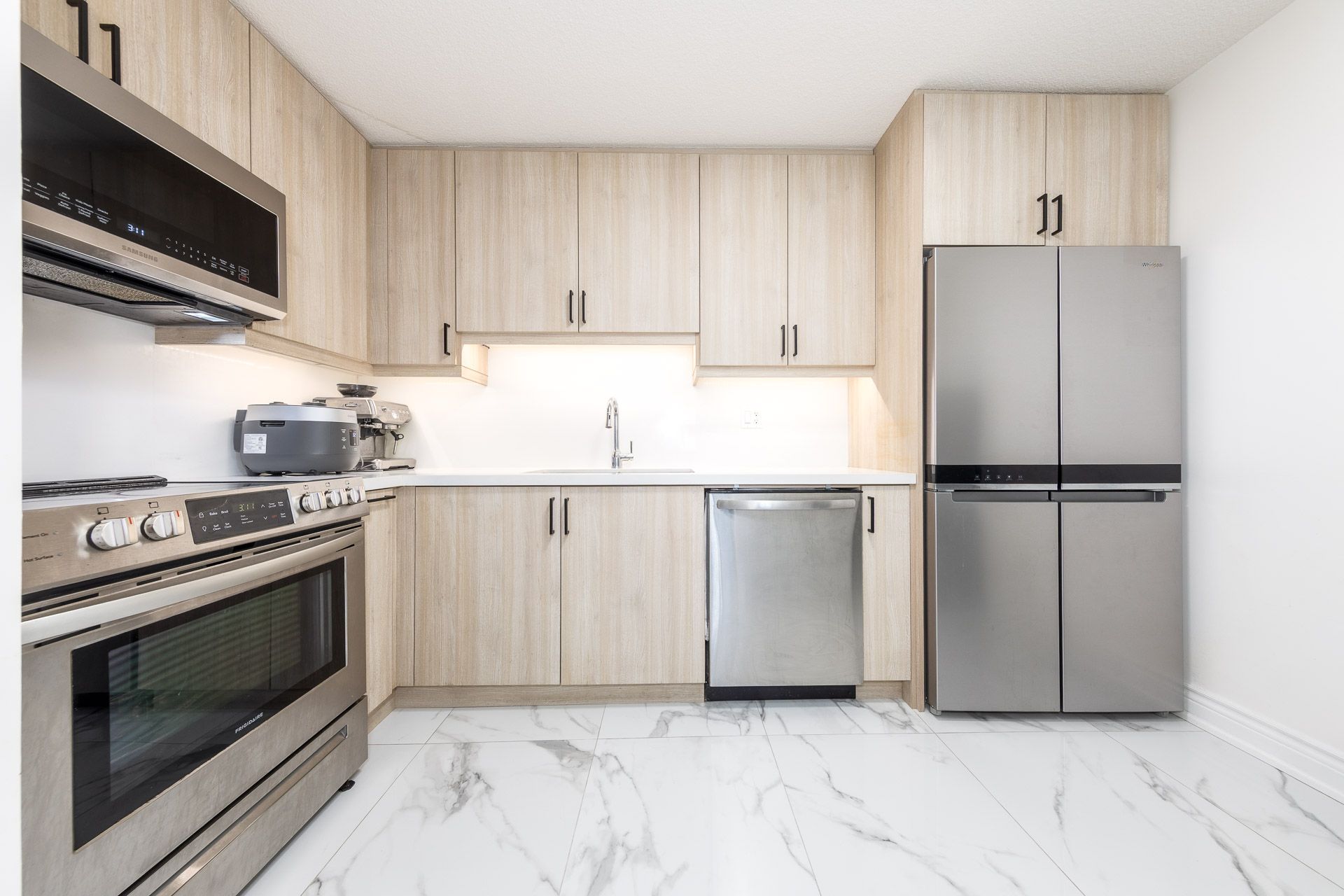 Gorgeous and spacious 2+den 2 wash condo with unobstructed views. This bright and very clean, well-maintained unit offers approximately 1,118 sq ft of functional living space with a practical layout and generously sized principal rooms, making it ideal for families or those needing extra space to work from home. The unit was renovated in 2021, including updates to the kitchen, bathrooms, and flooring, providing a modern and comfortable living environment. Enjoy seamless indoor-outdoor living with a huge terrace-sized, full-length balcony showcasing beautiful north-facing unobstructed views, along with convenient ensuite storage. The unit also comes with the rare benefit of two underground parking spaces, and all utilities are included. Residents enjoy excellent building amenities including an indoor pool, fully equipped gym, large party room, and ample visitor parking. Perfectly located on a quiet cul-de-sac close to yonge & steeles, just steps to public transit, centerpoint mall, major grocery stores, shopping, restaurants, and everyday conveniences. Spacious, well-located, and amenity-rich, this is an exceptional opportunity!!