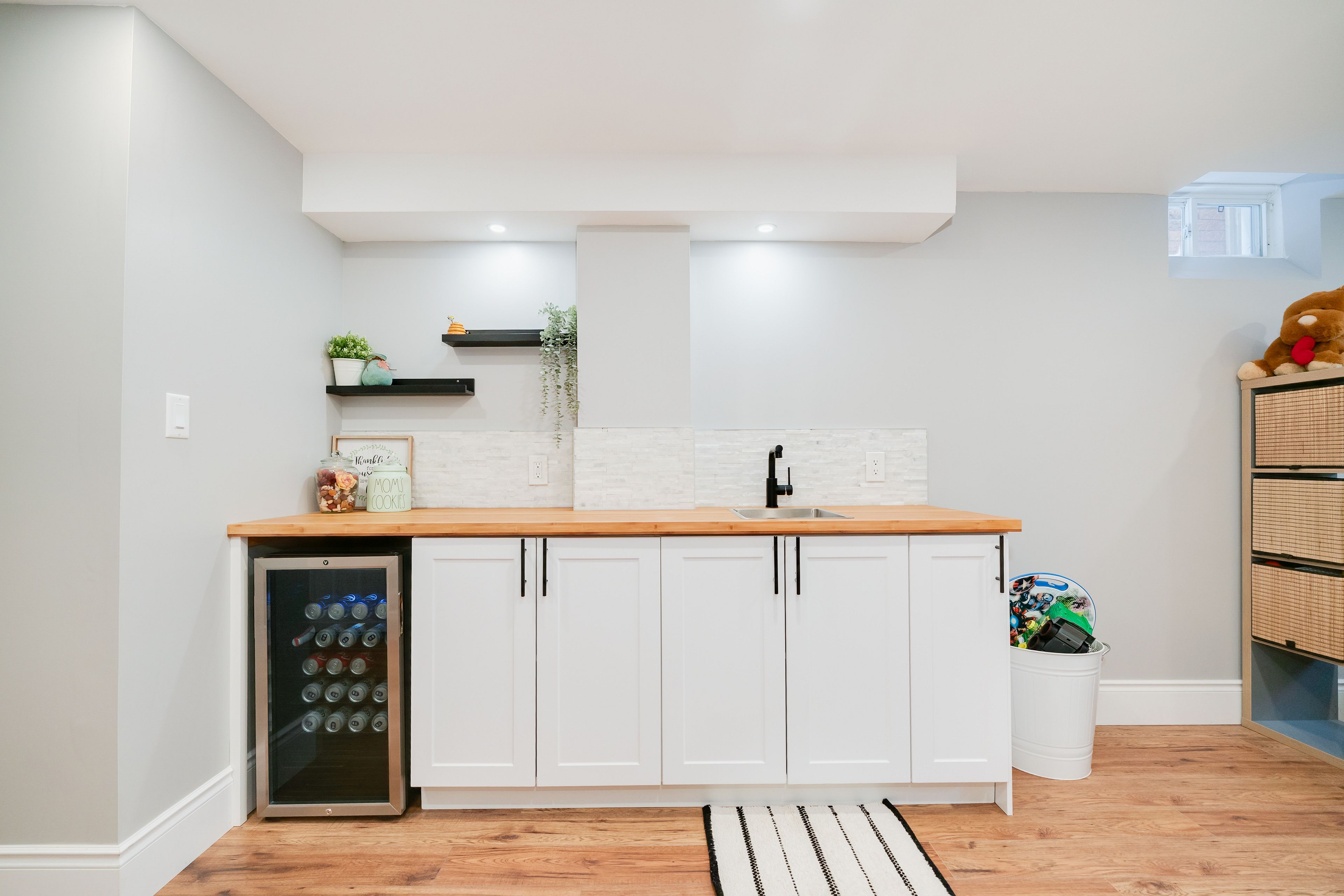 • Finished basement with recreation area, wet bar, and additional laundry.