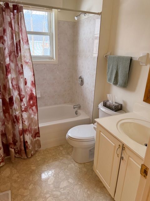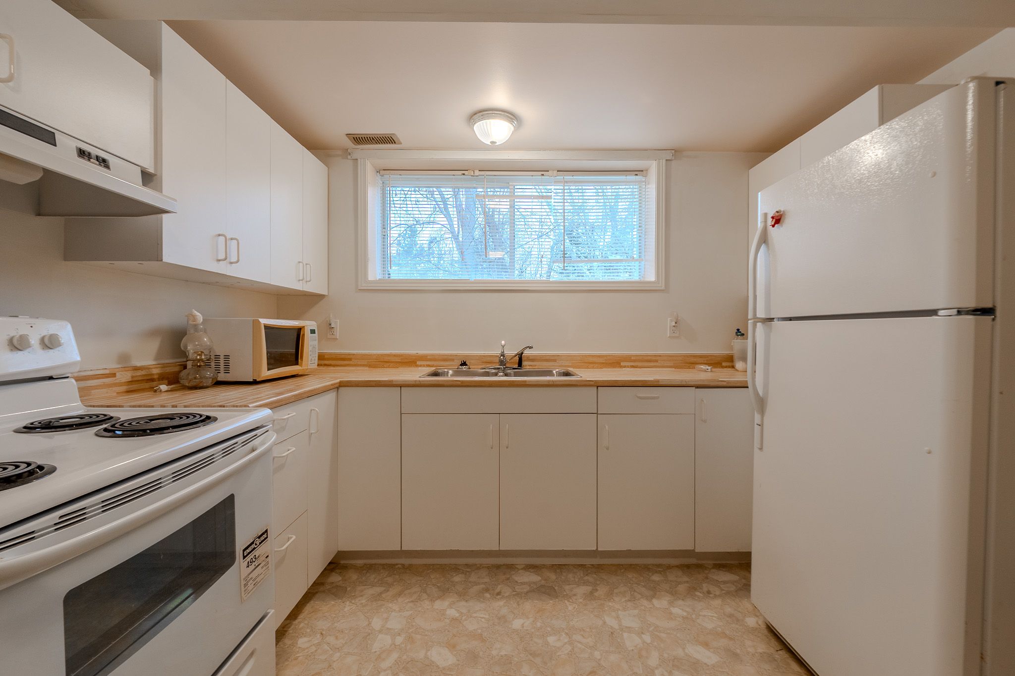 • Bright kitchen offers plenty of storage and workspace for cooking.