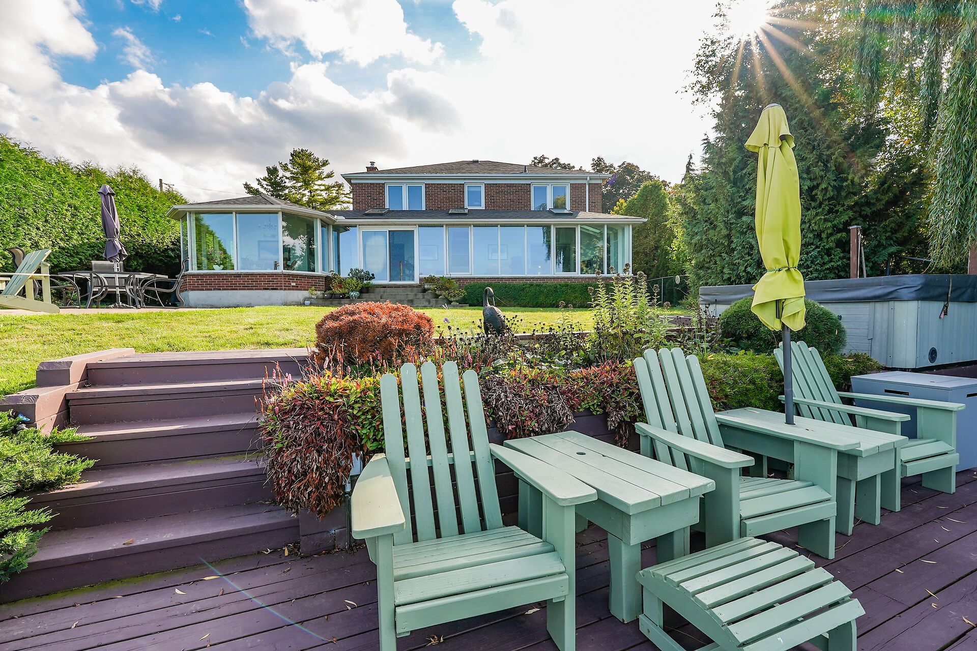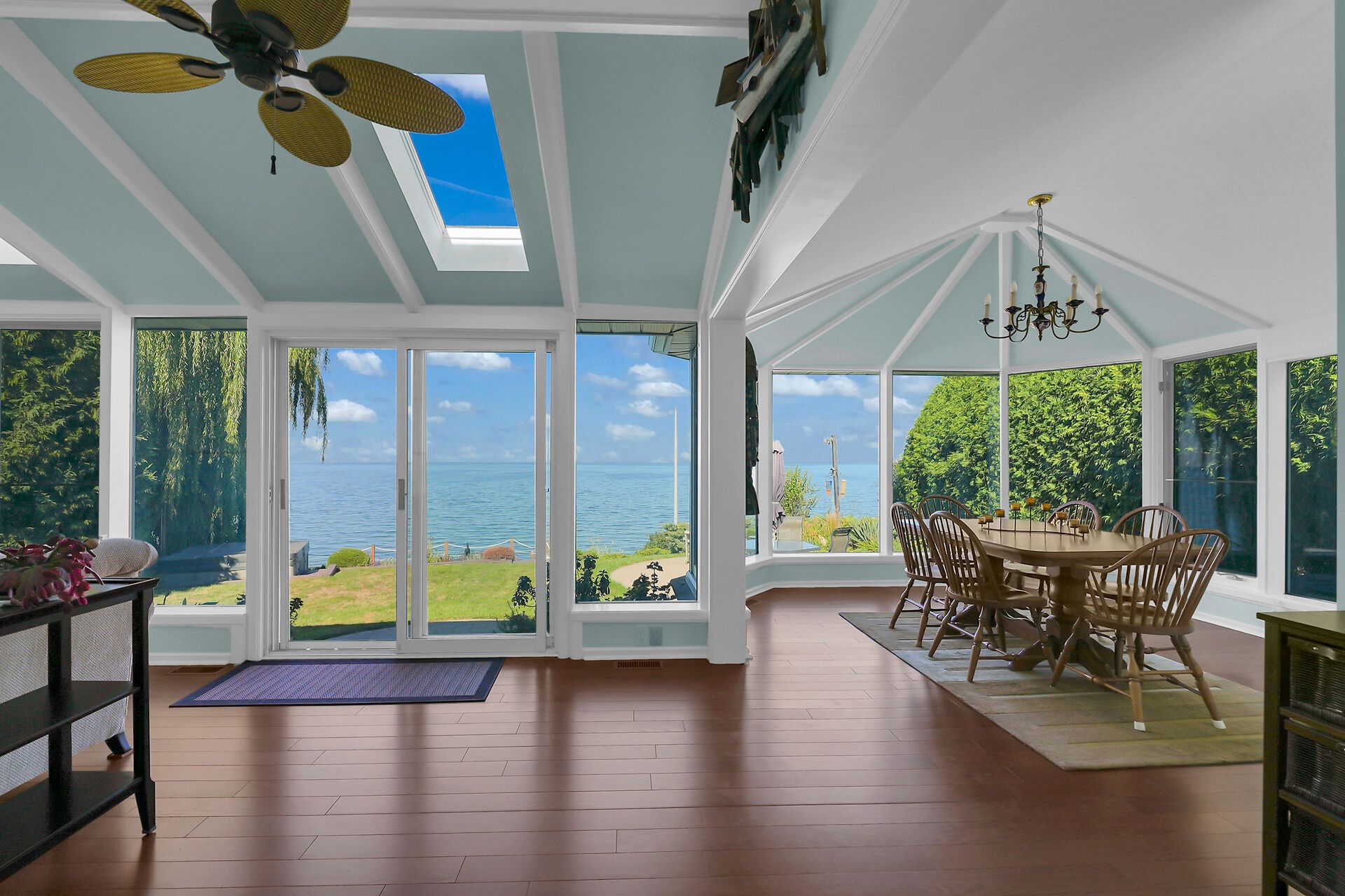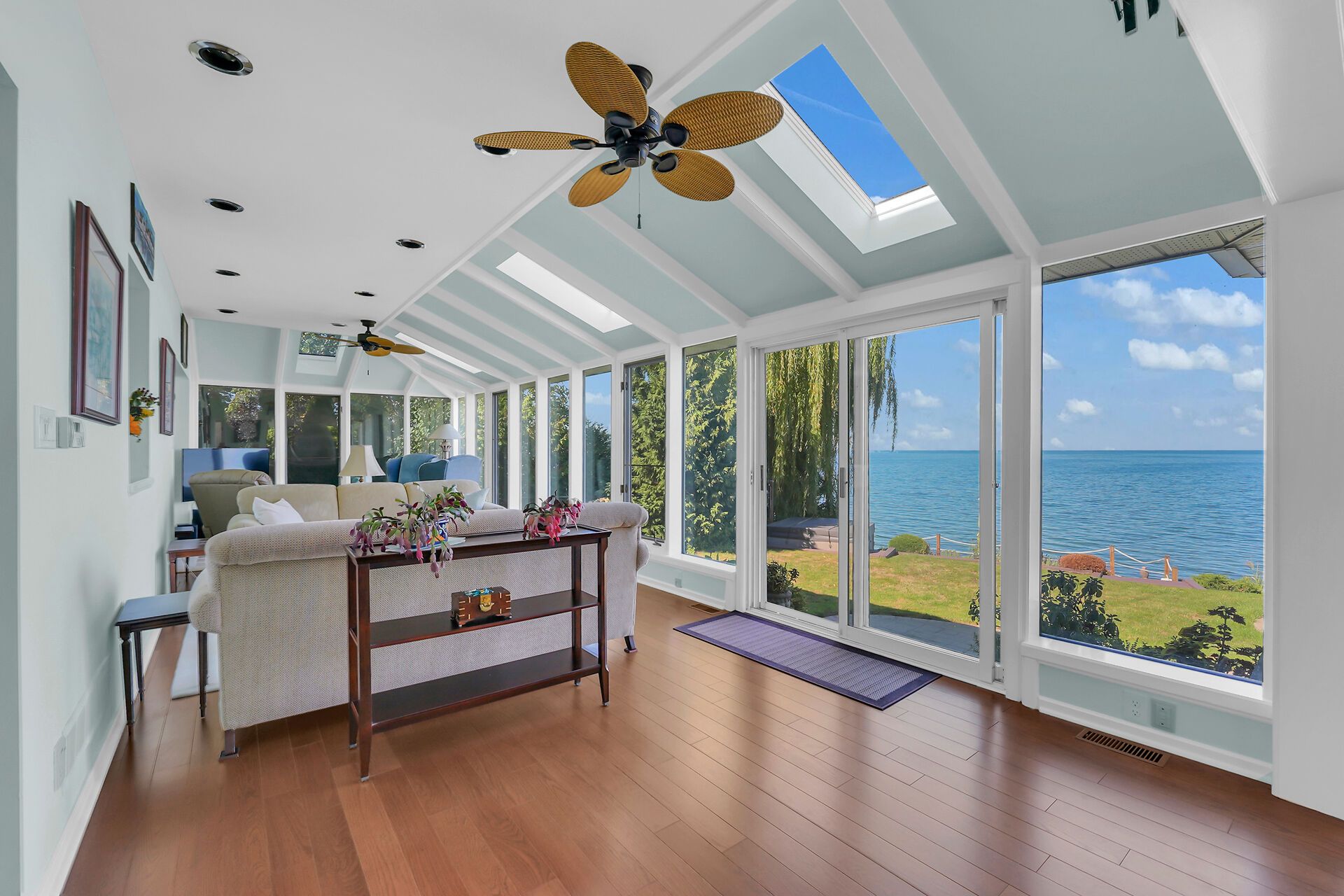 • Bright, spacious four-season sunroom with wall-to-wall windows.