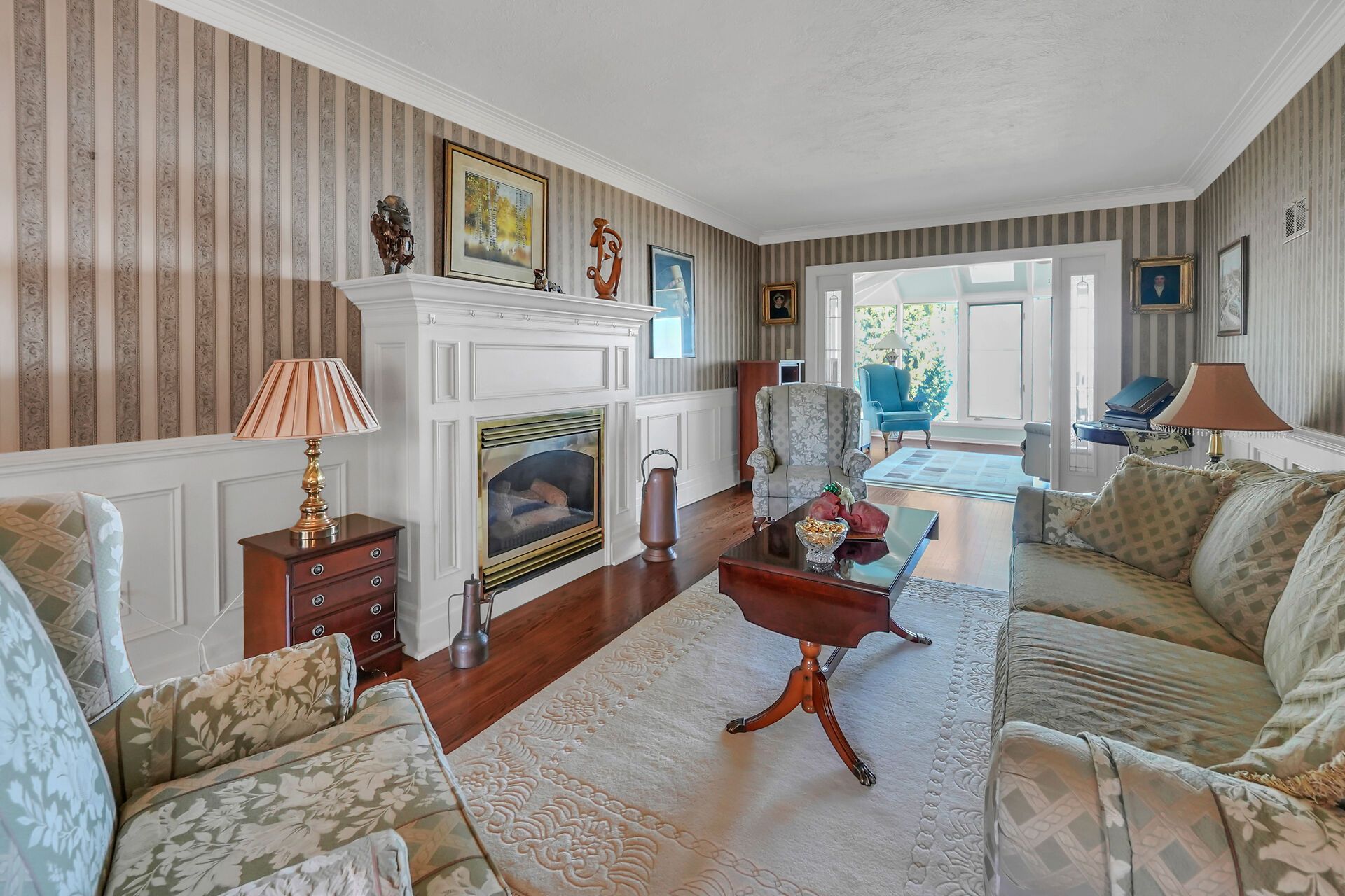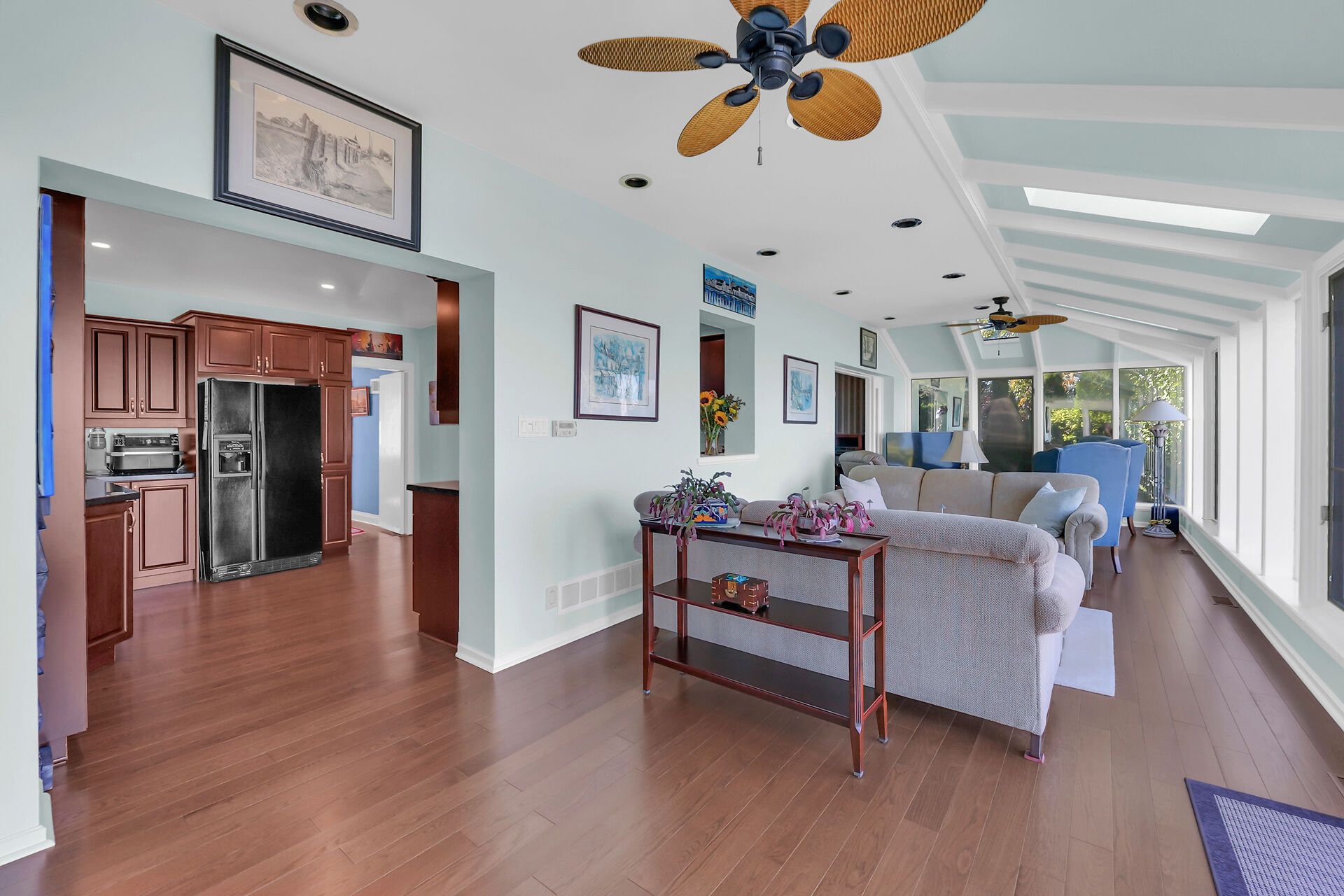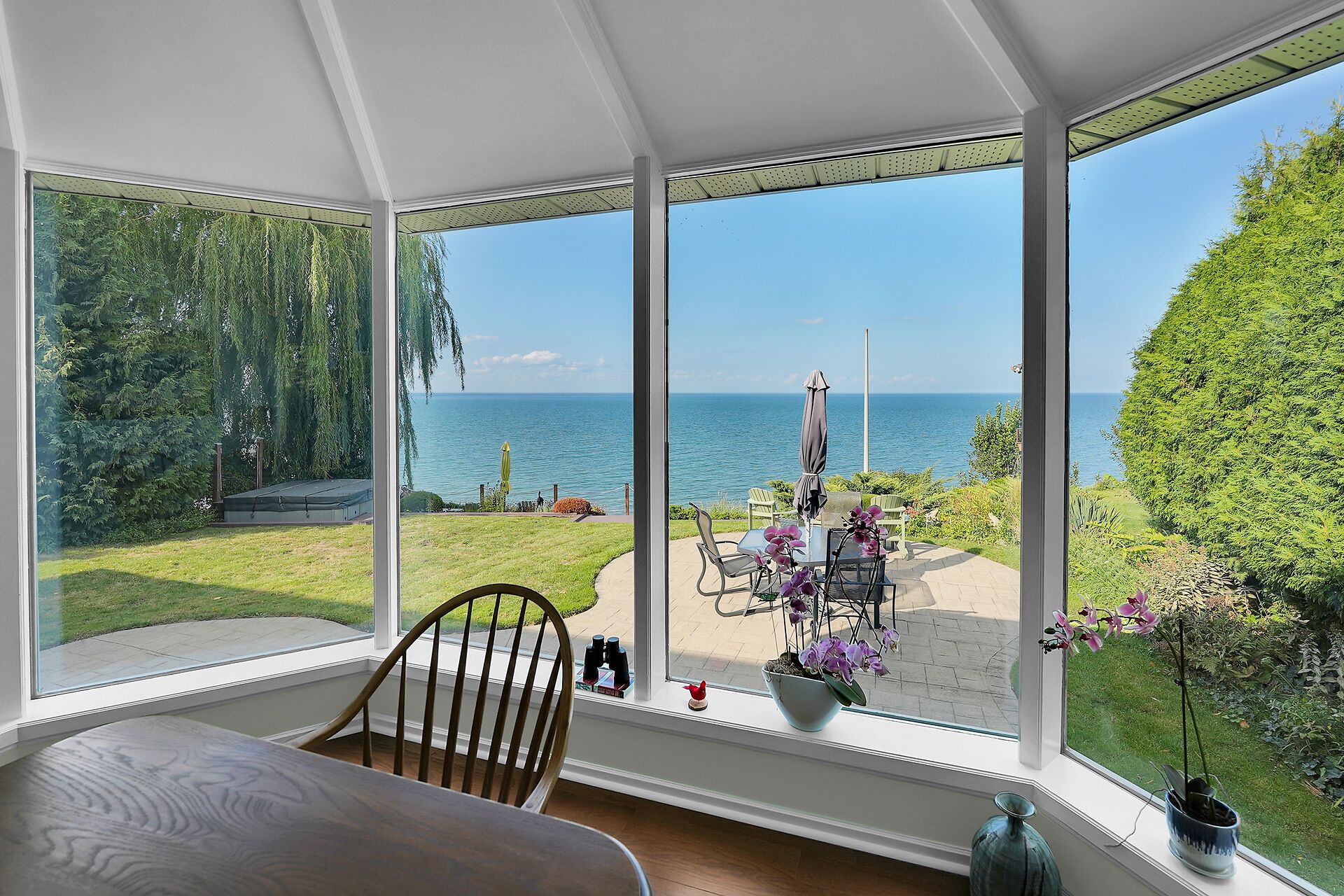 • Bright, spacious four-season sunroom with wall-to-wall windows.