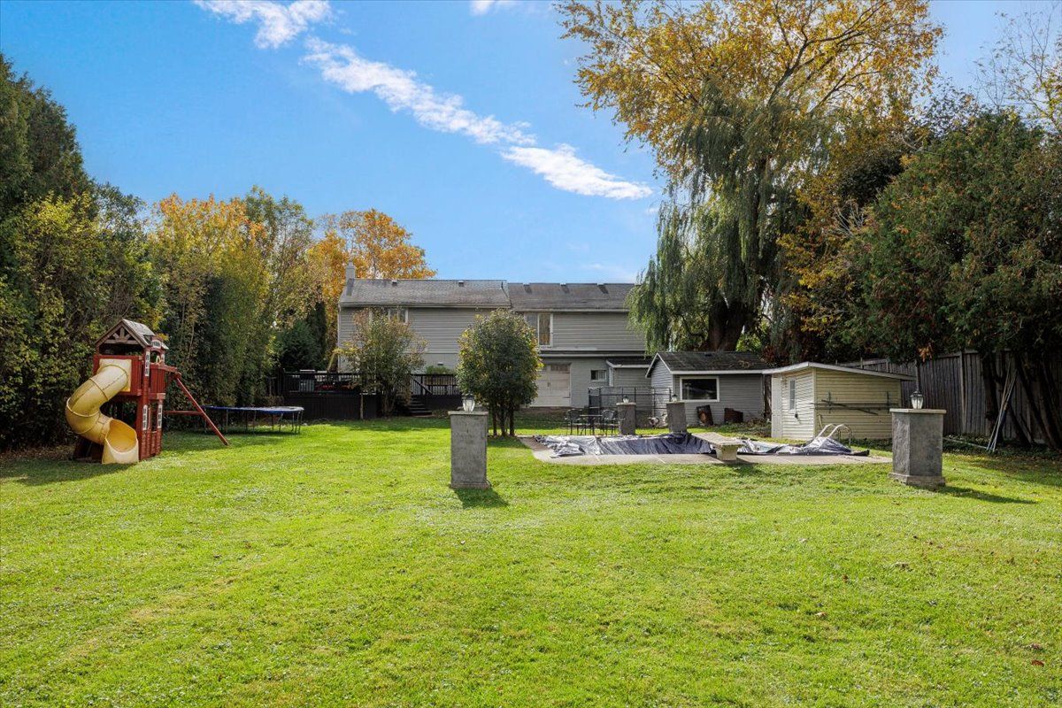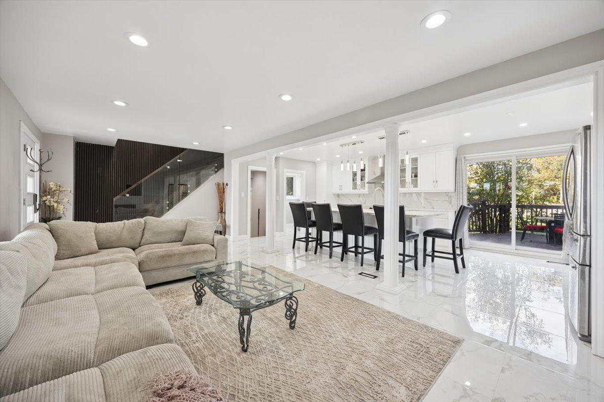 Welcome to mitchell corners in the heart of clarington - where modern luxury meets timeless country charm. This beautifully renovated 5+1 bedroom, 4-bathroom home is tucked away on a quiet side street, offering the perfect blend of sophistication,functionality, and serene living. From the moment you arrive, the oversized wrap-around driveway - with space for 12+ vehicles- and stamped concrete walkway and porch create a warm, inviting first impression. Step inside to discover a pristine, open-concept main floor that seamlessly connects the kitchen, dining, and living areas - ideal for everyday living and effortless entertaining. At the heart of the home is the brand-new (2025) chef's kitchen, a true showstopper featuring an oversized quartz island with seating for eight, matching quartz countertops and backsplash, soft-close cabinetry with glass display panels, a built-in beverage centre and microwave, and sleek pot lighting to accent every detail. The spacious dining and living areas are anchored by a custom-designed tv wall unit, while 24x24 luxury tiles flow throughout the main level, transitioning to new vinyl flooring in the fully finished basement - offering style and durability. Upstairs, a striking glass-panel staircase framed by a fluted accent wall and crowned with a grand chandelier adds a touch of refined elegance and warmth. All four bathrooms have been thoughtfully renovated with contemporary fixtures and quality finishes, and a fresh coat of paint throughout enhances the home's bright, airy ambiance. Enjoy peace of mind with a new furnace and ac (2022), upgraded lighting throughout the home,convenient upper-level laundry, and ample space ideal for large or multi-generational families. This move-in-ready home is a rare gem in mitchell corners - offering the best of both worlds: elevated, modern design in a peaceful, country setting just minutes from highways, amenities, and top-rated schools.