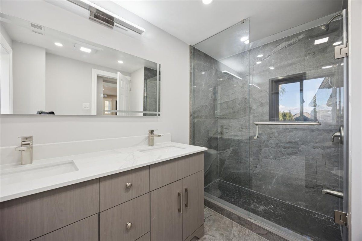 • Upstairs features a stylish glass-panel staircase and renovated bathrooms.