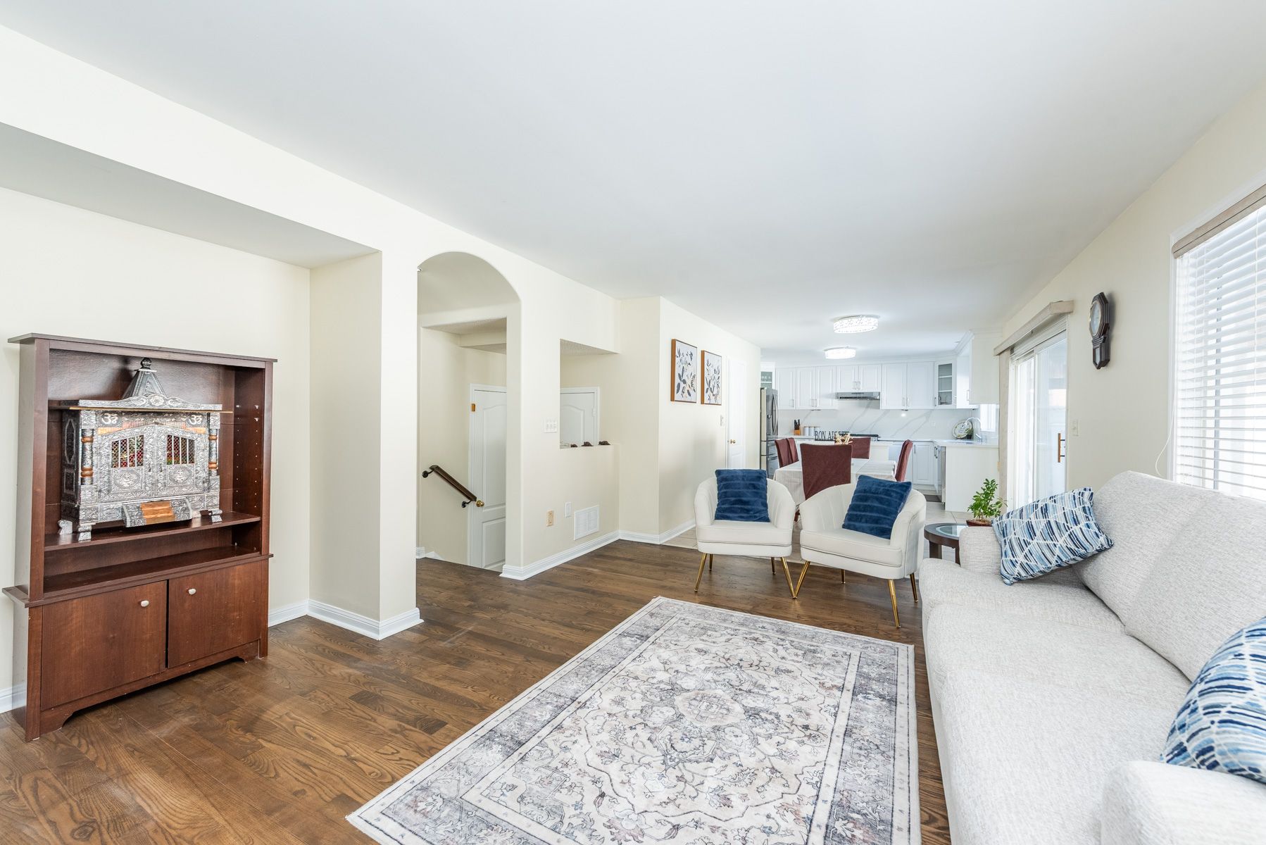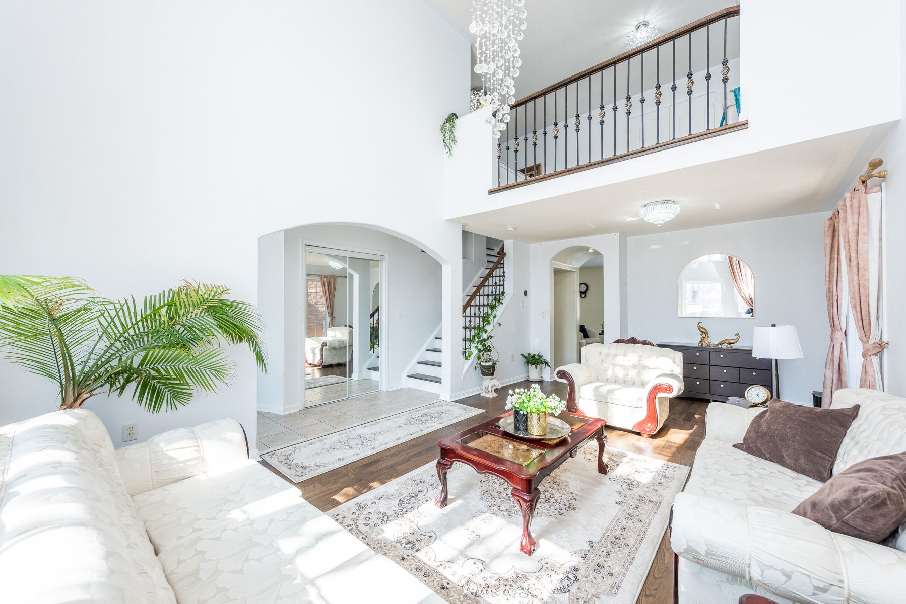 Welcome to this beautifully maintained, carpet-free home offering modern comfort and exceptional space. Featuring a brand new kitchen with quartz countertops, matching backsplash, and new refrigerator, this home blends style with functionality. Boasting two spacious family rooms, it's perfect for both everyday living, entertaining and privacy. The impressive 19-foot ceiling in the living room creates a bright and airy atmosphere, while the elegant romeo & juliet balcony with stylish curtains adds architectural charm and overlooks the main living area. The fully finished basement with a separate entrance offers incredible flexibility - ideal for extended family living. Enjoy the convenience of two laundry areas, making multi-generational living seamless and practical. Step outside to a fully concreted backyard for low maintenance living, complemented by a beautiful garden filled with mature perennial plants, creating a private and inviting outdoor retreat. A rare opportunity combining space, functionality, and style - don't miss out!