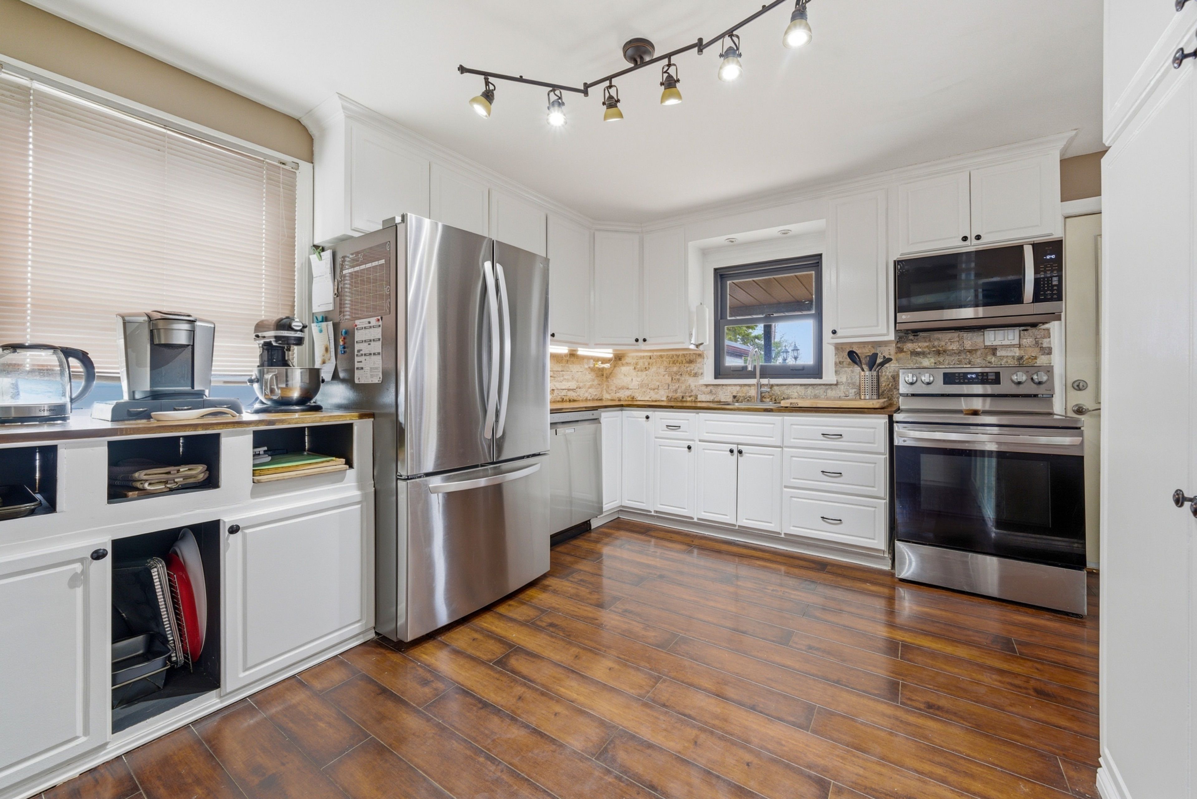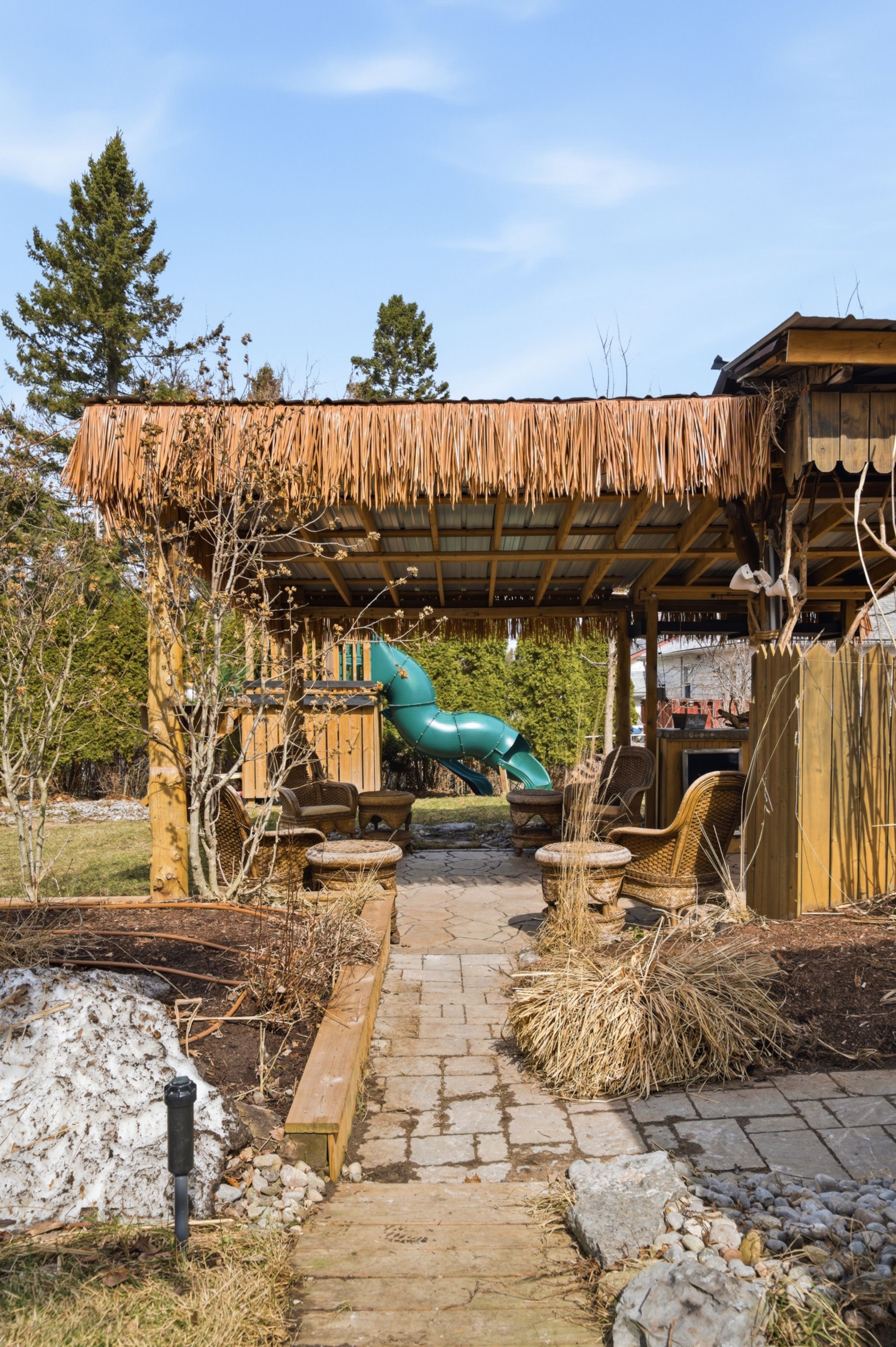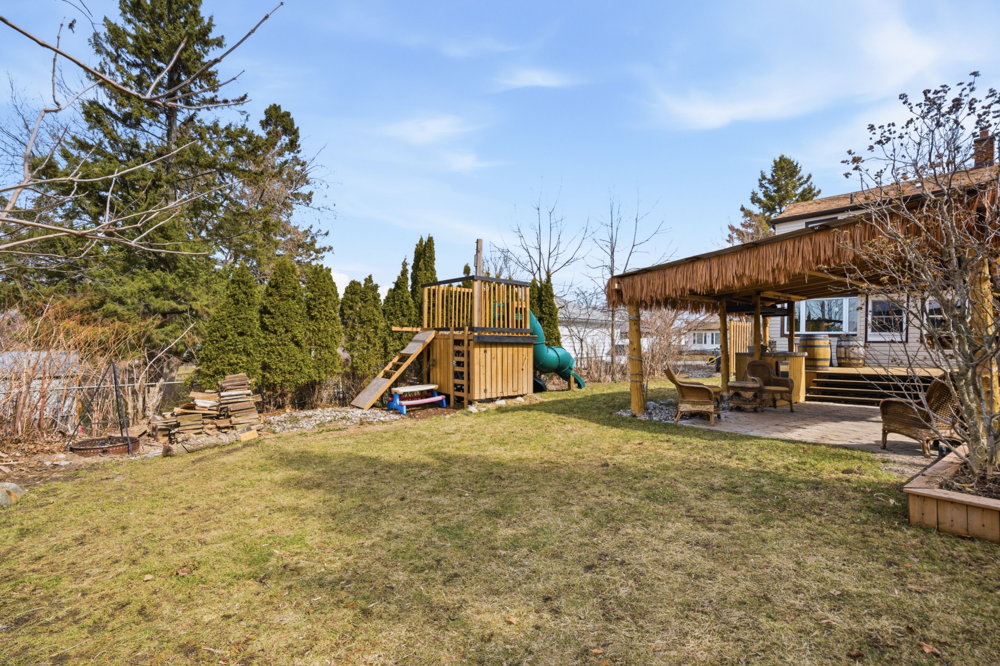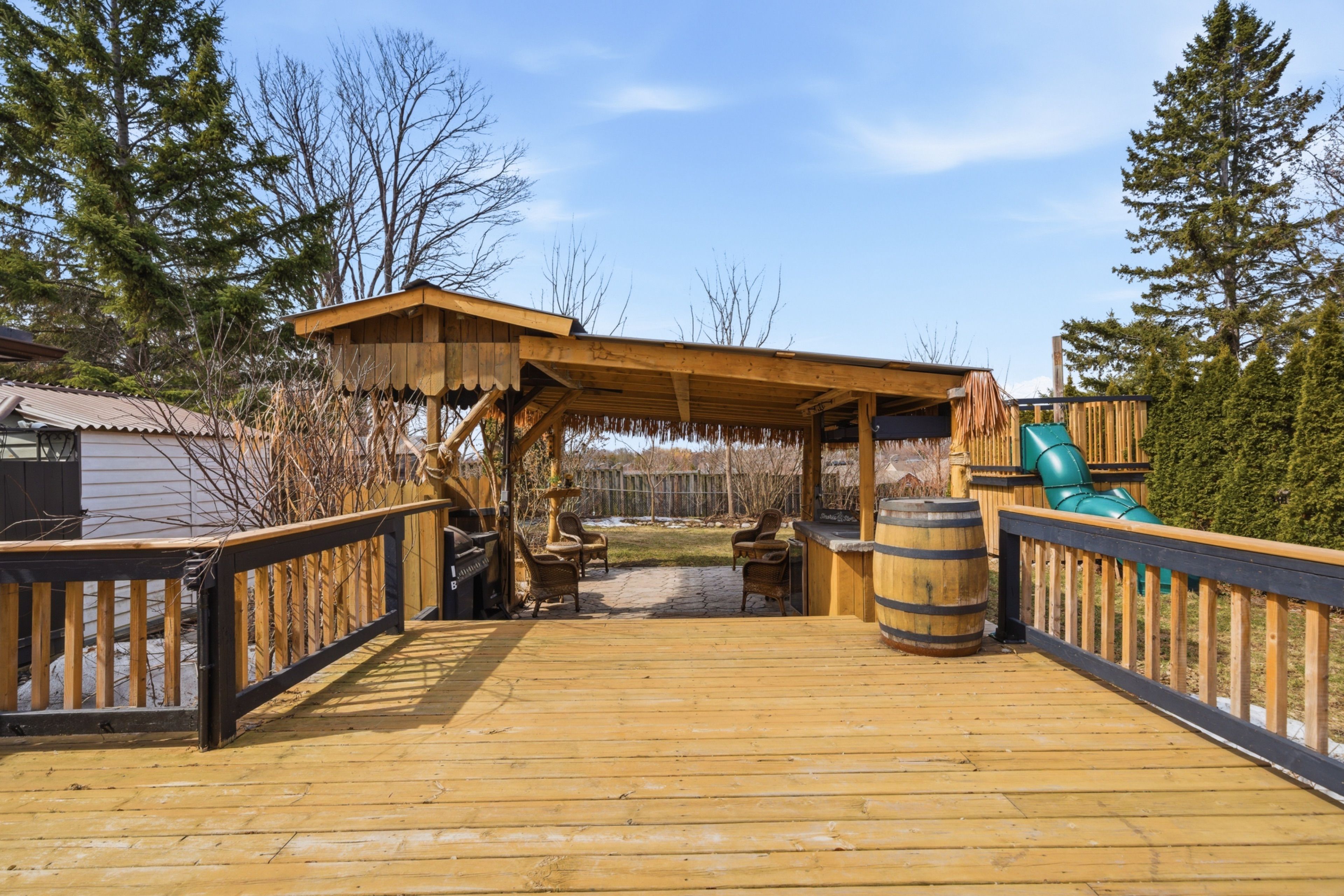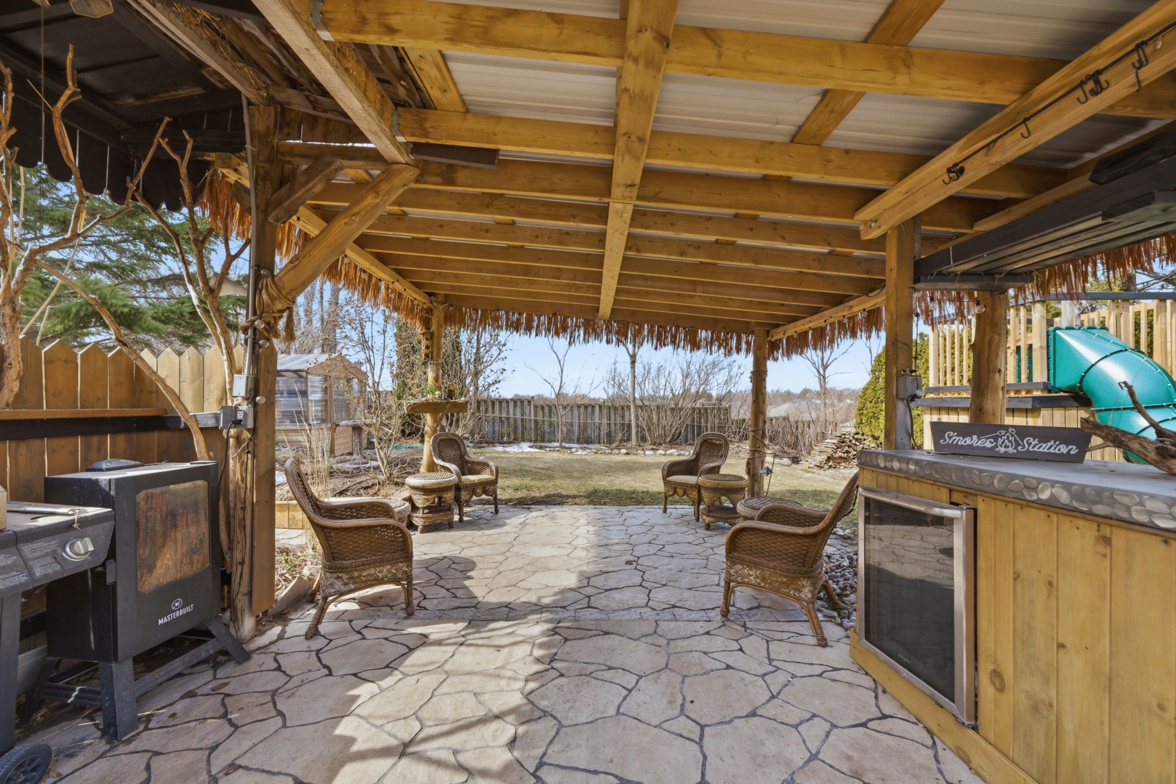 • Fully fenced backyard with a tiki bar and hot tub for entertaining.