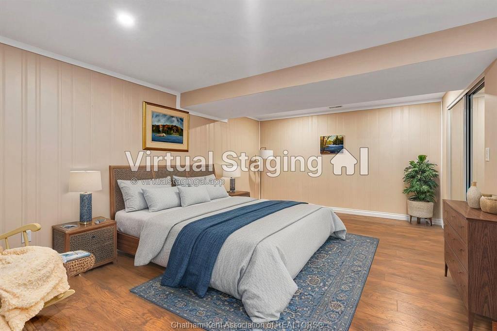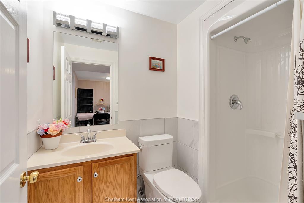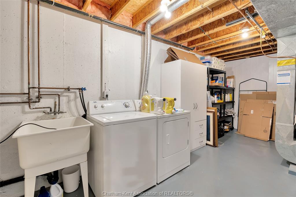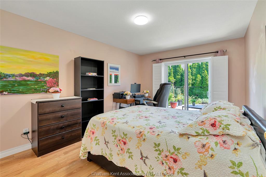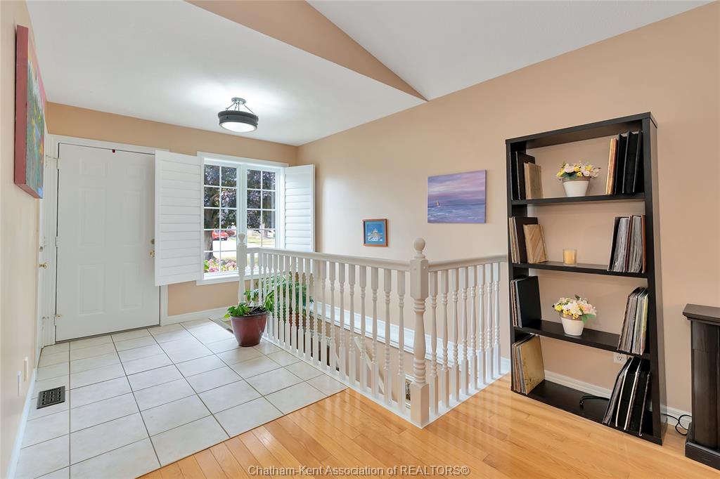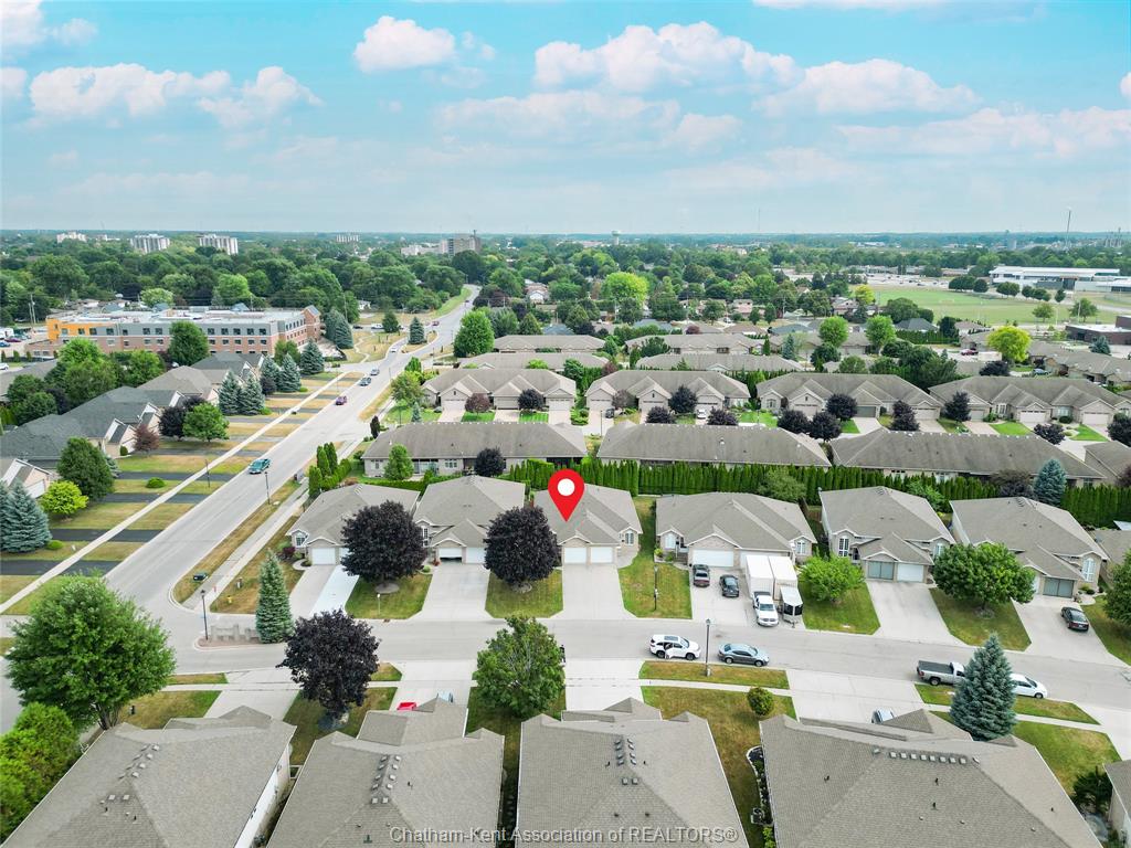 Effortless living in style home in chatham. Welcome to this beautifully maintained 3-bedroom, 2-bathroom bungalow-style row home offering the perfect blend of comfort, style, and convenience. With 2 spacious bedrooms on the main floor and a third bedroom in the finished lower level, there’s room for family, guests, or a private home office. Inside, you'll find beautiful hardwood floors, california shutters, and a warm, inviting layout. The bright, functional kitchen is a standout with its stone backsplash, plenty of cabinet space, and a functional design that makes meal prep a breeze. The finished basement includes a full second bathroom and a good-sized laundry room—ideal for everyday ease and storage. Step outside to enjoy your new backyard deck and new fence, creating a peaceful, private outdoor space to enjoy your morning coffee. Close to st clair college and the new rogers sports dome to play pickleball or tennis in a comfortable setting. Low-maintenance exterior and affordable maintenance fees make this home an excellent choice for downsizers, busy professionals, or first-time buyers seeking move-in-ready living without the hassle.